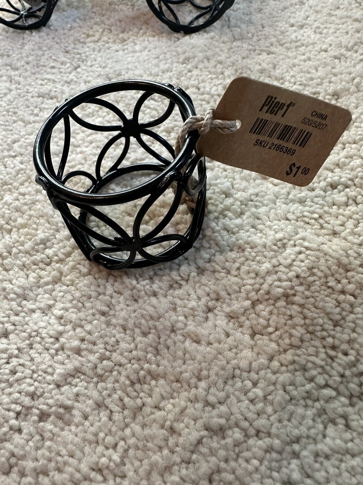 Brand new with tags - Pier 1 black metal napkin rings. Beautiful design that would go well with almost any table setting. Smoke free home