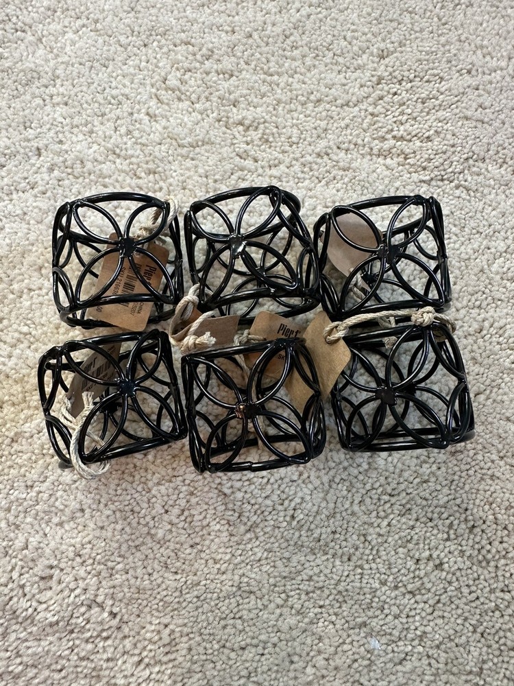 Brand new with tags - Pier 1 black metal napkin rings. Beautiful design that would go well with almost any table setting. Smoke free home...