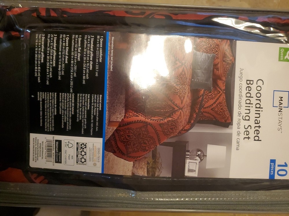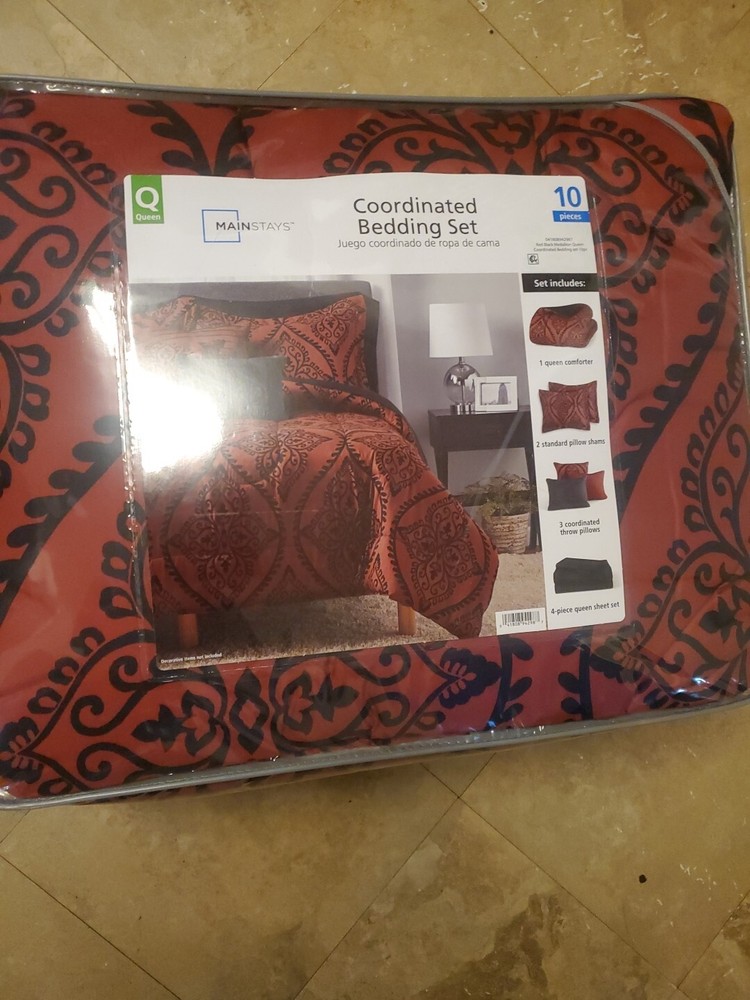 Elevate your bedroom's appeal with this exquisite 10-piece bed in a bag comforter set from Mainstays. The set features a beautiful red and black damask pattern that adds a touch of modern elegance to any bedroom. The set includes a queen-sized comforter, fitted sheet, decorative pillow, and pillowcase to give your bed a complete and stylish look. Crafted from high-quality polyester and microfiber, this bedding set is perfect for all seasons and easy to care for with machine wash instructions. The set's custom bundle option offers great value for money, making it an excellent choice for anyone looking to upgrade their bedding. Transform your bedroom into a haven of comfort and style with this Mainstays 10-piece bed in a bag comforter set.