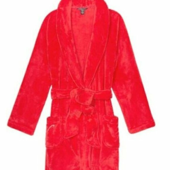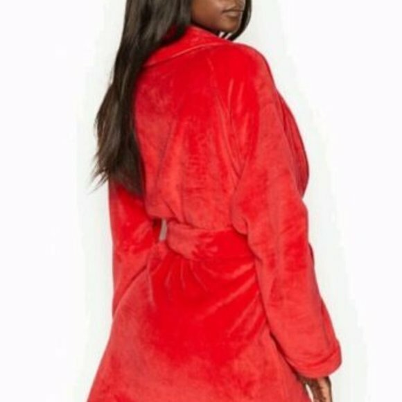 New Victoria's Secret Logo Short Cozy Robe New with Tags Color: Bright Cherry Red Size: XS/S Features: - Easy fit - Tie waist - 34¼" length - Front patch pockets