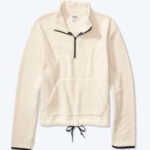 New with tags! Victoria Secret Pink Polar Fleece Half-Zip Sweatshirt Color: Ivory Size: large -Relaxed outwear fit -Long sleeves -Mock neckline with zip closure -Kangaroo pocket -Adjustable drawstring hem -Contouring seamlines -Recycled polar fleece fabric As pictured We ship very fast with delivery confirmation. Sorry We do not offer International shipping. If you have any questions please email me before you bid and I will reply ASAP. Thank You!NB63-6779