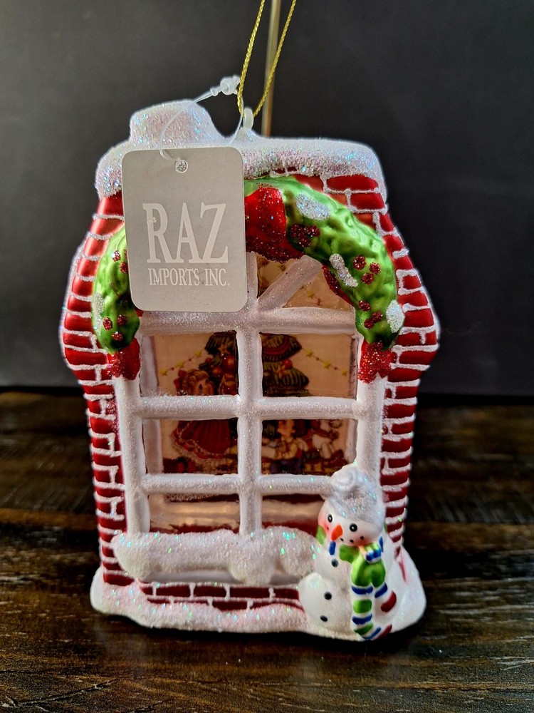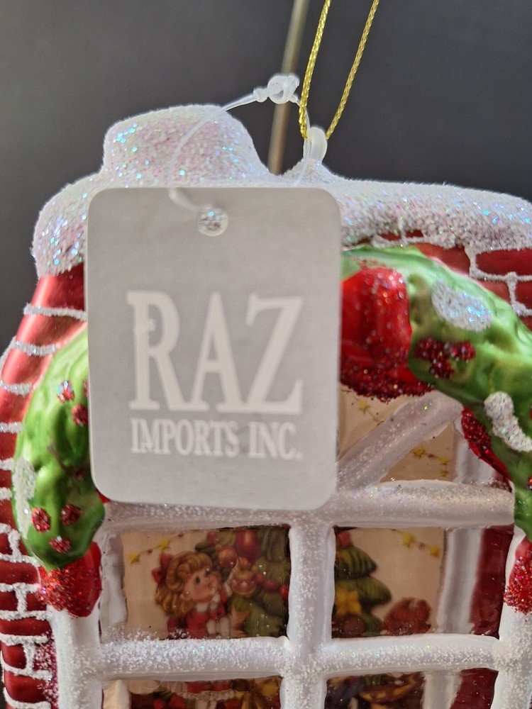 This exquisite ornament by RAZ Imports will be a beautiful addition to your holiday décor. The artist-designed glass ornament features a brick pattern with multicolor embellishments and is 6 inches tall. It comes with a hanging feature and is perfect for your Christmas tree. The theme of this ornament is holiday, and it is made of glass material. It is ideal for use as a Christmas decoration. This ornament is a must-have for anyone who loves unique and artistically designed holiday décor. Please examine the photos carefully as they are part of the description. Props and / or accessories are not included with purchase. Thank you for visiting Kate Evelyn Treasures. Please visit us again soon.