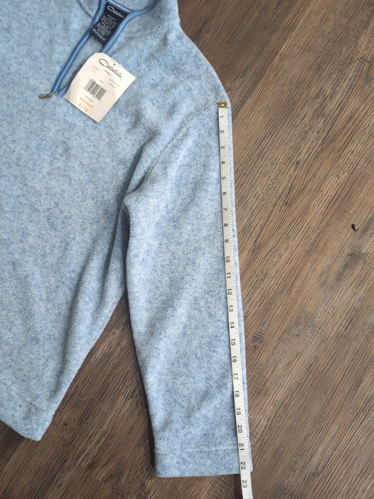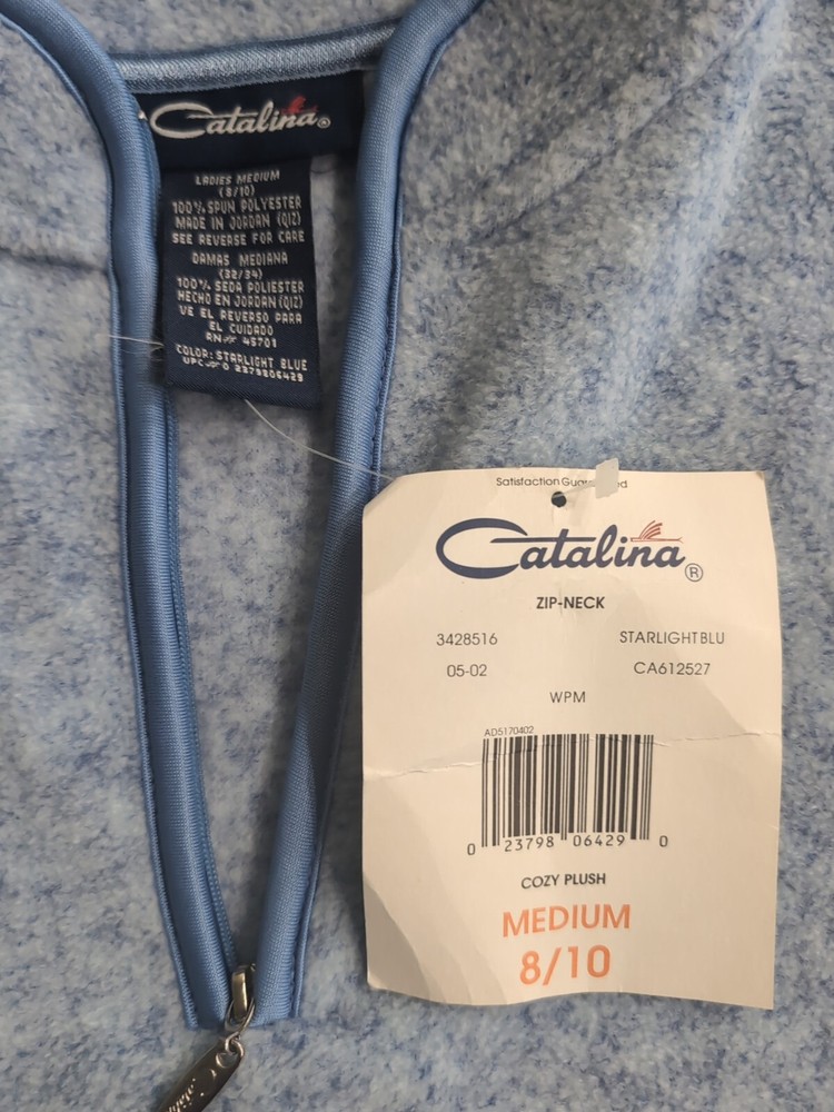 Elevate your winter, fall, or spring wardrobe with this starlight blue Catalina sweater. The zipper neck and cozy plush fabric make it perfect for travel or casual occasions. The relaxed fit and long sleeves provide comfort and warmth and the collared neckline adds a touch of style.