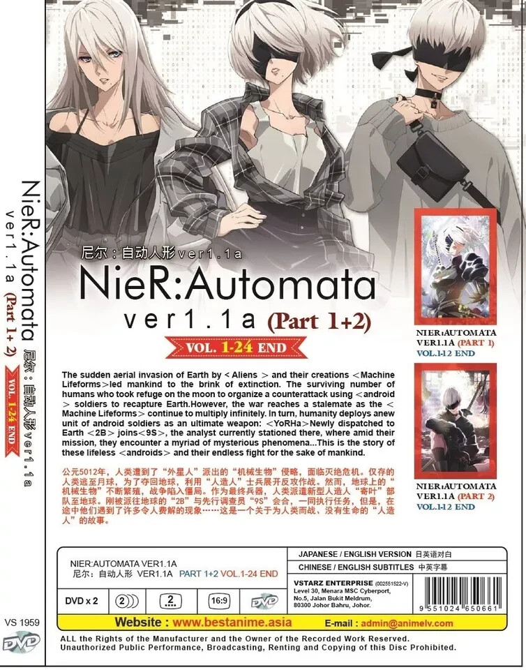 East Asia Drama Outlet Discover Your Favorite Anime in One Place Title: Nier: Automata Ver1.1A Part1 + Part2 Audio: Japanese / English Subtitles : Chinese / English Number of Discs: 2 Episodes: 24 Type: Boxset