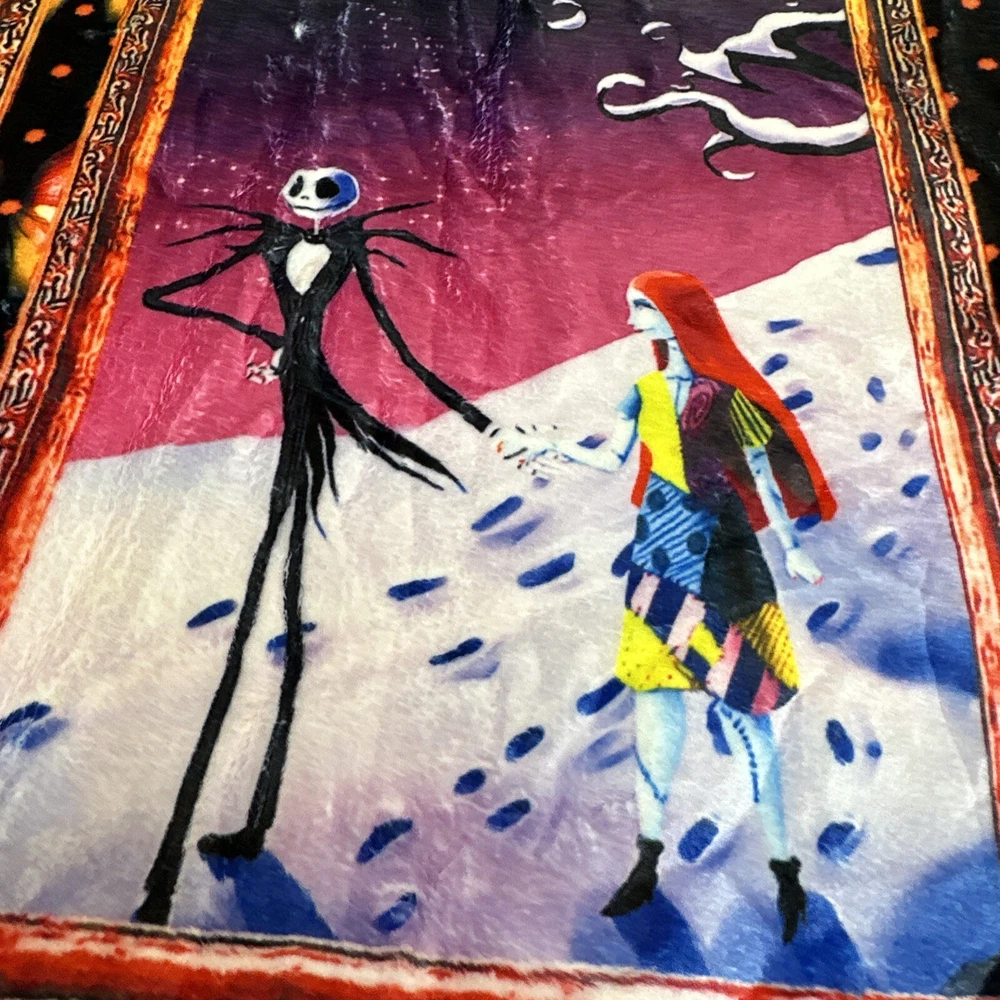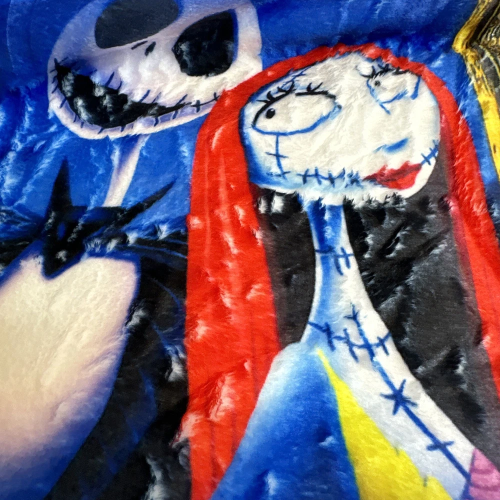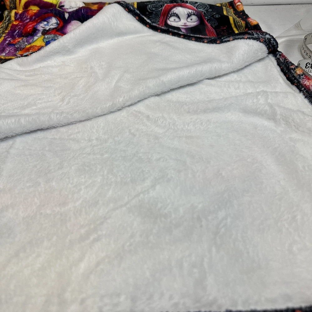 Add a touch of whimsy to your bedroom with this Monster Before Christmas Cozy Throw. Measuring 50" x 40", this ultra-soft velour blanket is perfect for snuggling up on the bed or couch. The vibrant colors and playful design make it a fun addition to any room. You can trust that this blanket will keep you warm and cozy throughout the night. Perfect for those chilly winter nights, this Twin-sized blanket is a must-have for any fan of the classic movie. A collection of our most popular Nightmare Before Christmas characters and scenes this is sure to be a hit for any maritime nap time or snuggling. Please ask questions prior to purchase. We do economically combine items for fast in fear delivery B106-002001