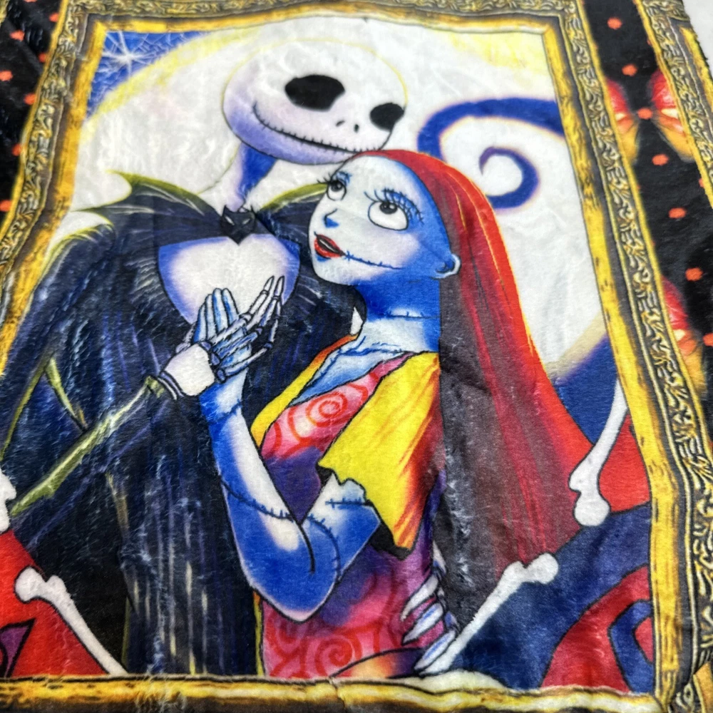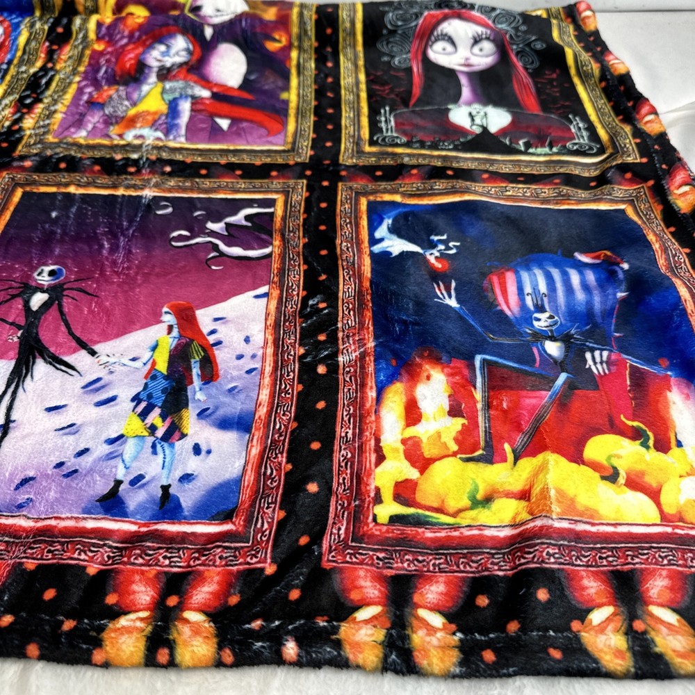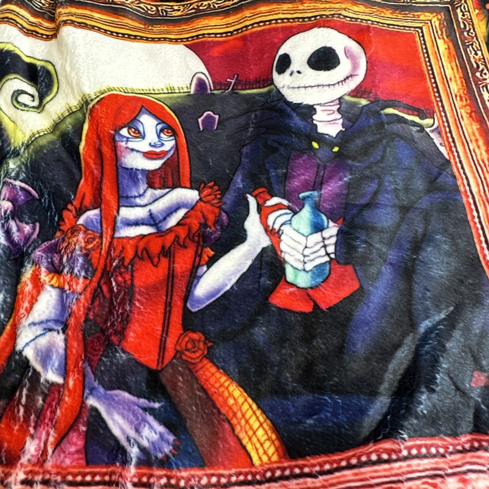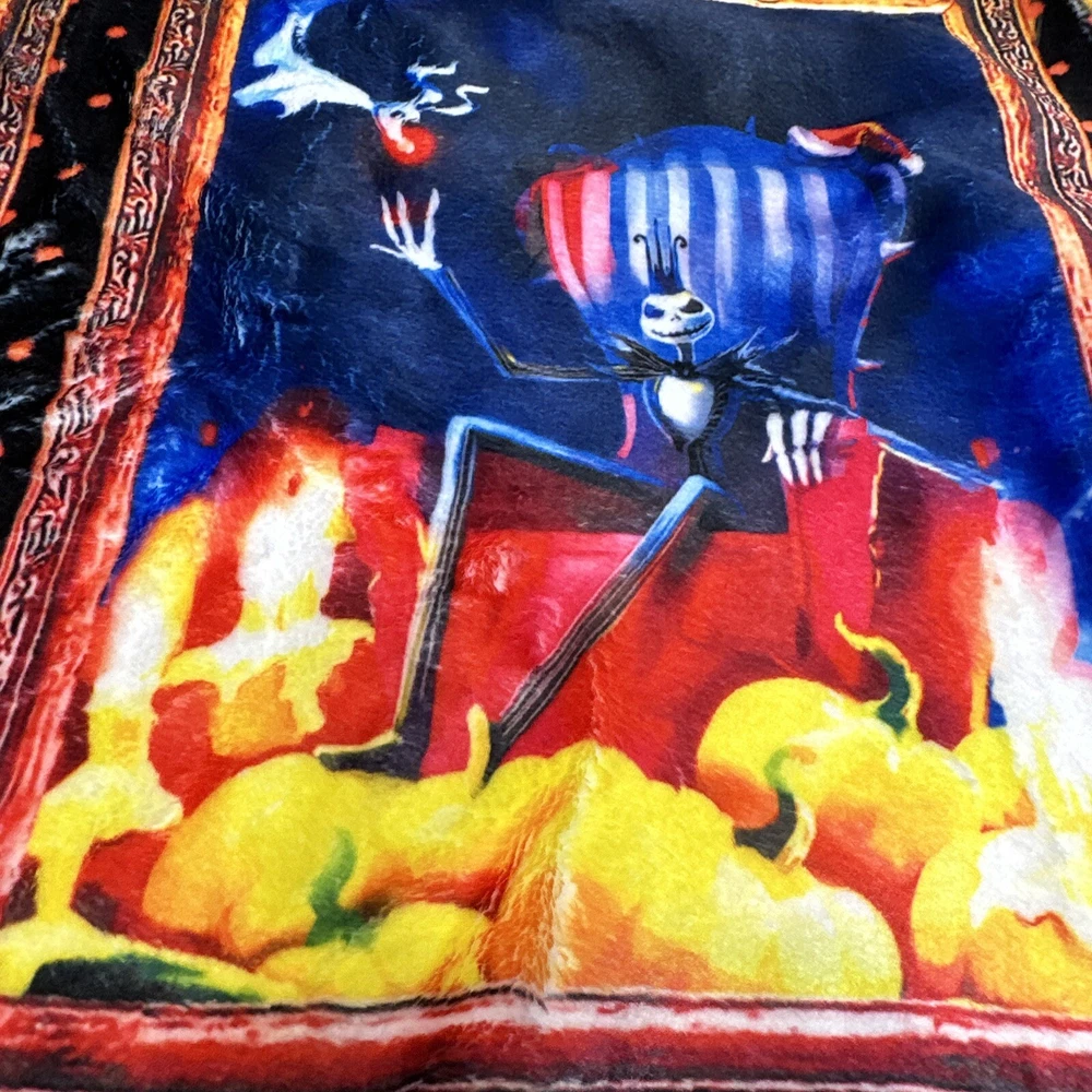 Add a touch of whimsy to your bedroom with this Monster Before Christmas Cozy Throw. Measuring 50" x 40", this ultra-soft velour blanket is perfect for snuggling up on the bed or couch. The vibrant colors and playful design make it a fun addition to any room. You can trust that this blanket will keep you warm and cozy throughout the night. Perfect for those chilly winter nights, this Twin-sized blanket is a must-have for any fan of the classic movie. A collection of our most popular Nightmare Before Christmas characters and scenes this is sure to be a hit for any maritime nap time or snuggling. Please ask questions prior to purchase. We do economically combine items for fast in fear delivery B106-002001