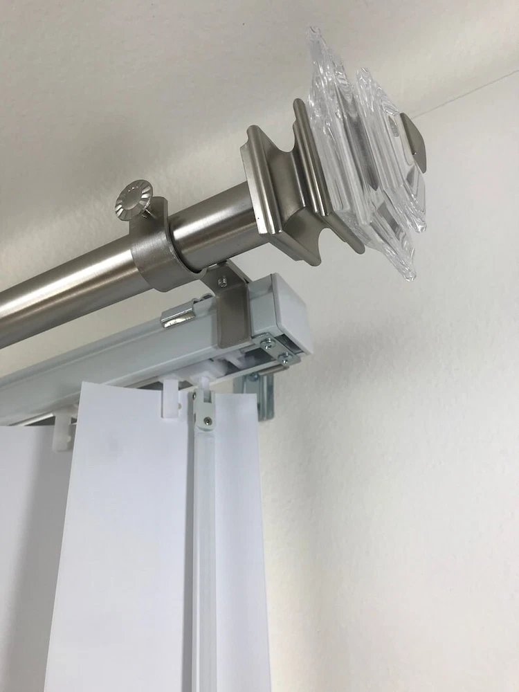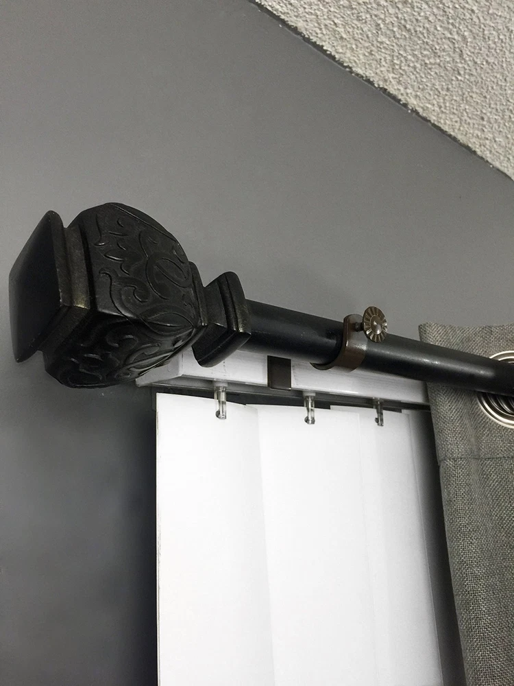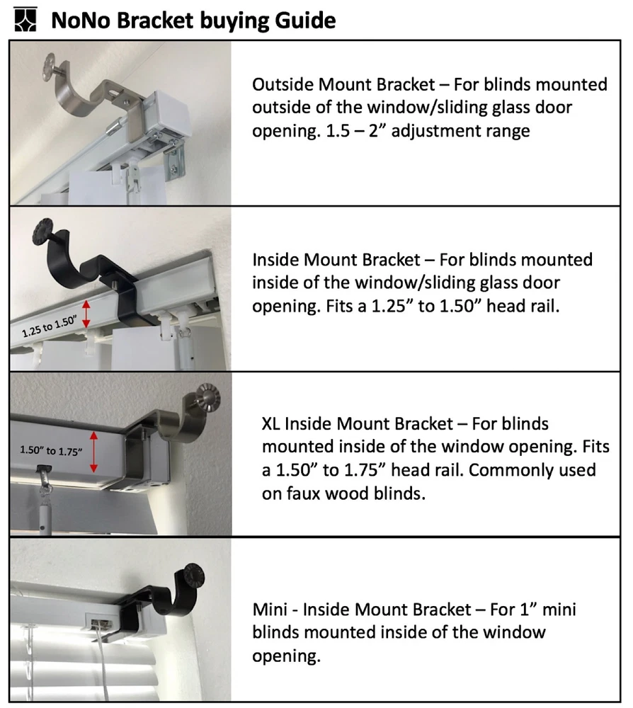Introducing the ultimate solution for hanging curtains over vertical blinds - the NoNo Bracket. Designed to attach directly to your existing vertical blind headrail, this bracket simplifies the process of adding curtains to any room. Damage-Free: Enjoy the beauty of curtains without the worry. Our bracket ensures there are no holes, no screws, and no damage to your walls, making it an ideal solution for renters and homeowners alike. Quick Installation: Transform the look of your sliding glass doors or windows in minutes. The NoNo Bracket's easy-to-use design allows for fast and effortless curtain hanging, saving you time and frustration. Outside mounted vertical blind head rail attachment Fits 1 inch curtain rod 1.5 - 2 inch Adjustment Range Set of 2 Brackets Curtain and Rod not included Apartment and Renter Friendly Make hanging curtains a breeze with the NoNo Bracket. Experience the perfect blend of functionality and style without compromising the integrity of your walls. Elevate your home décor today with the NoNo Bracket – where elegance meets ease.