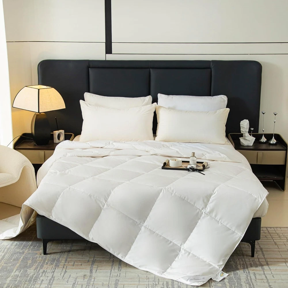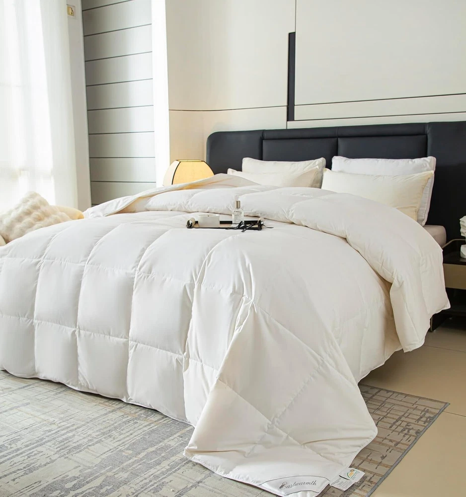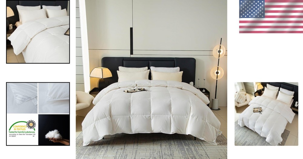 Noiseless Cotton Goose Down Comforter with 8 Corner Tabs - Easy Care Queen Size < class="slides"> ‹ › ‹ › ‹ › ‹ › ‹ › ‹ › ‹ › ‹ › ‹ › ‹ › Noiseless Cotton Goose Down Comforter with 8 Corner Tabs - Perfect for a serene and luxurious sleep experience - Queen Size: 90-by-90-inch - Filling Weight: 37 oz. Features: <> Noiseless Fabric: Crafted from 100% cotton, our comforter is ultra-soft to the touch and designed for ultimate comfort. Enjoy a peaceful night's rest without any rustling sounds. Natural Filling: Contains 75% goose down and 25% goose feathers with a fill power of 650+, ensuring warmth without weight. Experience the sensation of sleeping on a cloud. All-Season Comfort: Specially designed to breathe, it regulates humidity, keeping your skin comfortably dry throughout the night. Ideal for year-round use. Box Design: Our cutting-through box design maximizes loft and ensures even filling distribution for consistent warmth across the entire comforter. 8 Corner Tabs: These tabs allow for easy attachment of a duvet cover, making it simple to maintain your comforter’s cleanliness and style. Easy to Care For: Machine wash at low temperatures with a mild detergent. Air dry or tumble dry at low heat - easy care ensures your comforter stays fresh and plush. Benefits: <> Enjoy a noiseless and restful sleep experience. Lightweight and fluffy filling provides warmth without overheating. Perfect for humid climates as it keeps moisture in check. Designed to stay in place with 8 corner tabs for easy duvet cover attachment. Simple maintenance for long-lasting comfort and functionality. Why Choose Our Noiseless Cotton Goose Down Comforter? Transform your sleeping experience with our Noiseless Cotton Goose Down Comforter, designed for those who appreciate the finer things in life. Experience the luxurious touch of ultra-soft cotton combined with the heavenly warmth of goose down and feathers, ensuring a cozy and restorative sleep each night. Indulge in the epitome of comfort - add the Noiseless Cotton Goose Down Comforter to your home today for an unparalleled sleep experience. Shipping <> <> Free & Fast Shipping - We offer free shipping to most of the USA with a normal delivery time of 3-7 days. However, due to the current situation, additional delivery time (up to 3 weeks) may be required for some items. Alternative Carriers - We may use alternative carriers (e.g. USPS, FedEx, UPS, etc.) to ensure your package arrives safely and on time. Due to the use of multiple carriers, we are unable to provide a tracking number automatically. Handling Time - Orders are processed and shipped within 1-2 business days of receiving cleared payment. Shipping Restrictions - Shipping to Alaska, Hawaii, Puerto Rico, Guam, and other US territories may incur shipping charges or delivery restrictions. Please contact us before ordering, or your order can be refunded/cancelled. State Restrictions - There may be restrictions based on your state of purchase. For example, certain items may not be shipped to California due to state regulations. Contact for Tracking Updates - If you require tracking updates or have any concerns about the delivery of your order, please feel free to contact us, and we will be happy to assist you. Return <> <> 30-Day Hassle-Free Returns - We want you to be completely satisfied with your purchase. If you are not, you can return the item within 30 days of receiving it for a full refund or exchange. Easy Return Process - To start a return, simply contact us and we will provide you with a prepaid return shipping label and detailed instructions. Restocking Fee - There are no restocking fees for returns. However, the buyer is responsible for return shipping costs if the return is not due to a seller's error. Refund Processing Time - Refunds will be processed within 5 business days of receiving the returned item in its condition. Payment We accept all major credit cards, PayPal, and Apple Pay for your convenience. Your payment information is secure and encrypted to ensure a safe and seamless transaction. Please complete your payment within 3 days of purchase to avoid any delays in shipping. Feedback Your feedback is extremely important to us. We strive to provide the best products and customer service possible. If you are satisfied with your purchase, please take a moment to leave us a positive review. If you have any concerns or issues with your order, please contact us before leaving negative feedback. We are committed to resolving any problems and ensuring your satisfaction. Contact Us If you have any questions or concerns, please feel free to out to our customer support team. You can contact us through the eBay messaging system. We are available Monday to Friday, 9:00 am to 5:00 pm EST, and we will do our best to respond to your inquiry within 24 hours. Buy it now and enjoy a pleasant shopping experience! Set Includes: Comforter Material: Cotton,Goose Down,Goose Feather Features: Breathable,Lightweight,Natural Filling,Comfortable,Noiseless,Easy to Wash Theme: Plain Care Instructions: Do Not Bleach,Do Not Iron,Machine Wash,Tumble Dry on Low Heat,Air Dry Department: Unisex Baby & Toddler,Kids,Teens,Adults Room: Bedroom Size: Queen Type: Comforter Color: White Fill Material: Goose Down Pattern: Solid Number of Items in Set: 1 Insulation: All Seasons Style: Modern Season: All Closure Type: No Closure Thread Count: 201-400 GSM (Grams per Square Meter): 301 to 450