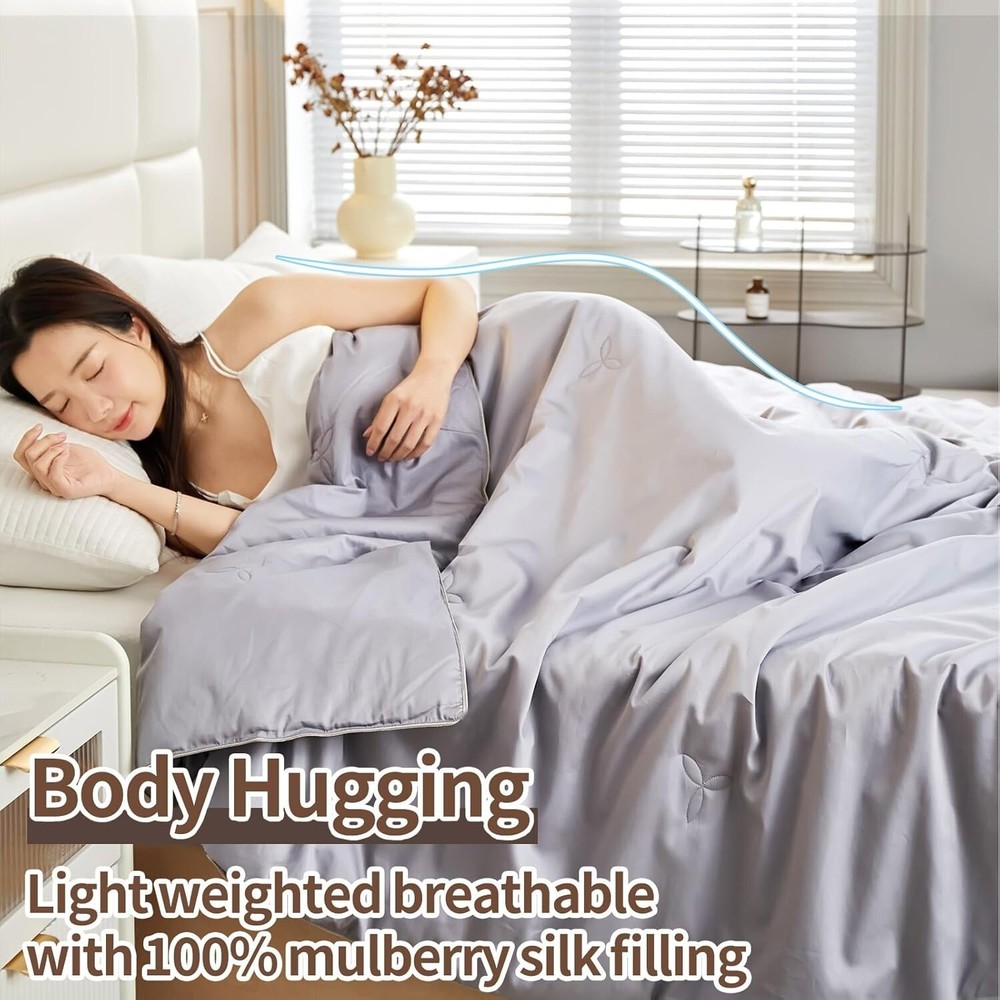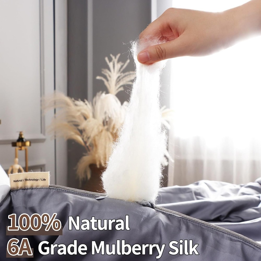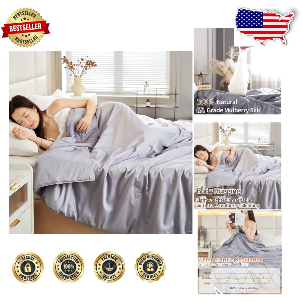 Noiseless Cotton Shell King Silk Comforter - Dreamy Comfort in Bluish Grey < class="slides"> ‹ › ‹ › ‹ › ‹ › ‹ › ‹ › ‹ › ‹ › ‹ › ‹ › Noiseless Cotton Shell King Silk Comforter - Dreamy Comfort in Bluish Grey Indulge in luxurious sleep with our exquisite King Size Silk Comforter, meticulously crafted to transform your rest experience into utter bliss. Key Features: Generous King Size: Measuring 104 x 90 inches, this comforter is perfectly tailored for spacious comfort. Silk Filling: Filled with 4 lbs of 100% natural 6A grade long-strand mulberry silk, providing a light yet cozy feel without the heaviness of down or cotton alternatives. Noiseless Comfort: Cocoon yourself in pure serenity with a 100% cotton shell that is soft, breathable, and luxuriously quiet—no more disruptive "crunch" noises to disturb your tranquility. Thermoregulated for -Round Comfort: Engineered to meet the demands of hot and cold sleepers alike, our silk material absorbs moisture while regulating body temperature, ensuring comfort through every season. Elegant Design: Eight corner/side ties ensure that the comforter remains in place, while the short zipper on the side adds functional beauty. Durable Craftsmanship: Our Clover-shaped fixing technology enhances the durability of your comforter, eliminating concerns about silk coming loose. Experience the artistry of segmented stitch quilting that preserves the integrity of your comforter. Why Choose Our Noiseless Silk Comforter? Experience a peaceful night's sleep enveloped in the silky softness of our luxury comforter that not only enhances your comfort but also elevates your bedroom aesthetic. Whether it's the chilly winters or warm summers, our comforter's thermoregulating properties cater to your unique sleeping needs, while its noiseless design ensures uninterrupted rest. Elevate your sleep sanctuary with our Noiseless Cotton Shell King Silk Comforter in Bluish Grey—where dreamy comfort meets sophisticated style. Make your purchase today and awaken to the restful slumber you deserve! Shipping Free & Fast Shipping - We offer free shipping to most of the USA with a normal delivery time of 3-7 days. However, due to the current situation, additional delivery time (up to 3 weeks) may be required for some items. Alternative Carriers - We may use alternative carriers (e.g. USPS, FedEx, UPS, etc.) to ensure your package arrives safely and on time. Due to the use of multiple carriers, we are unable to provide a tracking number automatically. Handling Time - Orders are processed and shipped within 1-2 business days of receiving cleared payment. Shipping Restrictions - Shipping to Alaska, Hawaii, Puerto Rico, Guam, and other US territories may incur shipping charges or delivery restrictions. Please contact us before ordering, or your order can be refunded/cancelled. State Restrictions - There may be restrictions based on your state of purchase. For example, certain items may not be shipped to California due to state regulations. Contact for Tracking Updates - If you require tracking updates or have any concerns about the delivery of your order, please feel free to contact us, and we will be happy to assist you. Return 30-Day Hassle-Free Returns - We want you to be completely satisfied with your purchase. If you are not, you can return the item within 30 days of receiving it for a full refund or exchange. Easy Return Process - To start a return, simply contact us and we will provide you with a prepaid return shipping label and detailed instructions. Restocking Fee - There are no restocking fees for returns. However, the buyer is responsible for return shipping costs if the return is not due to a seller's error. Refund Processing Time - Refunds will be processed within 5 business days of receiving the returned item in its condition. Payment We accept all major credit cards, PayPal, and Apple Pay for your convenience. Your payment information is secure and encrypted to ensure a safe and seamless transaction. Please complete your payment within 3 days of purchase to avoid any delays in shipping. Feedback Your feedback is extremely important to us. We strive to provide the best products and customer service possible. If you are satisfied with your purchase, please take a moment to leave us a positive review. If you have any concerns or issues with your order, please contact us before leaving negative feedback. We are committed to resolving any problems and ensuring your satisfaction. Contact Us If you have any questions or concerns, please feel free to out to our customer support team. You can contact us through the eBay messaging system. We are available Monday to Friday, 9:00 am to 5:00 pm EST, and we will do our best to respond to your inquiry within 24 hours. Buy it now and enjoy a pleasant shopping experience! Set Includes: Comforter Material: Cotton,Silk Features: Breathable,Noiseless Theme: Grey Character: Silk Care Instructions: Hand Wash,Hand Wash Only Department: Adults Room: Bedroom Size: King Type: Comforter Color: Bluish Grey Fill Material: 100% Silk Pattern: Solid Number of Items in Set: 1 Style: Modern Insulation: All Seasons Season: All Closure Type: No Closure Thread Count: Not Specified GSM (Grams per Square Meter): Not Specified