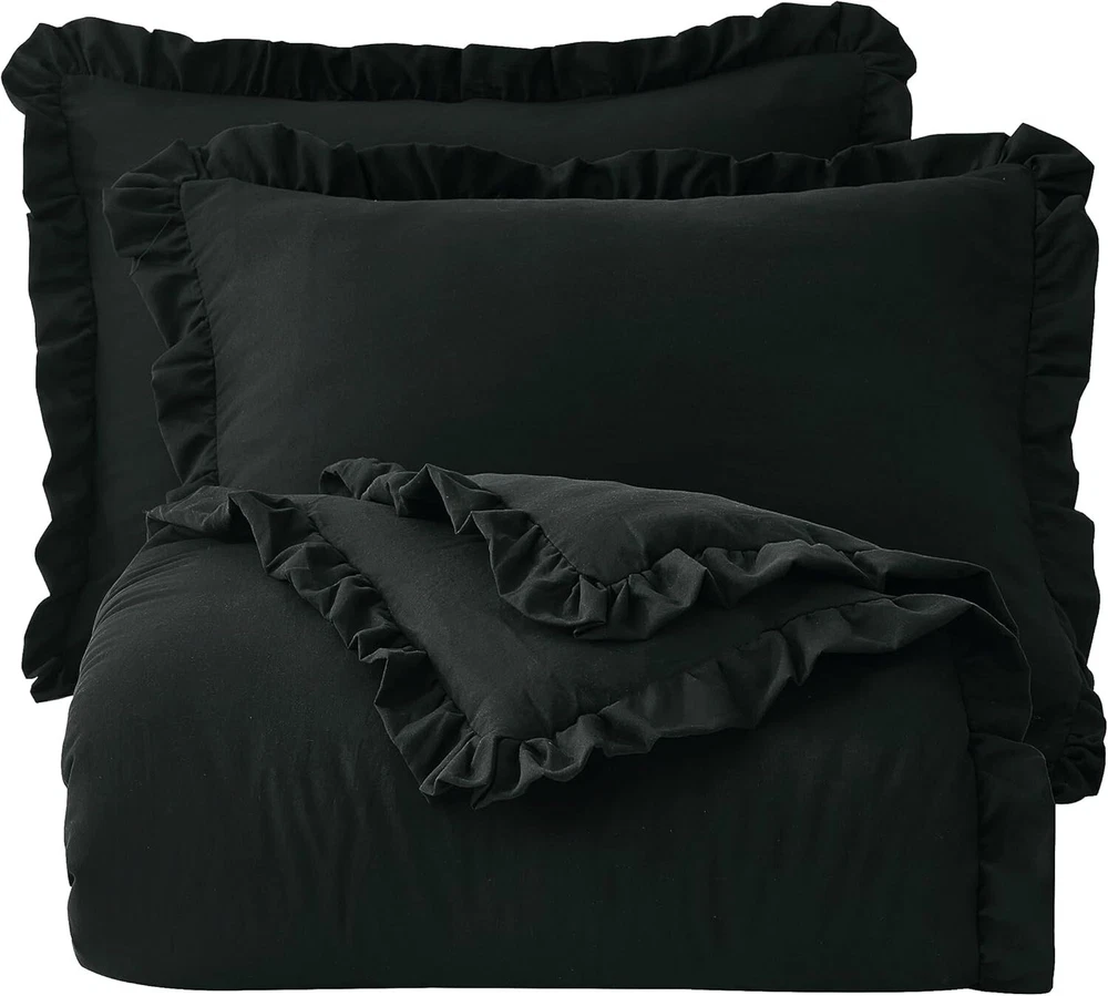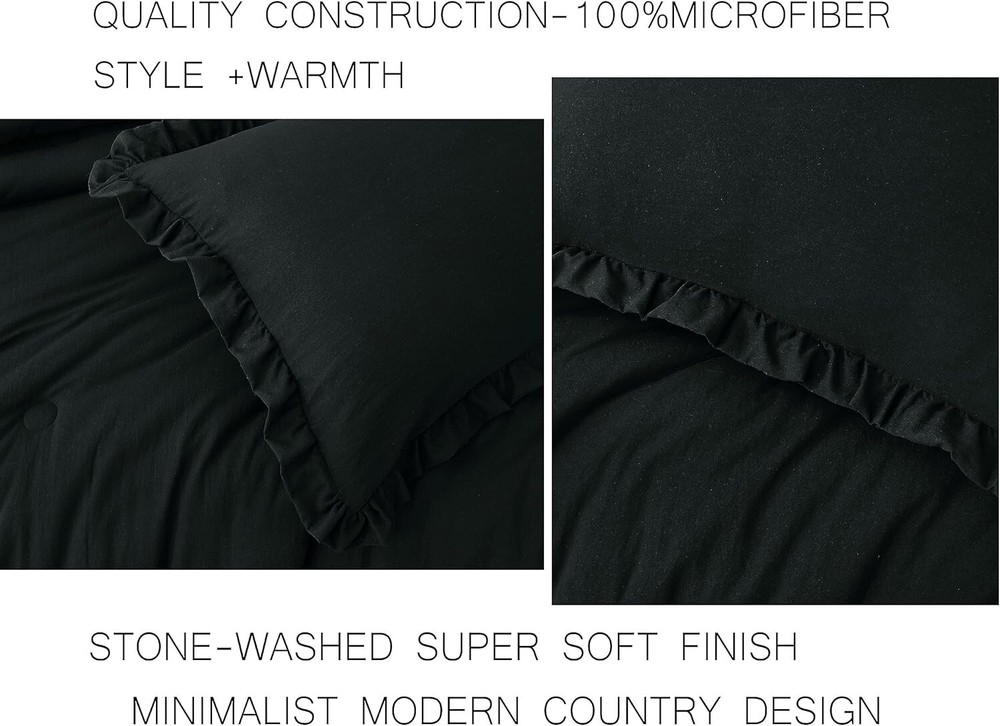 This comforter set is amazing—super soft and cozy with a vintage look that adds charm to any bedroom. The microfiber feels silky smooth, keeps me warm without being heavy, and the ruffled edges give it a stylish touch. Washes well and fits perfectly on my full-size bed. Absolutely love it!