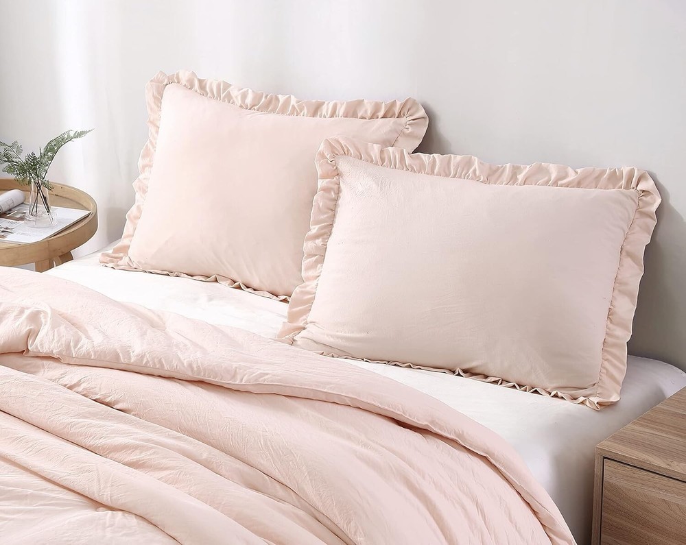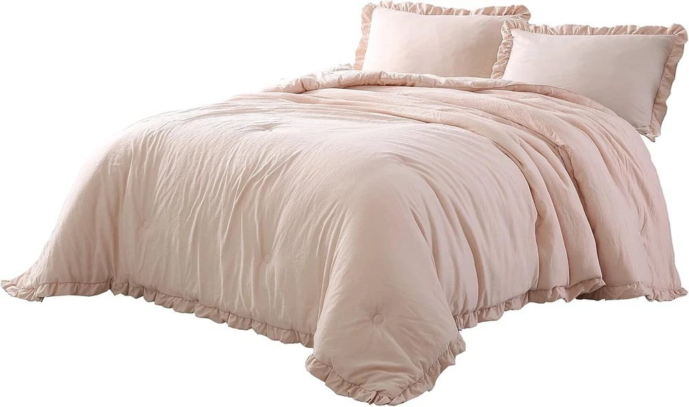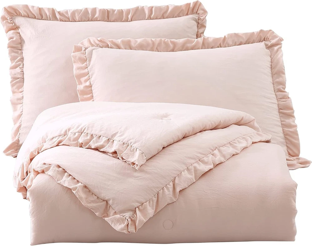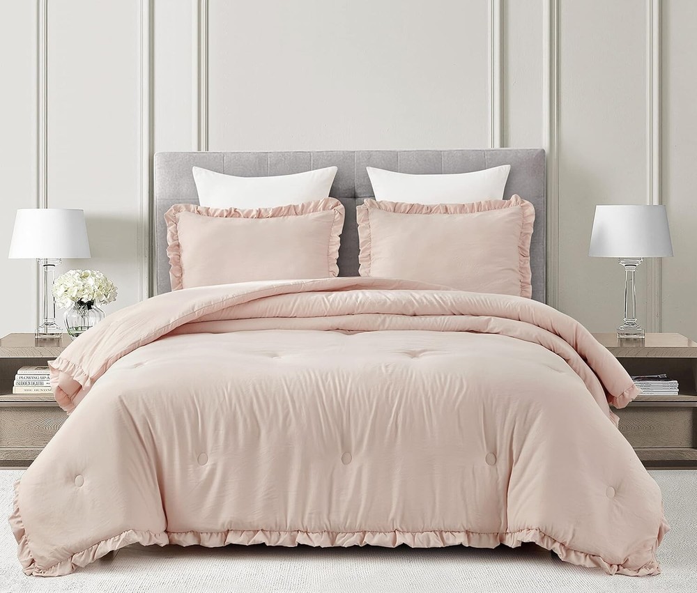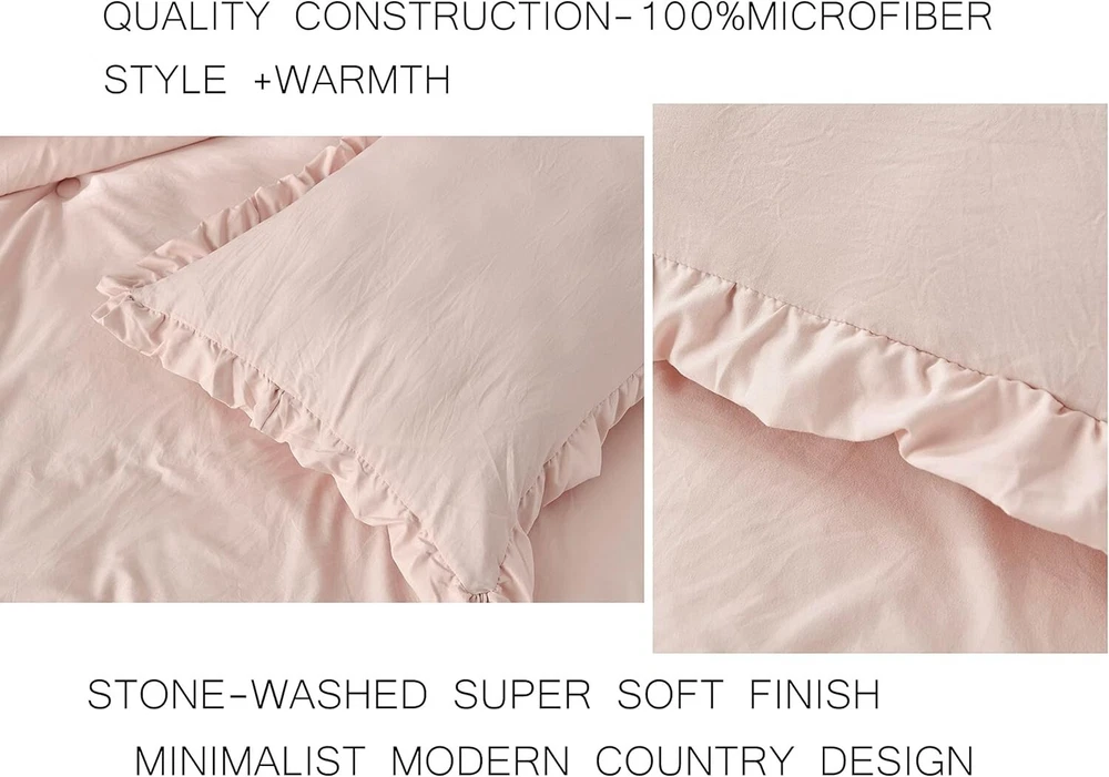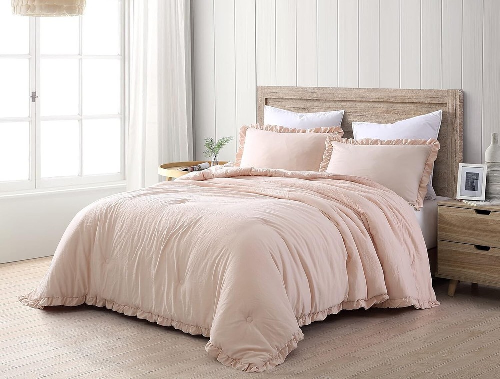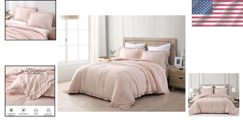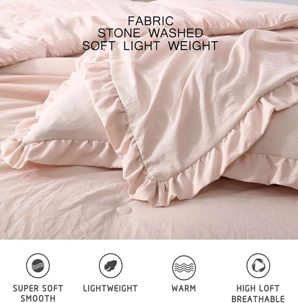 Nora Oversized Queen Ruffled Edge Microfiber Comforter Set – Blush Elegance ‹ › ‹ › ‹ › ‹ › ‹ › ‹ › ‹ › ‹ › ‹ › ‹ › Nora Oversized Queen Ruffled Edge Microfiber Comforter Set – Blush Elegance Set Includes: 1 Comforter, 2 Shams Oversized Queen Size Measurements: Comforter 98" x 98", Shams 20" x 26" +2" Features: Elegant vintage ruffled edge trim for a touch of sophistication. Crinkled effect fabric created through a unique pre-wash process, enhancing visual interest. All-season weight for -round comfort and warmth in your bedroom. Machine washable for easy care - simply toss in cold water and tumble dry low; no bleach needed. Made in OEKO-TEX Standard 100 factory, ensuring textiles are tested for harmful substances, meeting high safety and environmental standards. Benefits: Transform your bedroom into a sanctuary with the elegant blush color and stylish ruffled design. Enjoy the perfect cozy comfort, no matter the season, with this versatile comforter set. Easy maintenance ensures that your bedding stays beautiful and fresh after . Confidence in purchasing with OEKO-TEX certification, promoting your well-being by choosing safe materials. Why choose the Nora Oversized Queen Comforter Set? Indulge in the luxury of the Nora Oversized Queen Ruffled Edge Microfiber Comforter Set, where elegance meets comfort. This stunning set not only beautifies your space with its vintage ruffled detailing and soft blush hue but also offers practical ease with its machine washable design. Embrace cozy nights and stylish sleep with a comforter crafted for your utmost satisfaction, proudly made in an OEKO-TEX certified facility. Elevate your bedroom decor and enjoy the comfort you deserve – order your Nora Comforter Set today! Shipping Free & Fast Shipping - We offer free shipping to most of the USA with a normal delivery time of 3-7 days. However, due to the current situation, additional delivery time (up to 3 weeks) may be required for some items. Alternative Carriers - We may use alternative carriers (e.g. USPS, FedEx, UPS, etc.) to ensure your package arrives safely and on time. Due to the use of multiple carriers, we are unable to provide a tracking number automatically. Handling Time - Orders are processed and shipped within 1-2 business days of receiving cleared payment. Shipping Restrictions - Shipping to Alaska, Hawaii, Puerto Rico, Guam, and other US territories may incur shipping charges or delivery restrictions. Please contact us before ordering, or your order can be refunded/cancelled. State Restrictions - There may be restrictions based on your state of purchase. For example, certain items may not be shipped to California due to state regulations. Contact for Tracking Updates - If you require tracking updates or have any concerns about the delivery of your order, please feel free to contact us, and we will be happy to assist you. Return 30-Day Hassle-Free Returns - We want you to be completely satisfied with your purchase. If you are not, you can return the item within 30 days of receiving it for a full refund or exchange. Easy Return Process - To start a return, simply contact us and we will provide you with a prepaid return shipping label and detailed instructions. Restocking Fee - There are no restocking fees for returns. However, the buyer is responsible for return shipping costs if the return is not due to a seller's error. Refund Processing Time - Refunds will be processed within 5 business days of receiving the returned item in its condition. Payment We accept all major credit cards, PayPal, and Apple Pay for your convenience. Your payment information is secure and encrypted to ensure a safe and seamless transaction. Please complete your payment within 3 days of purchase to avoid any delays in shipping. Feedback Your feedback is extremely important to us. We strive to provide the best products and customer service possible. If you are satisfied with your purchase, please take a moment to leave us a positive review. If you have any concerns or issues with your order, please contact us before leaving negative feedback. We are committed to resolving any problems and ensuring your satisfaction. Contact Us If you have any questions or concerns, please feel free to out to our customer support team. You can contact us through the eBay messaging system. We are available Monday to Friday, 9:00 am to 5:00 pm EST, and we will do our best to respond to your inquiry within 24 hours. Buy it now and enjoy a pleasant shopping experience! Set Includes: Comforter,Pillow Sham Material: Microfiber,Polyester Features: Lightweight,Easy Care Theme: Farmhouse Care Instructions: Do Not Bleach,Machine Wash,Machine Wash Cold,Tumble Dry on Low Heat Department: Adults Room: Bedroom Size: Oversized Queen Type: Comforter Set Color: Blush Fill Material: Polyester Pattern: Solid Insulation: All Seasons Number of Items in Set: 3 Style: Shabby Season: All Closure Type: No Closure Thread Count: 200 or Less GSM (Grams per Square Meter): 150 to 300