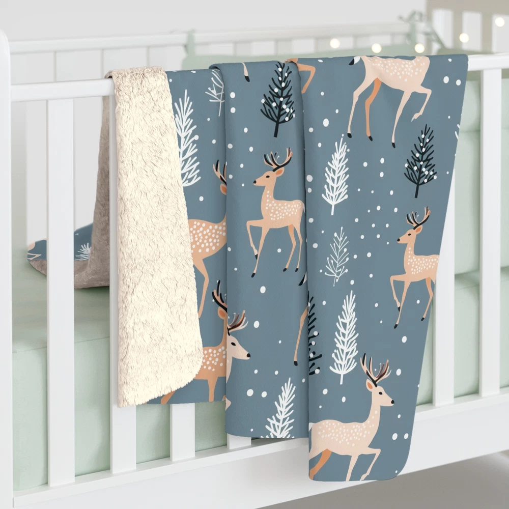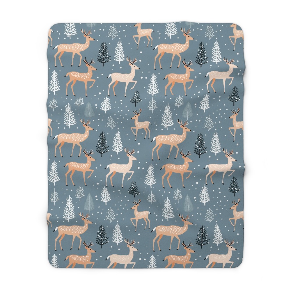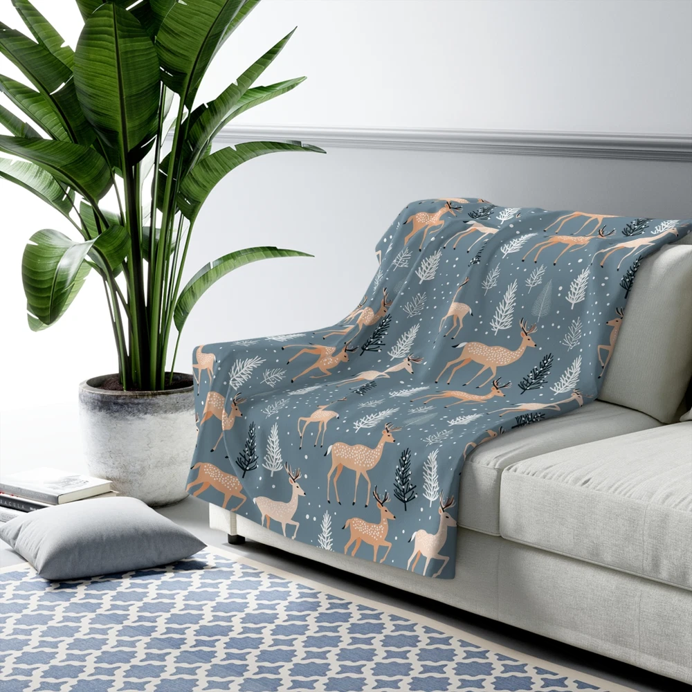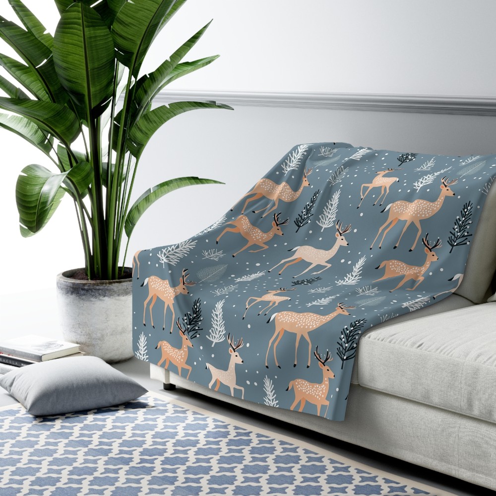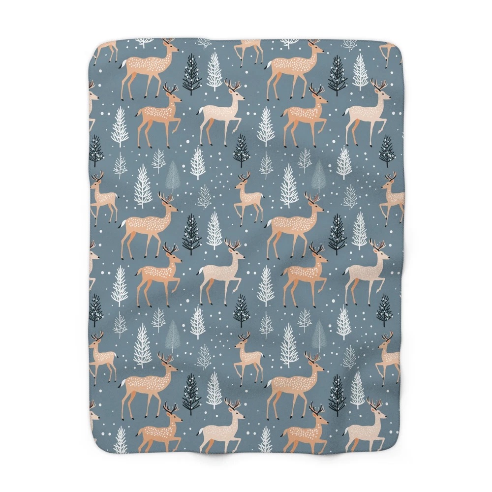 Nordic Deer Pattern Fleece Blanket for Cozy Scandinavian Christmas Decor