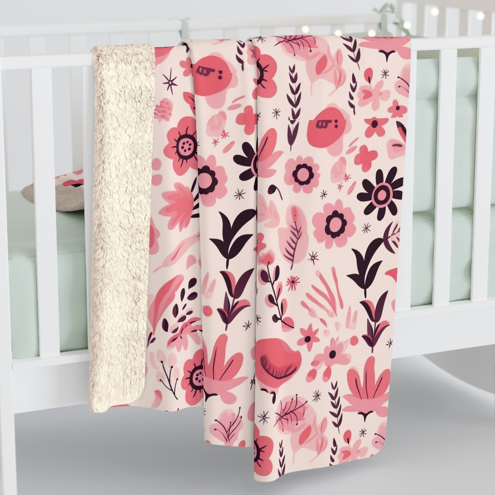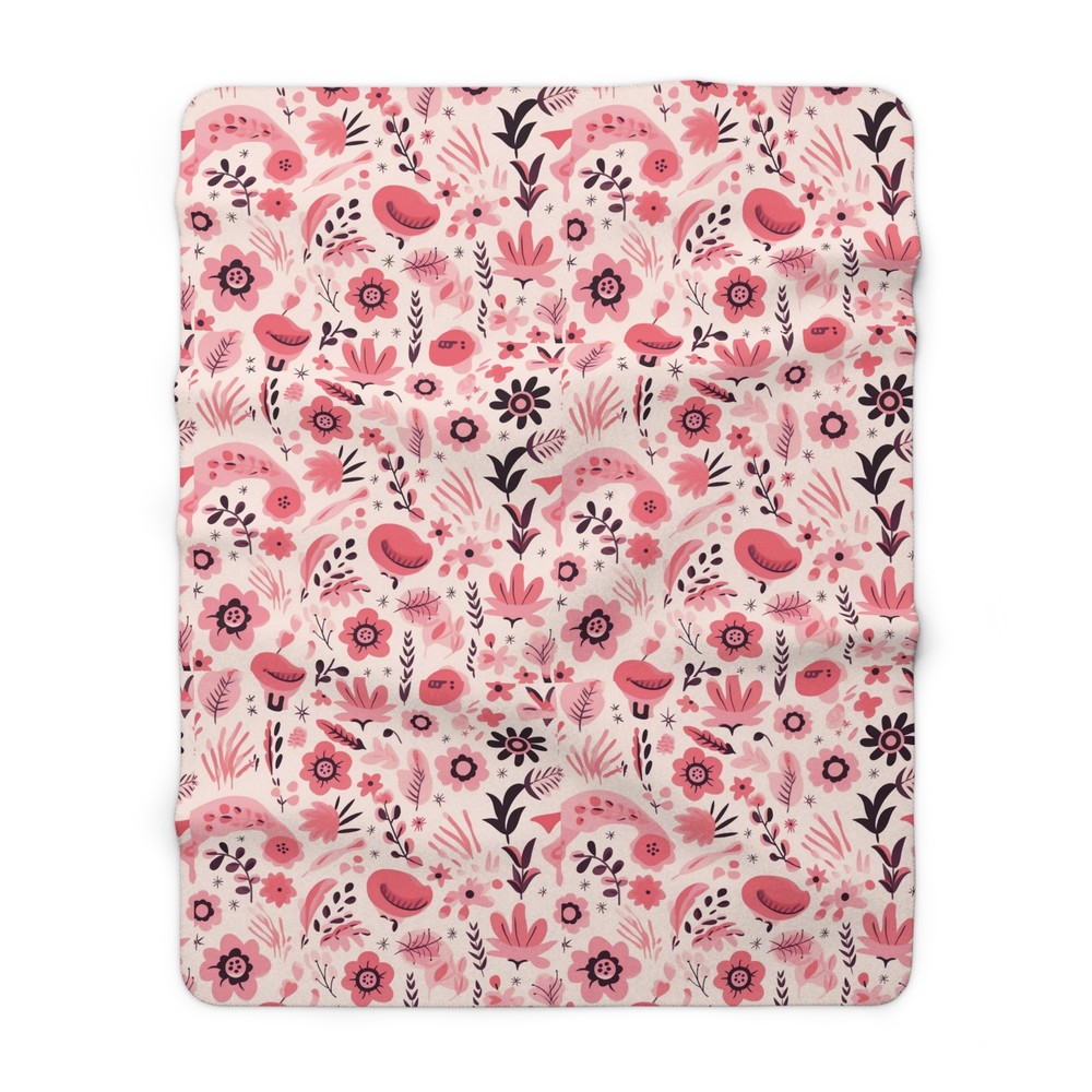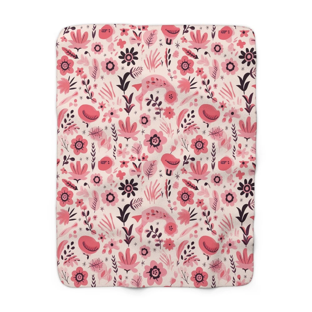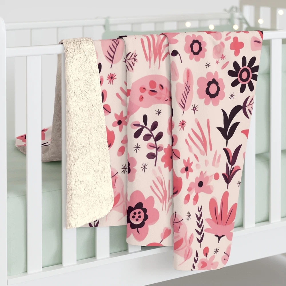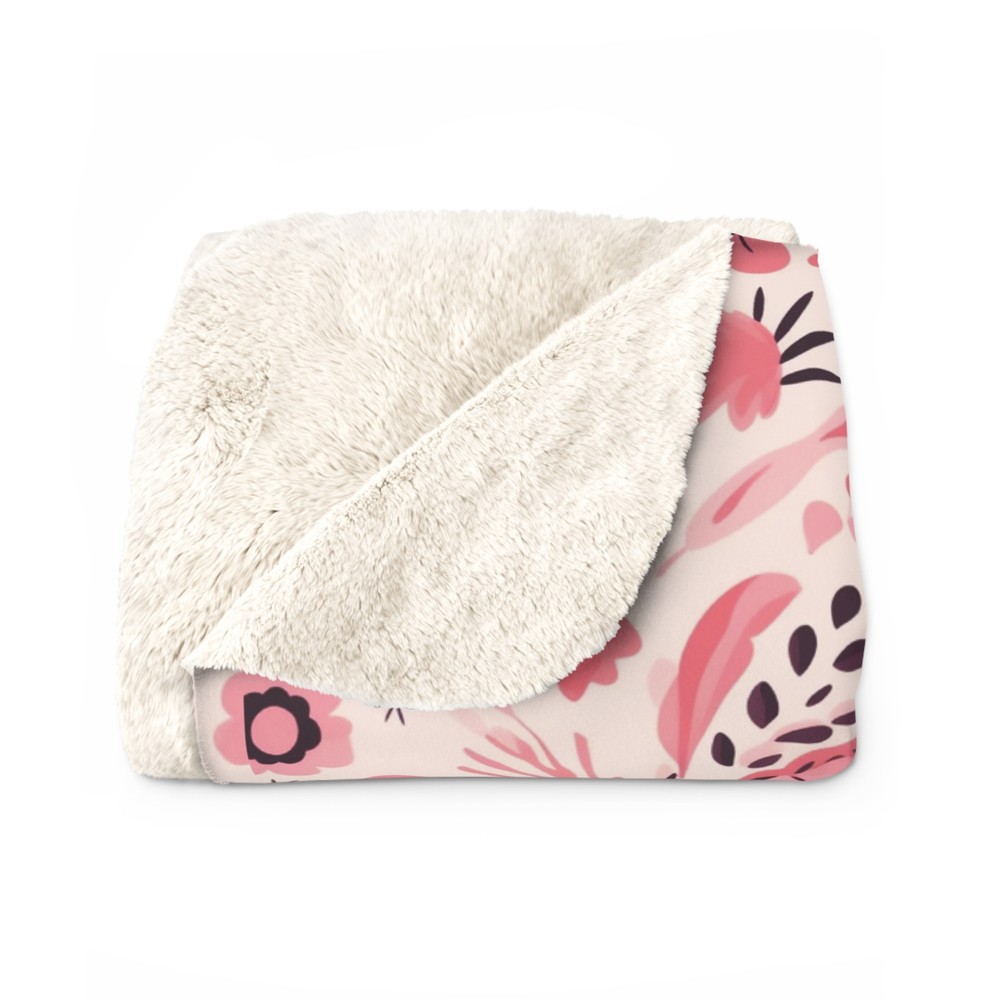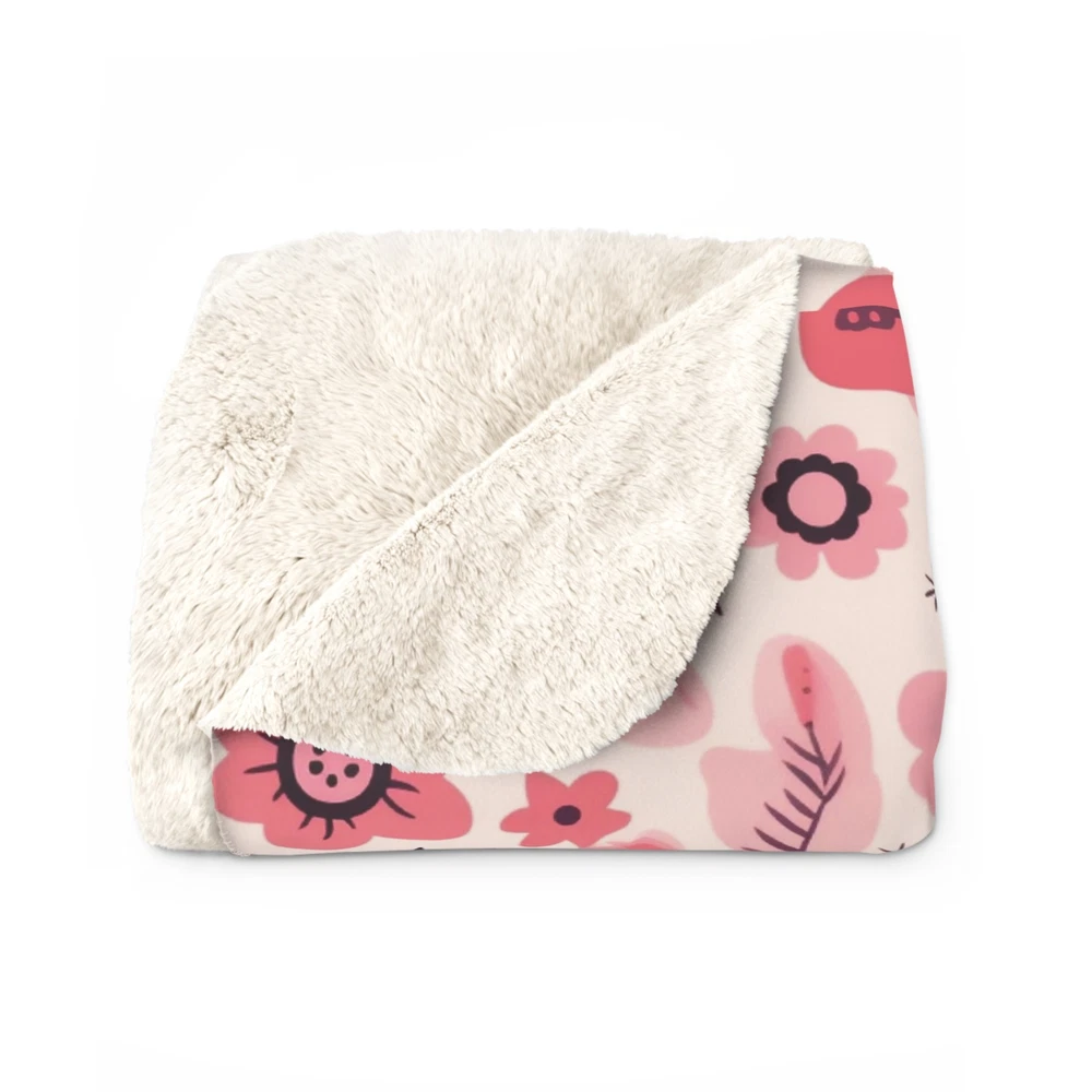 Nordic Pink Floral Sherpa Fleece Blanket Cozy Couch Throw