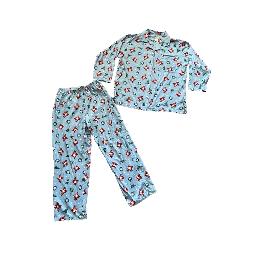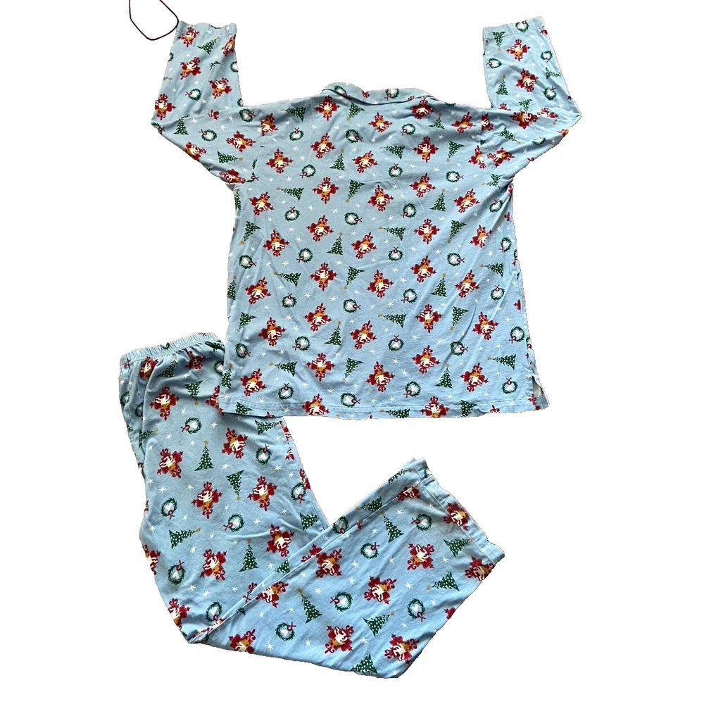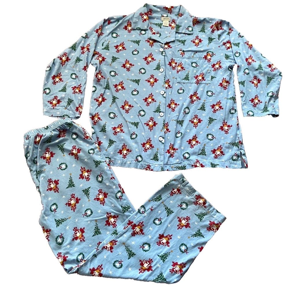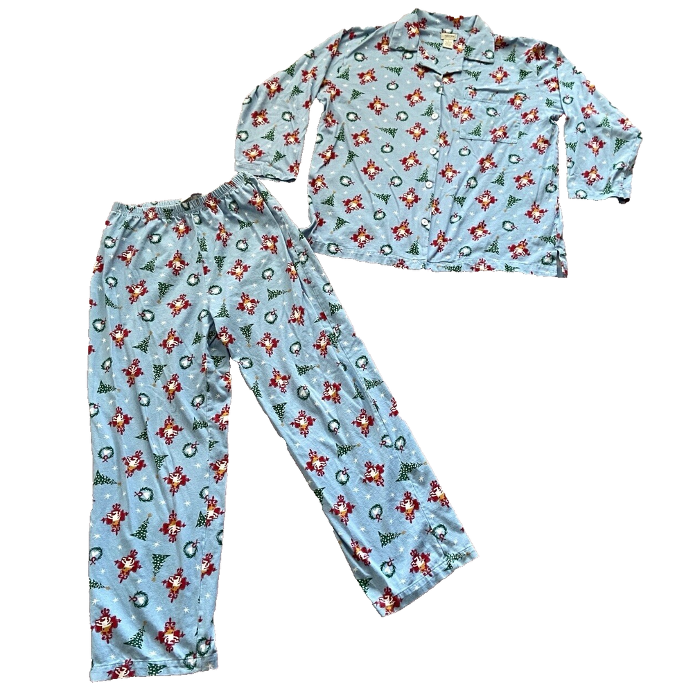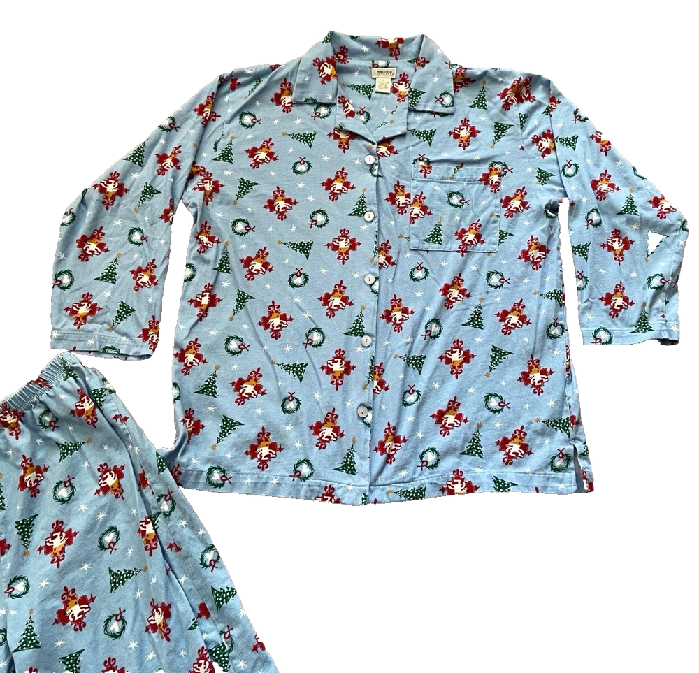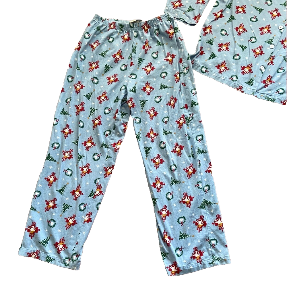 Nordstrom Pajamas Womens M Christmas Tree Reindeer All Over Print Flannel Button Underarm to underarm: 24" Length: 27" Waist: 13" Inseam: 28"...