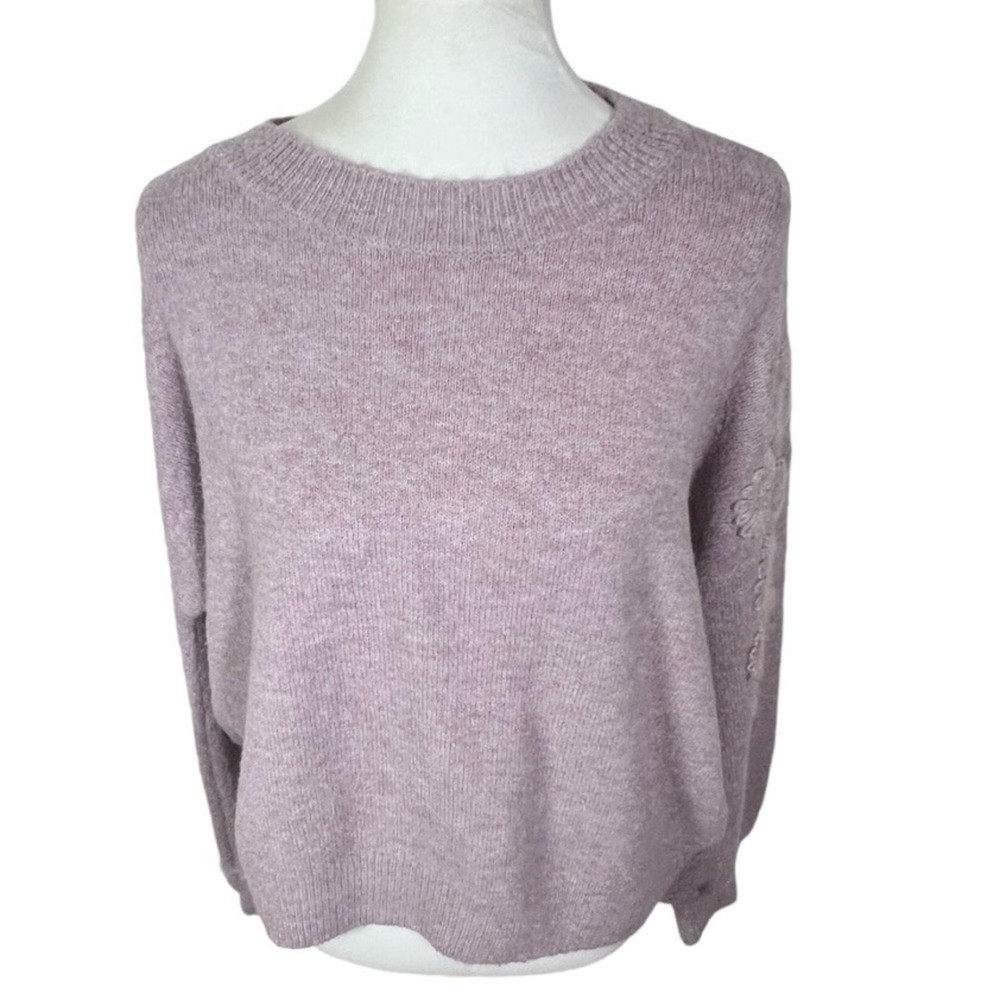 <![CDATA[<div>Thanks for stopping by! Check out my closet for other items for a discount of 20% off 2 items or more- with one flat shipping price. Same or next day shipping! Reasonable offers are welcome. Size L Measured flat: Armpit to armpit - 27 1/2 in Shoulder to hem - 22 in Relaxed fit Knit embroidered flowers 53% Acrylic 46% Nylon 1% Elastane Crew Neck Mauve, dusty rose, pink Cozy, winter, fuzzy, grannycore, cottagecore