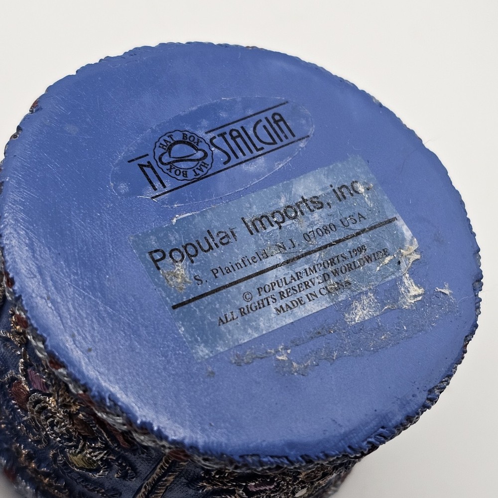 This trinket box features a nostalgic hat design with ornate detailing and a feather embellishment. It is designed by Popular Imports and serves as a decorative storage solution for small items.