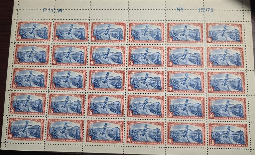 O) 1934 MEXICO, MESSENGER WITH QUIPU, SCT E3 10c brown red and blue, COMPLETE SHEET MNH, WITH CONTROL NUMBER...