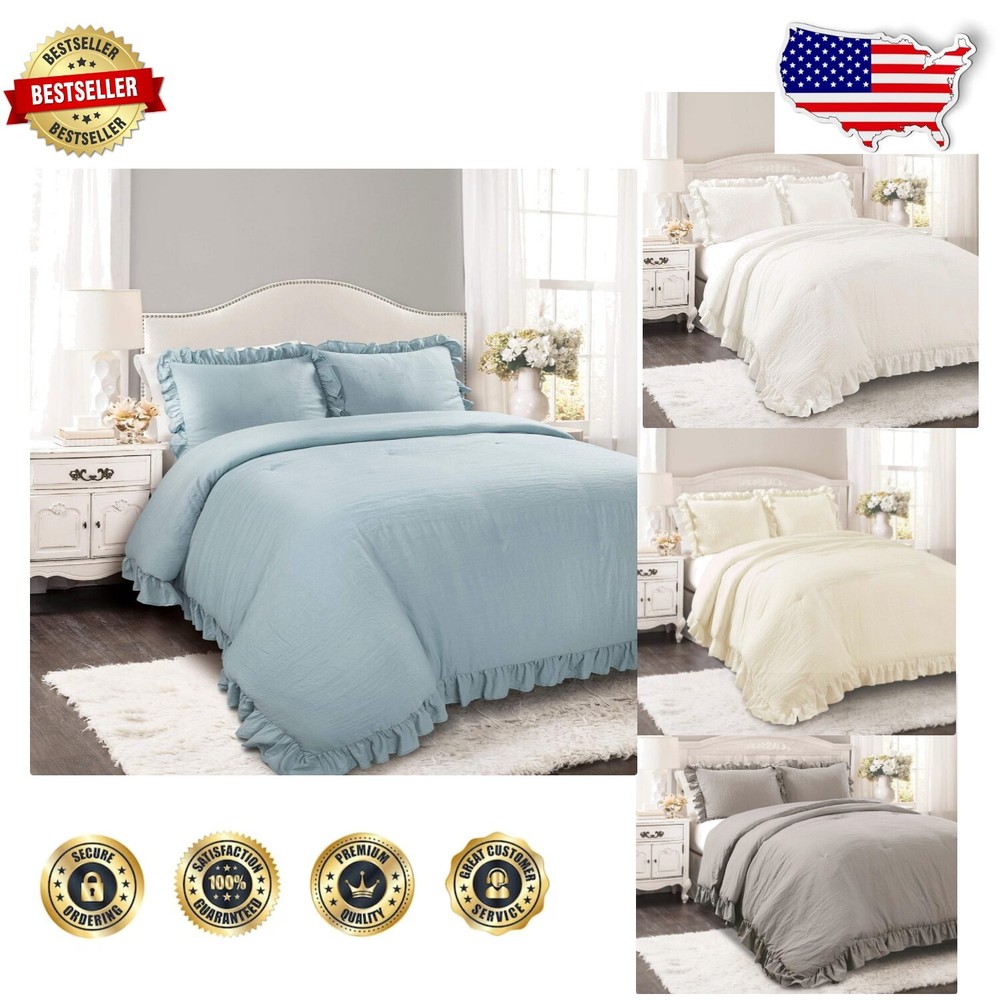OEKO-TEX Certified Reyna Ruffle Comforter Set - Soft & Cozy Bedding for Dorms ‹ › ‹ › ‹ › ‹ › ‹ › ‹ › ‹ › OEKO-TEX Certified Reyna Ruffle Comforter Set Soft & Cozy Bedding for Dorms Charming Bedding Set Transform your bedroom into an elegant retreat with our Reyna Ruffle Comforter Set, designed with a delightful frilly ruffled border that adds a touch of warmth to any decor. Ideal for lovers of minimalist, farmhouse, cottage, or vintage styles, this solid-colored textured set is easy to style and coordinate with your existing pieces. Versatile Comfort Crafted from soft microfiber, this bedding set offers exceptional softness and breathability, ensuring a comfortable night's sleep for every type of sleeper. Whether you're a hot sleeper looking for lightweight comfort or someone who enjoys layering up in colder months, the polyfill construction provides just the right warmth while maintaining elegance. Complete Bedding Set Includes 1 comforter (92" W x 96" L + 4" ruffle) Comes with 2 standard pillow shams (26" W x 20" L + 2.5" ruffle) You won't want to leave the comfort of your bed once you style this cozy set. Easy Care Designed with your busy lifestyle in mind, this bedding set is machine washable on a gentle cycle with cold water. Simply tumble dry on low for ease of maintenance, and use a steamer to release any wrinkles if needed. Buy with Confidence Rest easy knowing your bedding set is OEKO-TEX® Standard 100 certified, ensuring that all materials, dyes, and components have been rigorously tested for harmful substances—keeping your living environment safe and serene. About Us is dedicated to providing beautiful home decor inspired by diverse styles for every room and age group. Our luxury-for-less designs, crafted by a woman-founded and led brand, emphasize timeless textures, rich colors, and personalized style to enhance any space. Why Choose the Reyna Ruffle Comforter Set? Elevate your bedroom, guest room, teen's space, or dorm to a haven of elegance and comfort with this exceptional comforter set! The charming ruffles and sophisticated design make it a perfect fit for various aesthetics, whether you're aiming for a farmhouse vibe or a vintage touch. Don't settle for ordinary. Indulge in extraordinary comfort and style today! Shipping Free & Fast Shipping - We offer free shipping to most of the USA with a normal delivery time of 3-7 days. However, due to the current situation, additional delivery time (up to 3 weeks) may be required for some items. Alternative Carriers - We may use alternative carriers (e.g. USPS, FedEx, UPS, etc.) to ensure your package arrives safely and on time. Due to the use of multiple carriers, we are unable to provide a tracking number automatically. Handling Time - Orders are processed and shipped within 1-2 business days of receiving cleared payment. Shipping Restrictions - Shipping to Alaska, Hawaii, Puerto Rico, Guam, and other US territories may incur shipping charges or delivery restrictions. Please contact us before ordering, or your order can be refunded/cancelled. State Restrictions - There may be restrictions based on your state of purchase. For example, certain items may not be shipped to California due to state regulations. Contact for Tracking Updates - If you require tracking updates or have any concerns about the delivery of your order, please feel free to contact us, and we will be happy to assist you. Return 30-Day Hassle-Free Returns - We want you to be completely satisfied with your purchase. If you are not, you can return the item within 30 days of receiving it for a full refund or exchange. Easy Return Process - To start a return, simply contact us and we will provide you with a prepaid return shipping label and detailed instructions. Restocking Fee - There are no restocking fees for returns. However, the buyer is responsible for return shipping costs if the return is not due to a seller's error. Refund Processing Time - Refunds will be processed within 5 business days of receiving the returned item in its original condition. Payment We accept all major credit cards, PayPal, and Apple Pay for your convenience. Your payment information is secure and encrypted to ensure a safe and seamless transaction. Please complete your payment within 3 days of purchase to avoid any delays in shipping. Feedback Your feedback is extremely important to us. We strive to provide the best products and customer service possible. If you are satisfied with your purchase, please take a moment to leave us a positive review. If you have any concerns or issues with your order, please contact us before leaving negative feedback. We are committed to resolving any problems and ensuring your satisfaction. Contact Us If you have any questions or concerns, please feel free to reach out to our customer support team. You can contact us through the eBay messaging system. We are available Monday to Friday, 9:00 am to 5:00 pm EST, and we will do our best to respond to your inquiry within 24 hours. Buy it now and enjoy a pleasant shopping experience! UPC: Not Set Model: Not Set Set Includes: Comforter,Pillow Sham Material: Polyester Features: Lightweight Theme: Not Set Character: Not Set Care Instructions: Machine Wash Cold,Tumble Dry on Low Department: Teens,Adults Room: Bedroom,Dorm Room Labels & Certifications: Not Set Size: Full Type: Comforter Set Brand: Unbranded Color: Lake Blue Fill Material: Polyester Pattern: Solid Item Width: Not Set Item Length: Not Set MPN: Not Set Number of Items in Set: 3 Style: Farmhouse Character Family: Not Set Insulation: All Seasons Season: All Country/Region of Manufacture: Not Set Closure Type: No Closure Drop Length: Not Set Thread Count: 200 or Less GSM (Grams per Square Meter): Below 150 Product Line: Not Set Personalize: Not Set