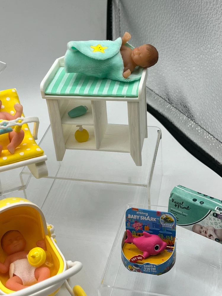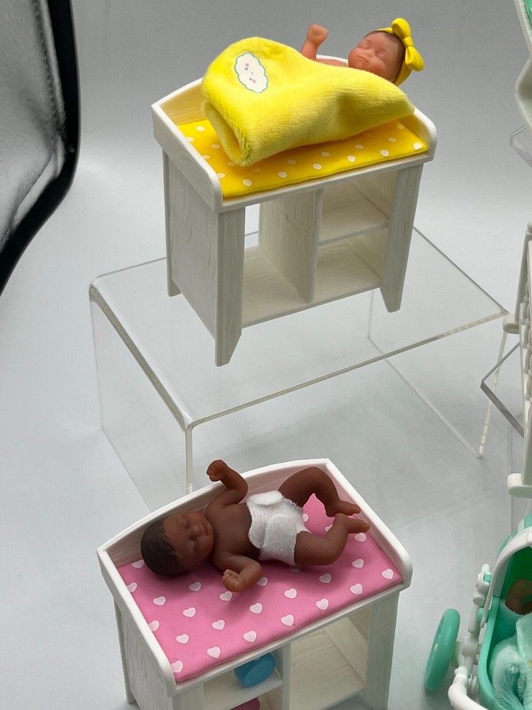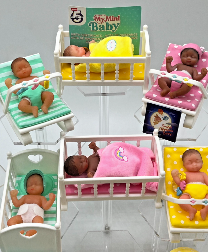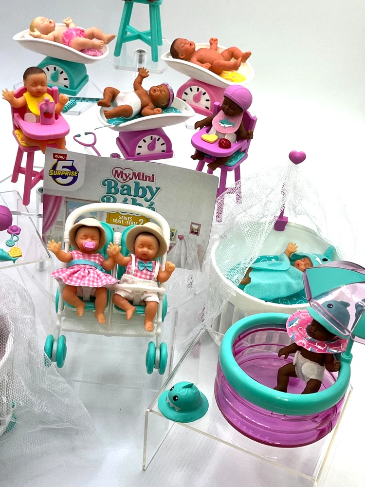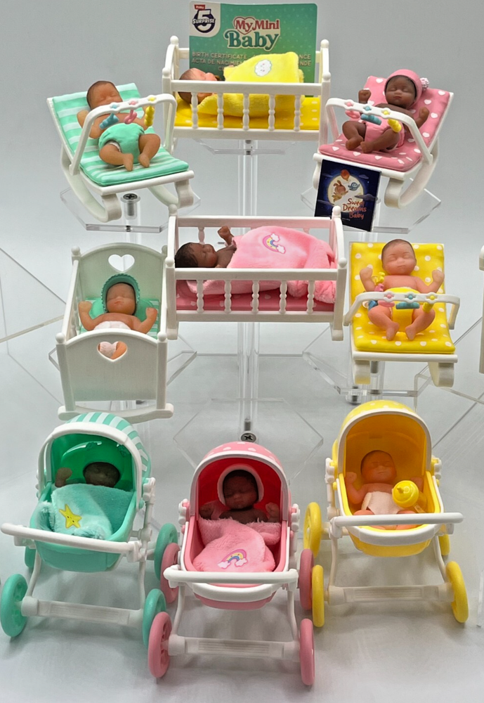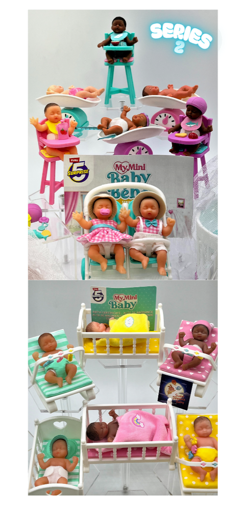 My Mini Baby Series 2 is here! They have fancy cribs, high chairs, pools, twin outfits, and double strollers!! So cute, rattles, sippy cups, pacifier (very rare!), apple slices, juice pouch & more! (Buy two of the same baby to create twins) Collect as many as you can! So Real! So Mini! So Cute! Meet the cutest, ultra-realistic, mini silicone baby with 5 Surprise My Mini Baby! There are 12 babies and playsets to discover. Pink is RARE! It's time to name your adorable Mini Baby and fill in their birth certificates. Collect all 12 My Mini Baby companions and create the cutest mini nursery! New condition, some packages opened for identification or display only. All items come unassembled with instructions except for the complete set of 12. Babies are sold individually without any accessories, but with a Birth Certificate. Furniture is sold without any babies or accessories except mat/sheet/etc. Combined shipping is now $0.25 for each additional item! Discounts up to 10% for multiple items. Babies will need care and cleaning. The silicone material easily picks up lint from the diapers and blankets. Pictures are of new just opened products. If you see tiny hairs or fibers in the photos, it is from the blankets and diapers. Baby baths 🛁 will make playtime even more fun! NEW REAL GLASS BABY BOTTLES now for sale! These are not part of the Mini Brand collection. Hand made, GLASS bottles with a plastic top, refillable! The top pulls off and you can fill with any liquid you choose. Teddy Bear or Panda version available. These will not last long hurry before they are gone. Ultra-realistic baby: My Mini Baby is ultra-realistic with baby soft skin and the cutest mini features. Imaginative play: Create a mini nursery with the My Mini Baby playsets, the perfect place to swaddle and take care of your mini babies. Baby playset: The My Mini Baby playsets are the perfect place to take care of your Mini Baby. Find and build the Sleep Time, Stroller Outing, Play Time, or the Diaper Change playset! Try to collect the whole set! Supervision is required for small children due to choking hazard. Not intended for children 3 or under. If you are looking for more miniature items check out my recommended items page! https://www.ebay.com/inf/tinybotique/collections/262209549