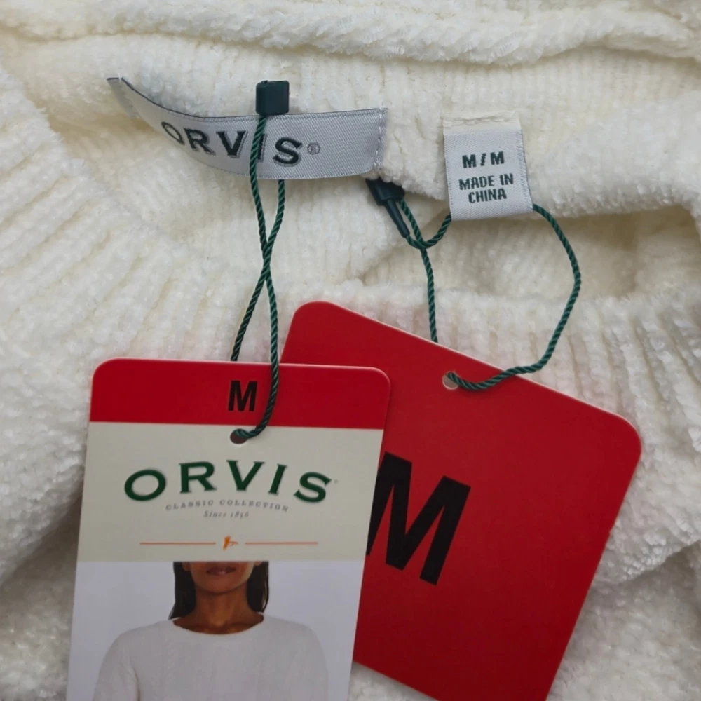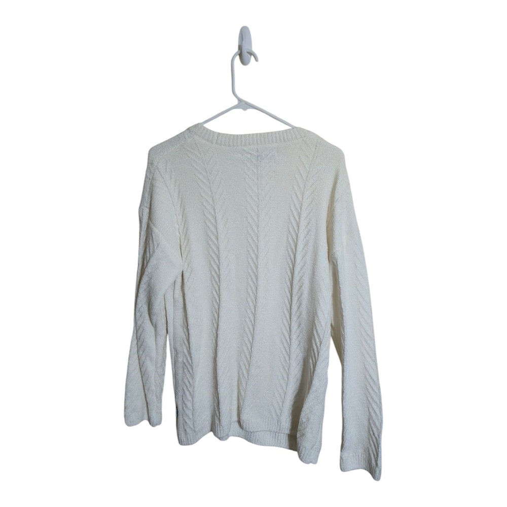 Slip into the cozy embrace of this soft Orvis sweater, a perfect addition to your wardrobe for those crisp days. The classic white hue is versatile, making it an ideal match for any outfit, while the cable knit pattern adds a touch of timeless charm. The crew neck design and long sleeves offer a comforting, relaxed fit that's just right for your casual or career ensembles. Crafted from polyester, this women's medium-sized pullover sweater combines comfort with durability. Its heathered fabric and regular sleeve type ensure a flattering silhouette without compromising on warmth. Whether you're aiming for a grandmacore look or simply seeking a comfy layer, this sweater's understated elegance will not disappoint.