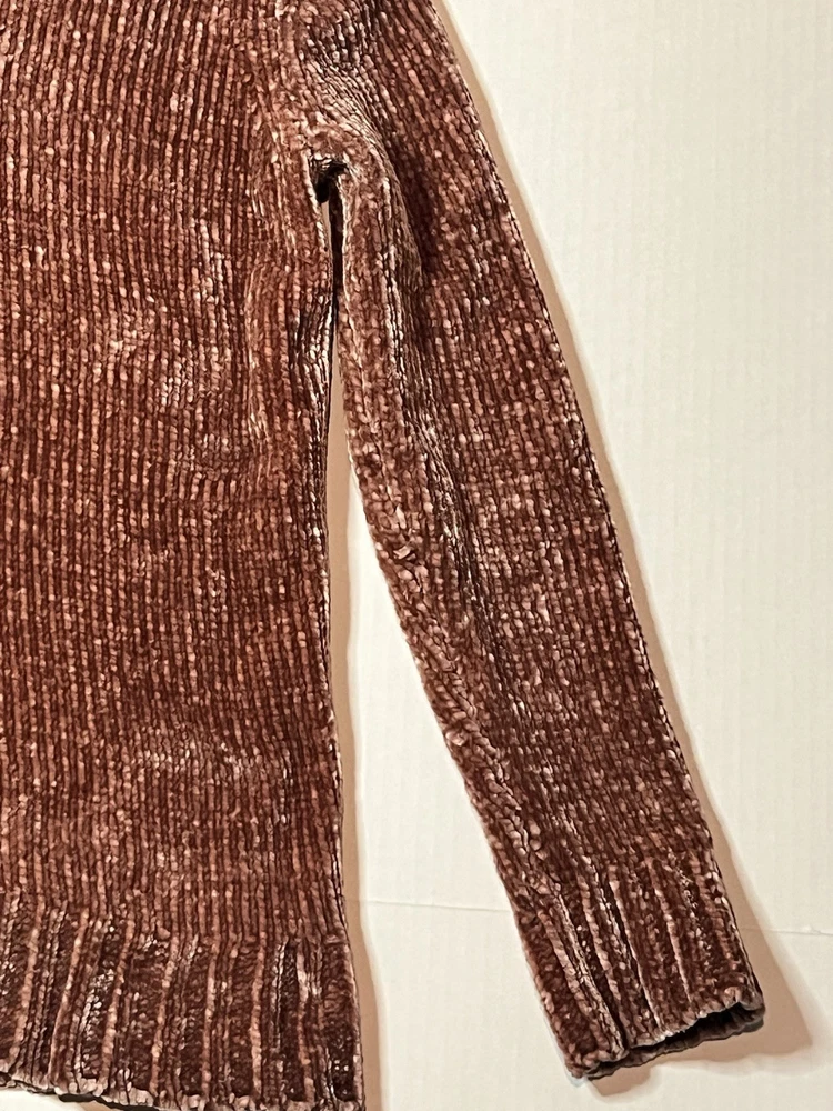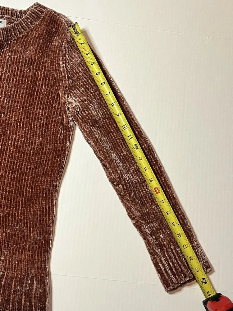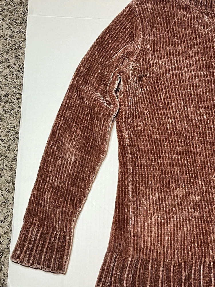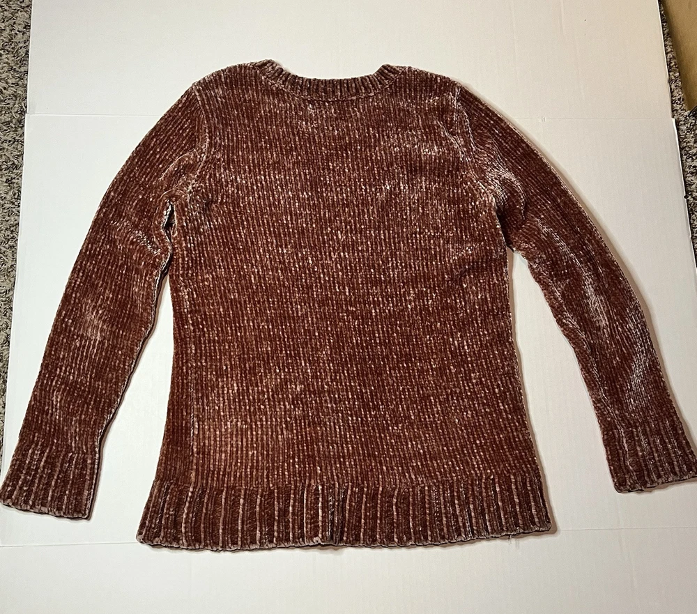 This ORVIS women's sweater is a cozy chenille pullover in a rust orange color. It features a crew neck neckline, long sleeves, and a straight hem. The knit style is chunky-knit, providing a stretchy and soft feel. The sweater is designed for a regular fit in size small. It is suitable for various occasions such as travel, parties, casual outings, and formal or business settings, making it a versatile and stylish addition to your wardrobe.
