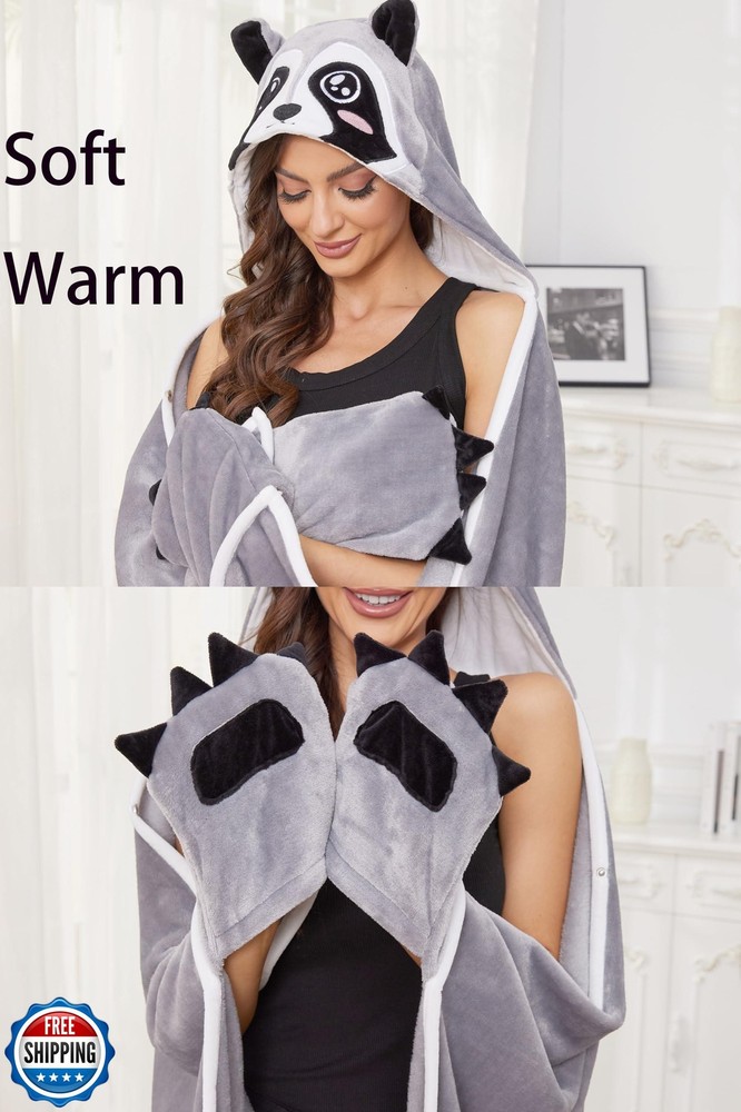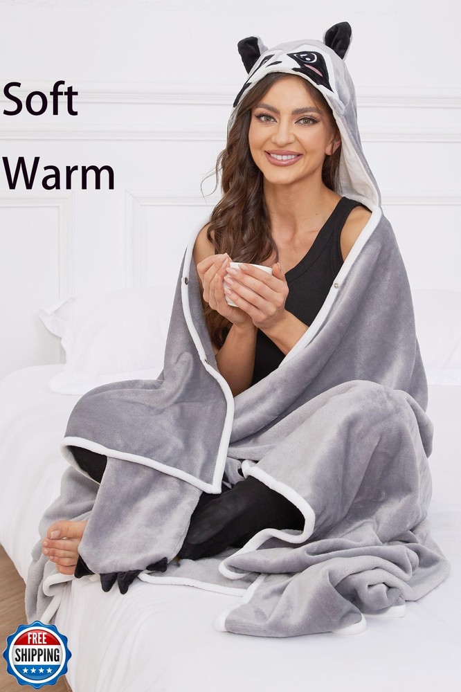 OUSIEDISIE Raccoon Wearable Hooded Blanket for Adults Cute Racoon Gifts for Women Men Wife Girlfriend Features Cozy and Comfy:Raccoon Costume-Stay cozy with our Raccoon shaped wearable Raccoon blanket,We use the excellent flannel fleece material,Keeping you warm in the cold winter Versatile:Raccoon Costume Raccoon Wearable Blanket Whether you're sipping your morning coffee outside or working in the office, it doubles as a cozy cape that frees up your hands to move freely while staying cozy and warm Perfect Holiday Gift:Raccoon Hooded Blanket Raccoon costume fits for loungewear, Raccoon Pajama Party, Dress Up, Home Wear, Holiday, Cosplay Costume, Halloween and other occasions, it is an amazing gift for Christmas, Easter Easy Care:Raccoon Hooded Blanket can conveniently machine washable, making them easy to clean and care for after long days of wear.As a gift, it is a great choice One Size Fit All:Our Raccoon Hooded Blanket 59" L x 51" W is generously sized to fit all shapes and sizes, whether you're snuggling up on the couch or enjoying a cozy night's sleep in bed, the animal blanket has you covered Shipping Free & Fast Shipping: We offer free shipping to most of the USA with a normal delivery time of 3-7 days. However, due to the current situation, additional delivery time (up to 3 weeks) may be required for some items. Alternative Carriers: We may use alternative carriers (e.g., USPS, FedEx, UPS) to ensure your package arrives safely and on time. Due to the use of multiple carriers, we are unable to provide a tracking number automatically. Handling Time: Orders are processed and shipped within 1-2 business days of receiving cleared payment. Shipping Restrictions: Shipping to Alaska, Hawaii, Puerto Rico, Guam, and other US territories may incur shipping charges or delivery restrictions. Please contact us before ordering, or your order can be refunded/cancelled. State Restrictions: Certain items may not be shipped to California due to state regulations. Contact for Tracking Updates: If you require tracking updates or have any concerns about the delivery of your order, please feel free to contact us, and we will be happy to assist you. Return Policy 30-Day Hassle-Free Returns: If you are not completely satisfied with your purchase, you can return the item for free within 30 days of receiving it for a full refund or exchange. Easy Return Process: Contact us, and we will provide you with a prepaid return shipping label and detailed instructions. No Restocking Fee: There are no restocking fees for returns. However, the buyer is responsible for return shipping costs if the return is not due to a seller's error. Refund Processing: Refunds will be processed within 1 business day of receiving the returned item in its original condition. Payment We accept all major credit cards, PayPal, and Apple Pay for your convenience. Your payment information is secure and encrypted to ensure a safe and seamless transaction. Please complete your payment within 3 days of purchase to avoid any delays in shipping. Feedback Your feedback is extremely important to us. We strive to provide the best products and customer service possible. If you are satisfied with your purchase, please take a moment to leave us a positive review. If you have any concerns or issues with your order, please contact us before leaving negative feedback. We are committed to resolving any problems and ensuring your satisfaction. Contact Us If you have any questions or concerns, please feel free to reach out to our customer support team. You can contact us through the eBay messaging system. We are available Monday to Friday, 9:00 am to 5:00 pm EST, and we will do our best to respond to your inquiry within 24 hours. Thank you for supporting our small family business!