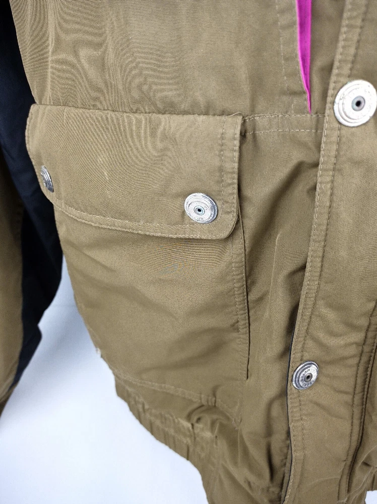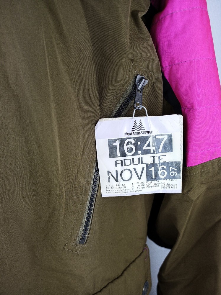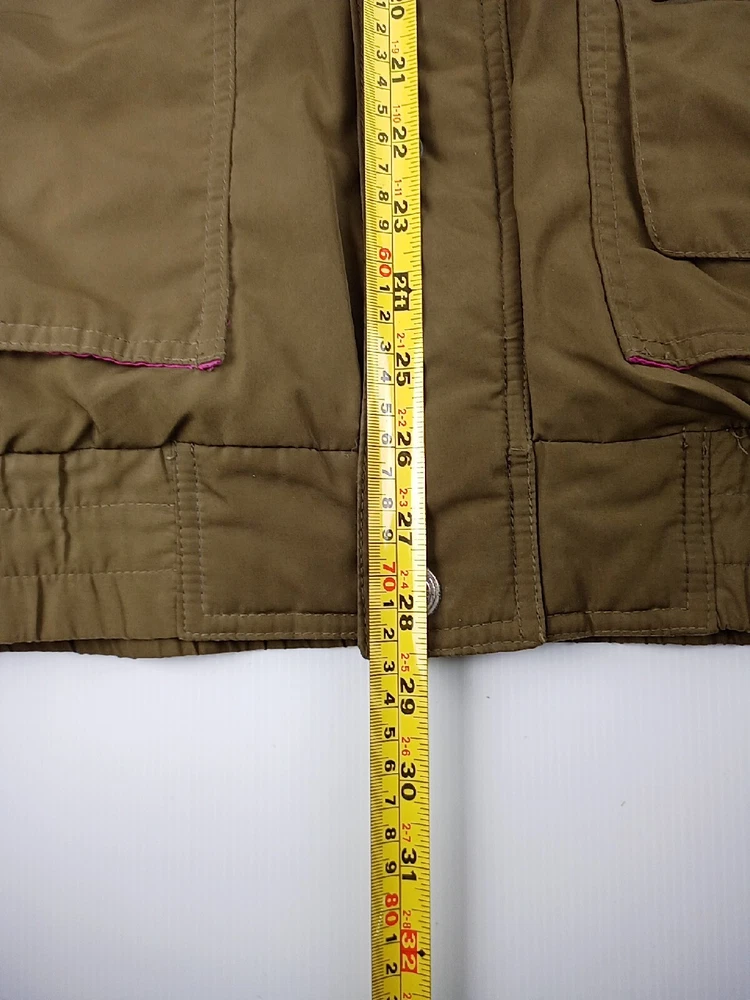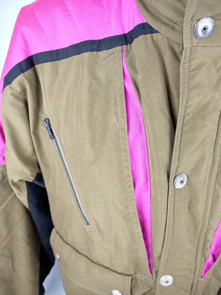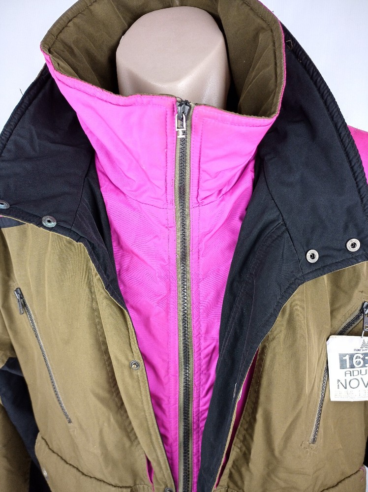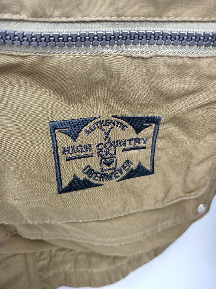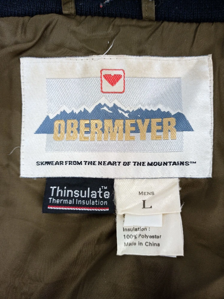 Stay warm and stylish on the slopes with this vintage Obermeyer ski jacket. Made from durable polyester, this jacket features Thinsulate insulation for optimal warmth in cold weather. Its softshell fabric and elastic waist ensure a comfortable fit, while the full zip and zipped pockets provide both convenience and security. This green ski jacket is waterproof, wind-resistant, and water-resistant, making it the perfect choice for all-season use. With its classic solid pattern and Obermeyer logo accents, this jacket is both functional and fashionable. Don't miss out on this retro piece of skiwear.