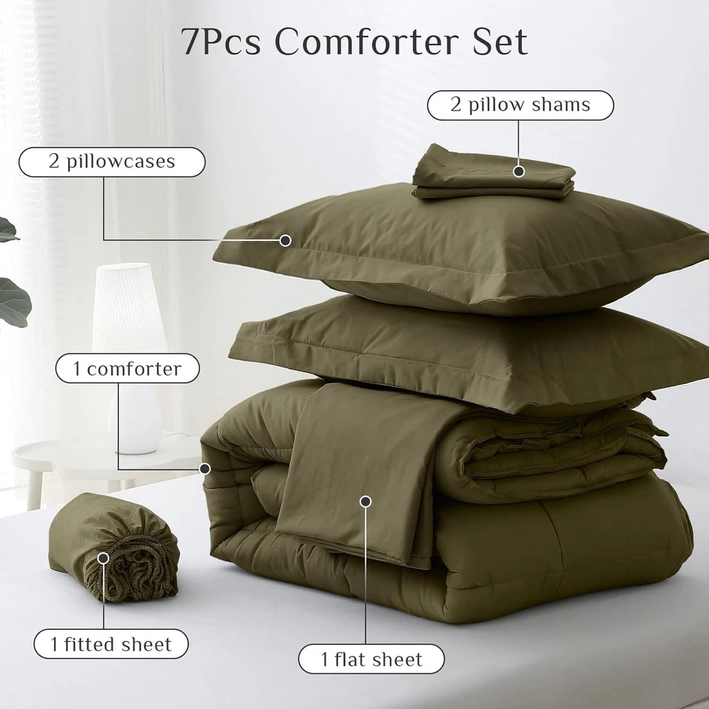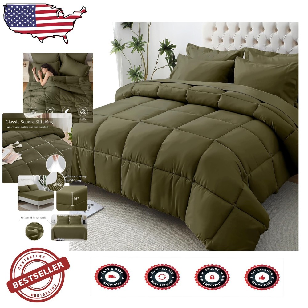 Oeko-TEX Certified California King Comforter Set in Olive Green - Cozy Elegance ‹ › ‹ › ‹ › ‹ › ‹ › ‹ › ‹ › ‹ › ‹ › ‹ › Oeko-TEX Certified California King Comforter Set in Olive Green - Cozy Elegance Transform your bedroom into a serene sanctuary with this exquisite California King Comforter Set, designed with the utmost care to provide you with an unparalleled sleeping experience. Features: All-Season Comfort: Made from premium brushed fabric, this comforter set is soft, breathable, and Oeko-TEX certified, ensuring safety and quality. Down Alternative Fill: Offers the perfect amount of warmth and lightness for year-round use, making it ideal for all climates. Robust Engineering: Grid quilting locks fluffy filling in place, maintaining thickness even after repeated washes; stitching prevents shifting for reliable comfort. Practical Design: Deep pocket elastic fitted sheet stays securely anchored on 10-14" mattresses, accommodating restless sleepers effortlessly. Complete Bed in a Bag: Includes everything you need: 1 comforter (104" x 96"), 1 flat sheet (108" x 102"), 1 fitted sheet (84" x 72" +14" deep), 2 pillowcases (20" x 40"), and 2 pillow shams (20" x 36"). Easy Maintenance: Machine washable and dryable for effortless cleaning; restore plush loft by tumble drying on low or air-drying for a few hours. Why Choose This Comforter Set? This Oeko-TEX Certified California King Comforter Set is not merely a bedding ensemble; it's an invitation to experience luxurious comfort. The rich olive green hue complements various decor styles, enhancing tranquility in your sanctuary. Engineered for durability and comfort, this set ensures you enjoy restful nights and comfortable mornings. Indulge in a cozy elegance that promises not only aesthetic appeal but also quality and safety. Elevate your sleep experience—order your Oeko-TEX Certified California King Comforter Set today! Shipping Free & Fast Shipping - We offer free shipping to most of the USA with a normal delivery time of 3-7 days. However, due to the current situation, additional delivery time (up to 3 weeks) may be required for some items. Alternative Carriers - We may use alternative carriers (e.g. USPS, FedEx, UPS, etc.) to ensure your package arrives safely and on time. Due to the use of multiple carriers, we are unable to provide a tracking number automatically. Handling Time - Orders are processed and shipped within 1-2 business days of receiving cleared payment. Shipping Restrictions - Shipping to Alaska, Hawaii, Puerto Rico, Guam, and other US territories may incur shipping charges or delivery restrictions. Please contact us before ordering, or your order can be refunded/cancelled. State Restrictions - There may be restrictions based on your state of purchase. For example, certain items may not be shipped to California due to state regulations. Contact for Tracking Updates - If you require tracking updates or have any concerns about the delivery of your order, please feel free to contact us, and we will be happy to assist you. Return 30-Day Hassle-Free Returns - We want you to be completely satisfied with your purchase. If you are not, you can return the item within 30 days of receiving it for a full refund or exchange. Easy Return Process - To start a return, simply contact us and we will provide you with a prepaid return shipping label and detailed instructions. Restocking Fee - There are no restocking fees for returns. However, the buyer is responsible for return shipping costs if the return is not due to a seller's error. Refund Processing Time - Refunds will be processed within 5 business days of receiving the returned item in its original condition. Payment We accept all major credit cards, PayPal, and Apple Pay for your convenience. Your payment information is secure and encrypted to ensure a safe and seamless transaction. Please complete your payment within 3 days of purchase to avoid any delays in shipping. Feedback Your feedback is extremely important to us. We strive to provide the best products and customer service possible. If you are satisfied with your purchase, please take a moment to leave us a positive review. If you have any concerns or issues with your order, please contact us before leaving negative feedback. We are committed to resolving any problems and ensuring your satisfaction. Contact Us If you have any questions or concerns, please feel free to reach out to our customer support team. You can contact us through the eBay messaging system. We are available Monday to Friday, 9:00 am to 5:00 pm EST, and we will do our best to respond to your inquiry within 24 hours. Buy it now and enjoy a pleasant shopping experience! UPC: Not Set Model: Not Set Set Includes: Comforter,Fitted Sheet,Flat Sheet,Pillowcase,Pillow Sham Material: Polyester Features: Breathable,Down Alternative,Machine Wash Character: Not Set Theme: Modern Care Instructions: Machine Wash,Dryable Department: Adults Room: Bedroom Labels & Certifications: Not Set Size: California King Type: Comforter Set Brand: Unbranded Color: Olive Green Fill Material: Down Alternative Pattern: Solid Item Width: Not Set Item Length: Not Set MPN: Not Set Character Family: Not Set Number of Items in Set: 7 Insulation: All Seasons Style: Modern Season: All Country/Region of Manufacture: Not Set Closure Type: No Closure Thread Count: 1000 or More Drop Length: Not Set GSM (Grams per Square Meter): Over 800 Product Line: Not Set Personalize: Not Set
