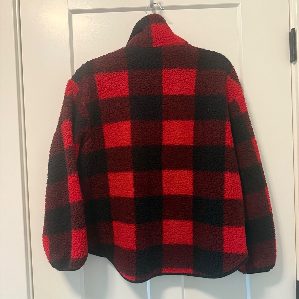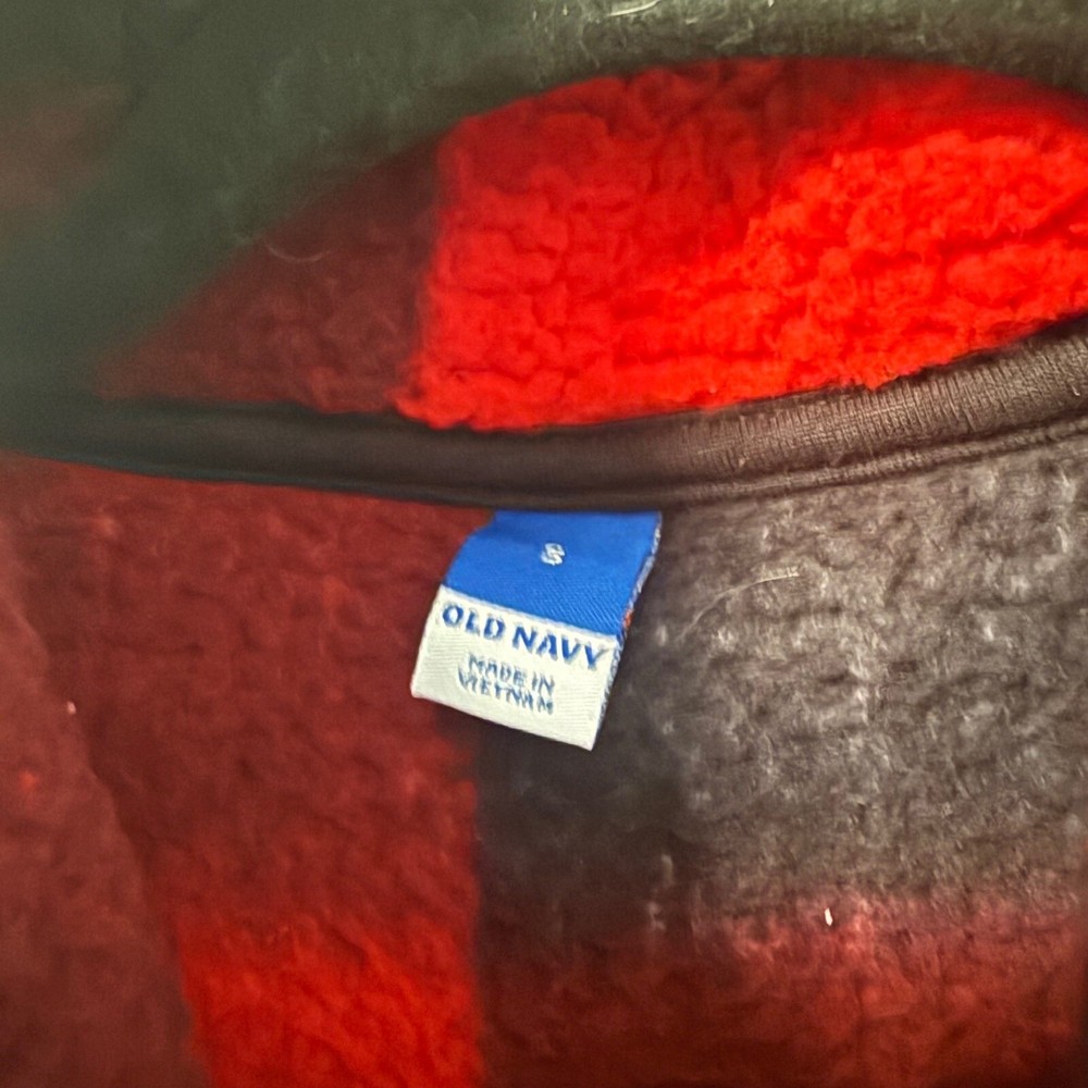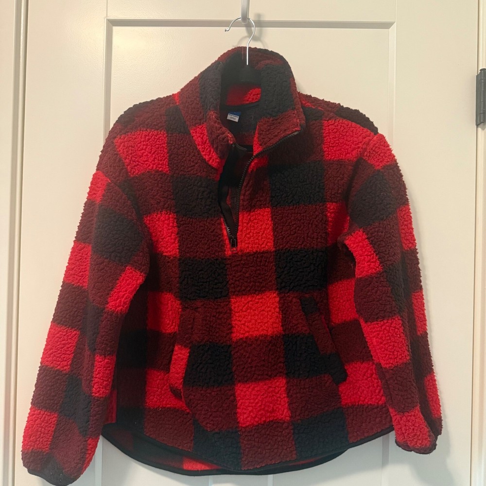 A cozy and stylish Old Navy sherpa pullover, perfect for adding a touch of warmth and flair to your wardrobe. This eye-catching piece features a classic buffalo plaid pattern in vibrant red and black, a quarter-zip neckline for adjustable comfort, and a convenient front pouch pocket. The soft sherpa material provides exceptional warmth and a plush feel, making it ideal for chilly days. This pullover is perfect for casual outings, weekend adventures, or cozy nights in. Style: Pullover Color: Red Department: Women Type: Sweatshirt Closure: Zip Features: 1/4 Zip, Pockets, Cozy, Sherpa, Buffalo Plaid Fabric Type: Fleece Material: Polyester Character Family: Cozy Style, Plaid, Buffalo Plaid Pattern: Plaid Accents: Zipper Sleeve Length: Long Sleeve Keywords: Old Navy, Sherpa Pullover, Buffalo Plaid, Quarter Zip, Jacket, Sweatshirt, Cozy, Red and Black, Small, Womens, Fleece, Casual, Warm, Winter, Autumn