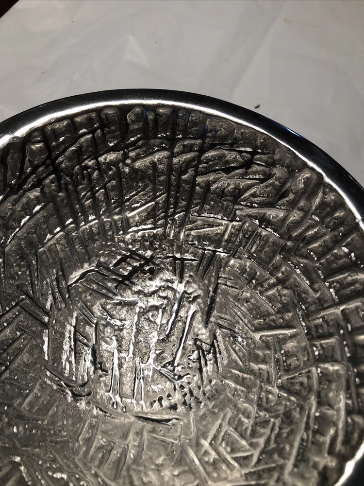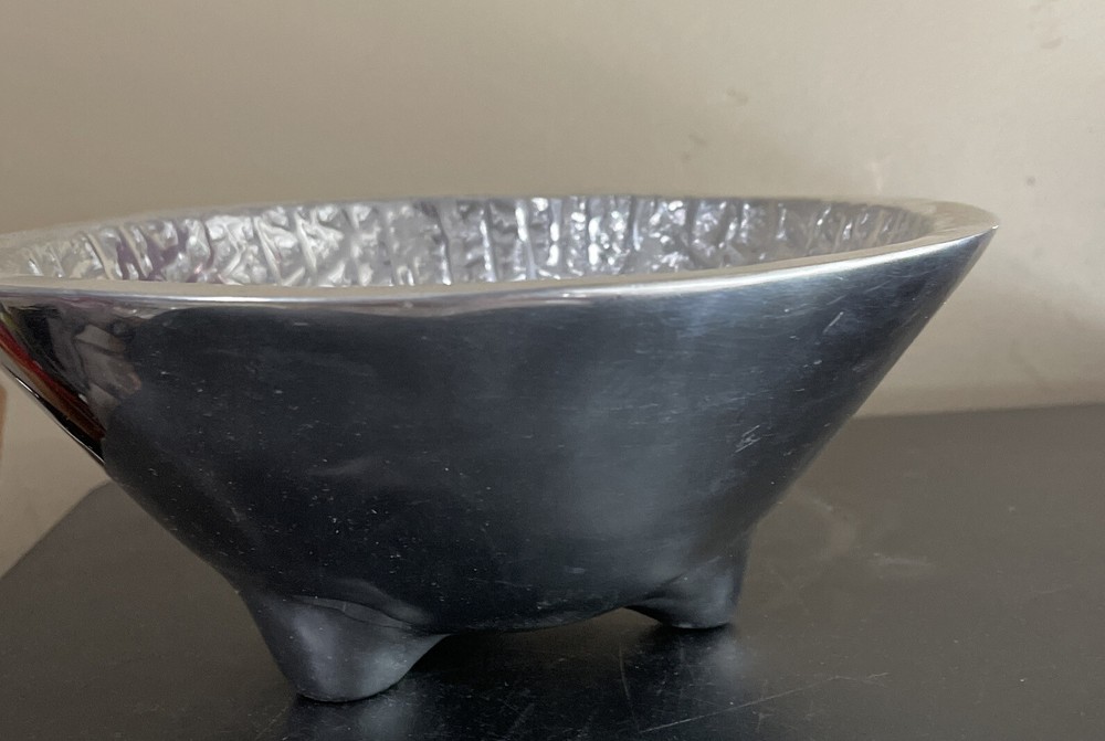 This stunning metal abstract bowl is a gorgeous statement piece! The sleek, artistic design adds a modern touch, and the condition is flawless—looks brand new despite being listed as used. The weight feels solid and high-quality, perfect for display or practical use. Shipping was fast, packed securely. Love the unique vibe it adds to my space!