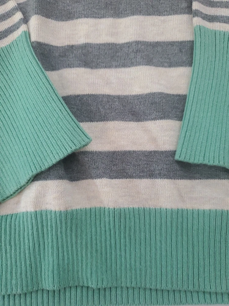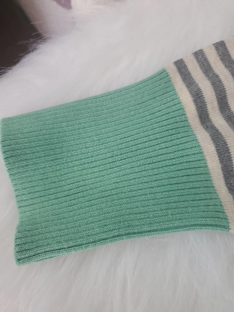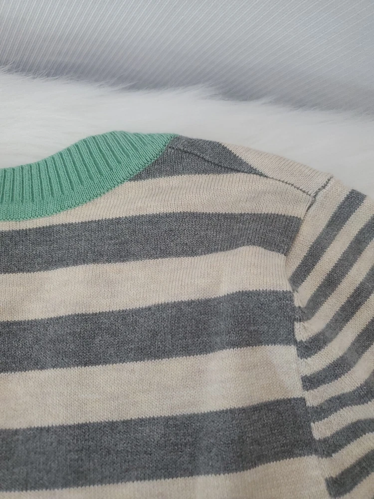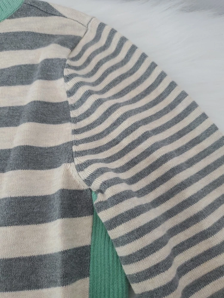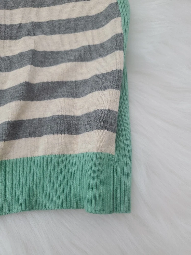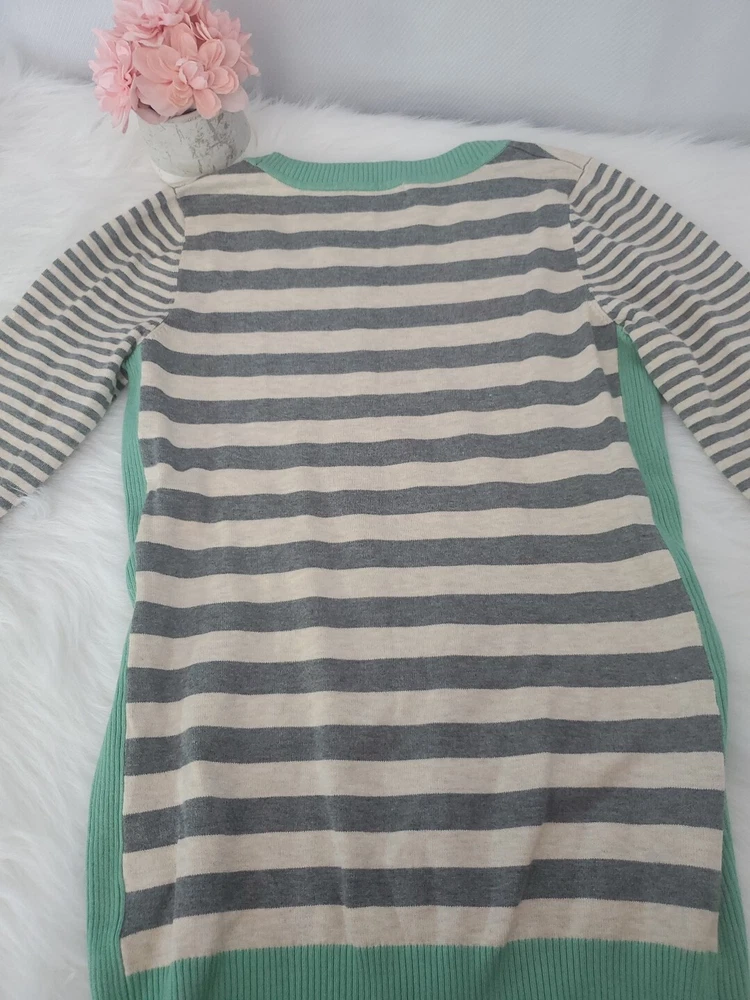 Elevate your wardrobe with this Olive+Oak sweater in size M. The tight-knit, raglan sleeve sweater features a round neckline and a gray with green stripe pattern that exudes classic and bohemian vibes. Perfect for travel, casual outings, or workwear, this sweater is made of a lightweight and breathable blend of polyester and rayon, making it suitable for all seasons. Machine washable for easy care, this pullover is a must-have addition to any fashion-forward woman's collection. Pre-owned and in excellent condition!