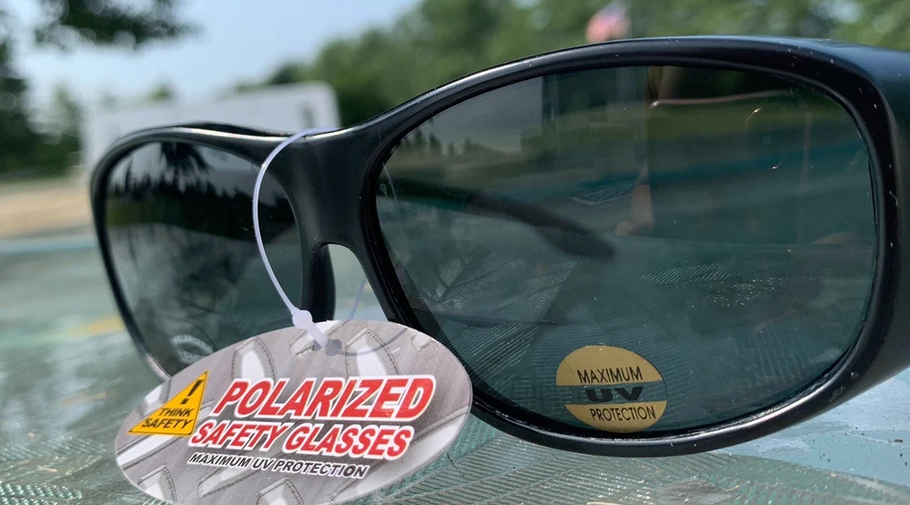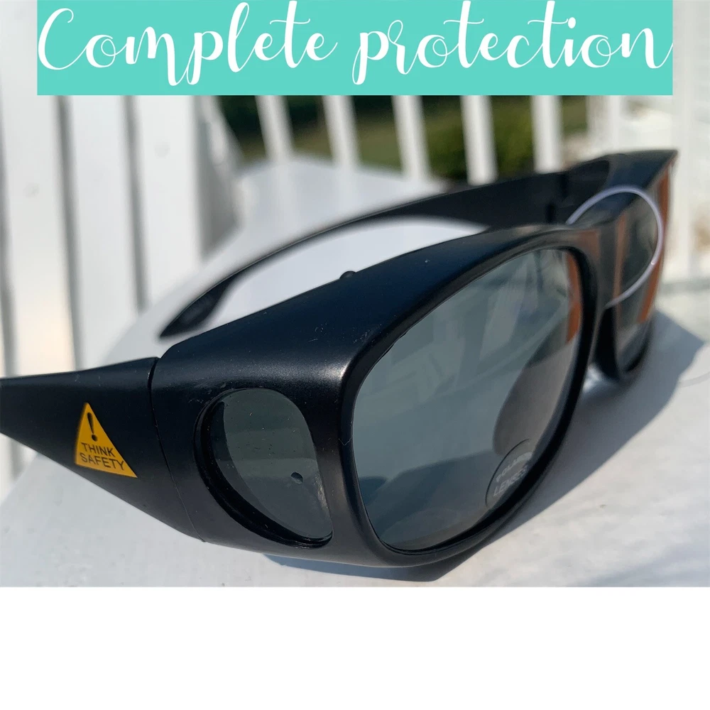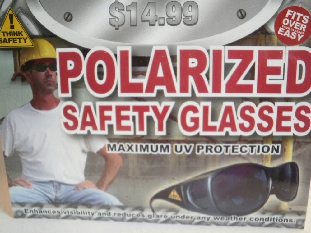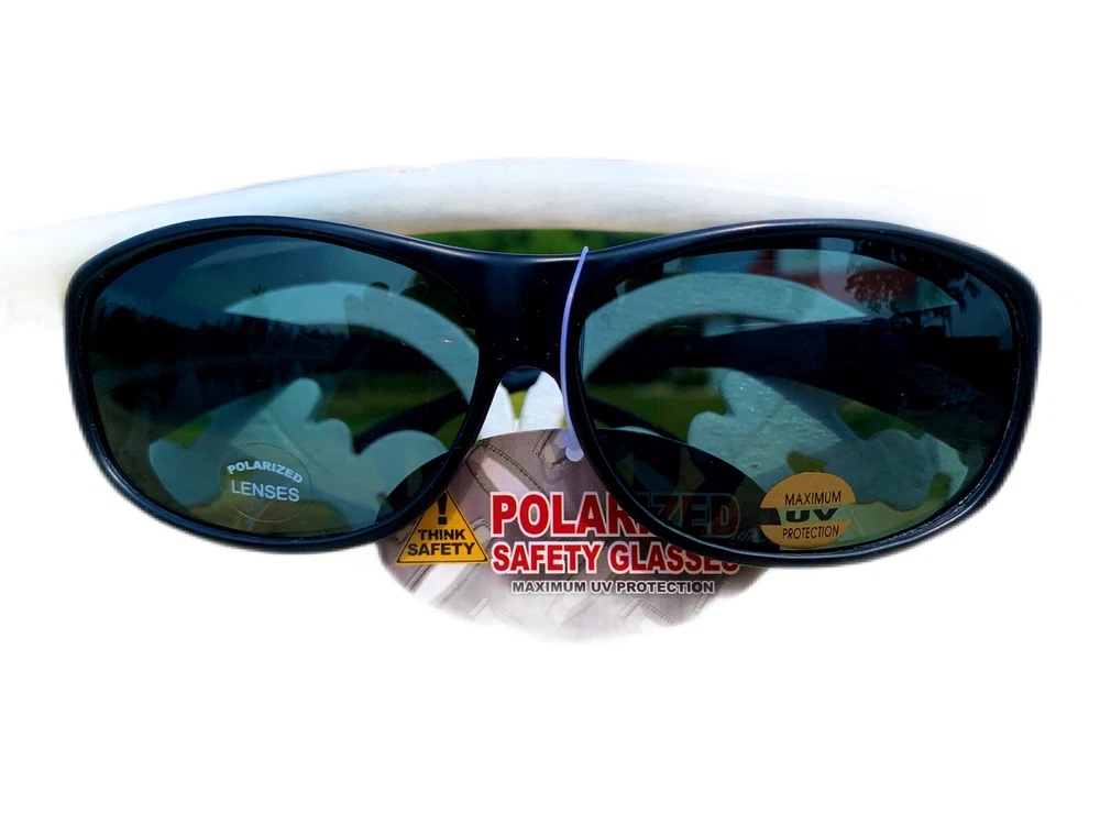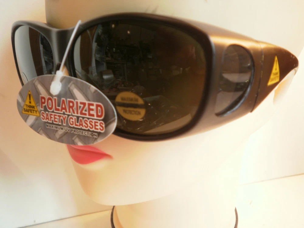 Polarized Safety Sunglasses are a perfect match for most of today's contemporary Rx frames. Temple to temple = 5 3/4 inches, wrapping around the sides for greater protection. They add comfort, superior style, and maximum protection. Fits over most prescription glasses Perfect for Man or Woman. You will receive One Pair! Brand NEW! Maximum Protection UV400 Safety Glasses Virtually Unbreakable Poly Carbonate Lenses Impact Resistance The Ultimate in Eye Protection Ask about Wholesale quantities of this style and other sunglass styles also available!