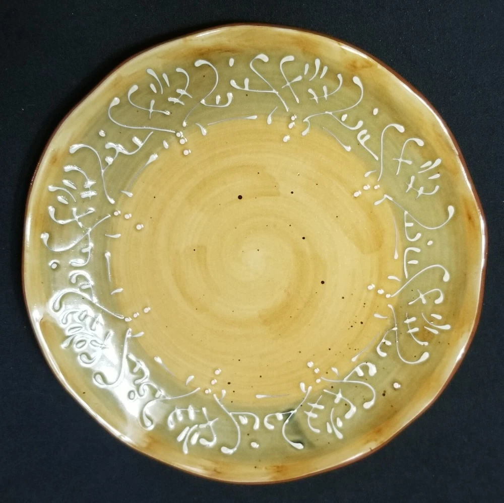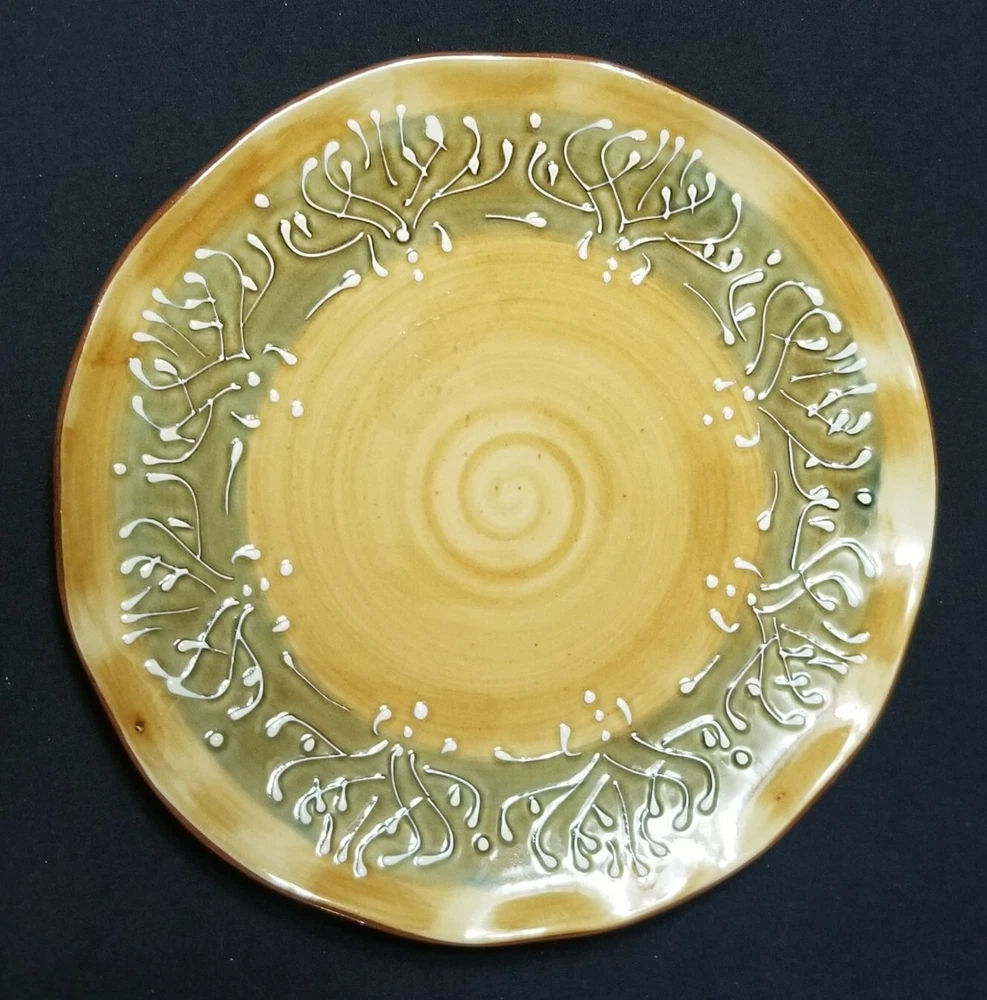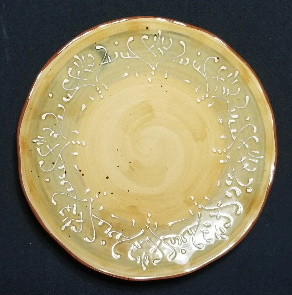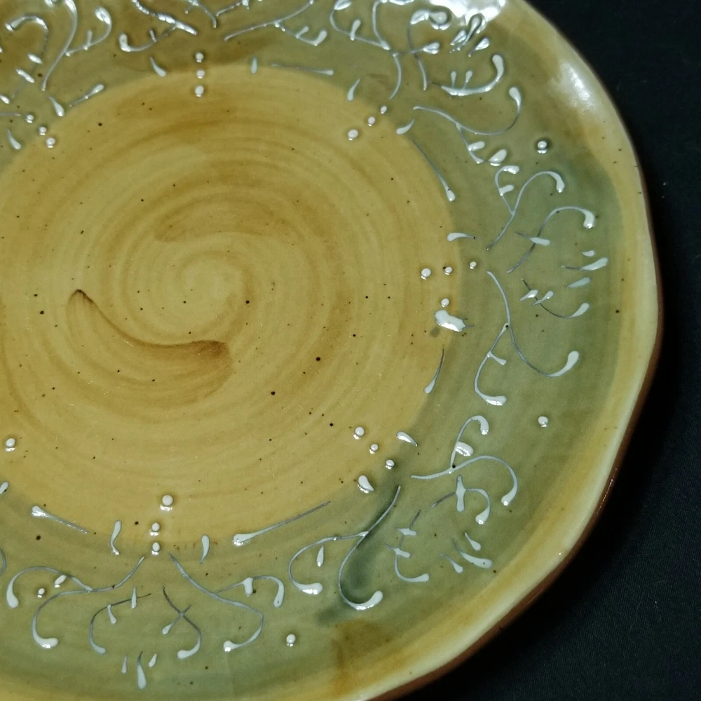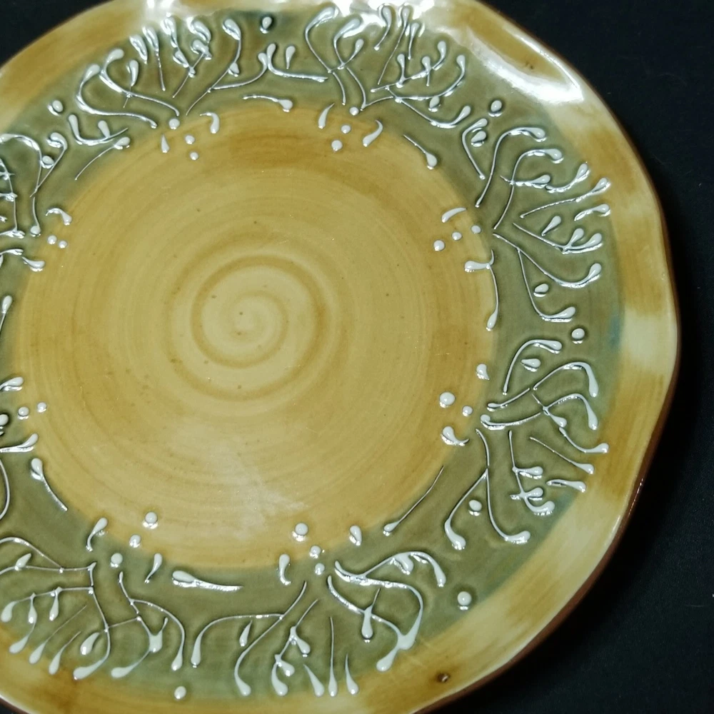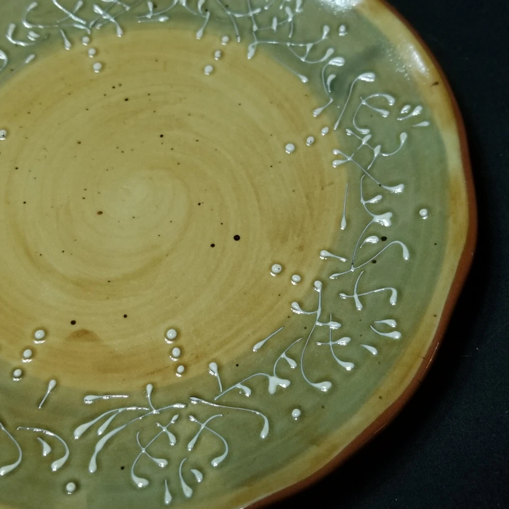 Add a touch of contemporary style to your dinnerware collection with this Pier 1 Imports Maroma Salad plate (s) Listing is for one Plate 6 available they are all in Excellent Condition no Chips or Cracks some Light Utensil Marks/Wear and Light Crazing see Photos for Detailed Description of Condition. The plates are approximately 8" in diameter they weight Approximately 1 lb. Each they feature an embossed white scroll pattern on a glossy terracotta base in amber, tan, green, and white hues. They are dishwasher and microwave safe, making them perfect for everyday use and all occasions.