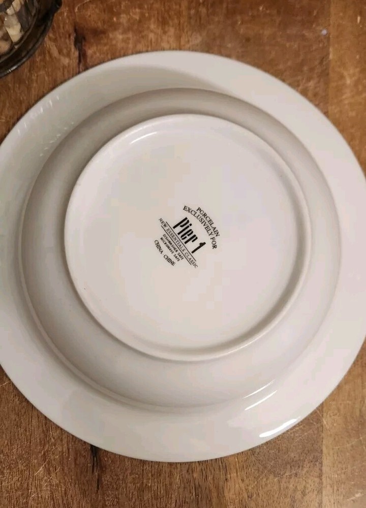 Onr Pier 1 Imports New Essentials Classic Serving Bowl 10" White EUC Excellent pre-owned condition. It looks brand new. I also have additional pieces listed in this pattern. Combined shipping is done in the form of a refund once the orders are packed. Max weight per box is approx 25lbs.