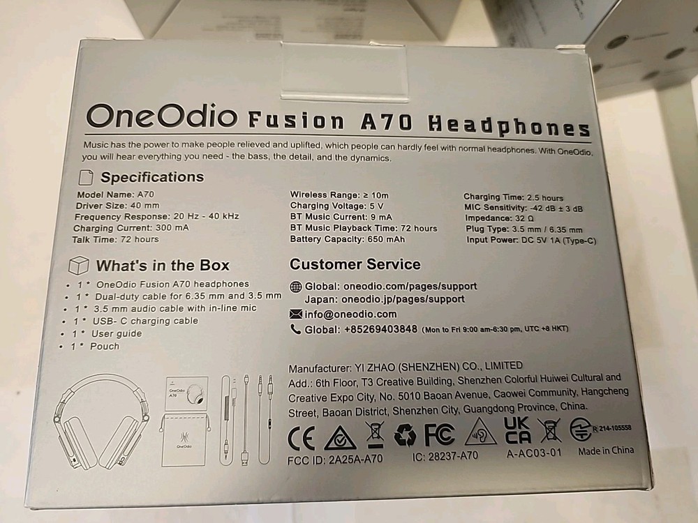 Immerse yourself in your favorite tunes with these OneOdio A70 Bluetooth over-ear headphones. With a long-lasting 72-hour playtime, you can enjoy your music all day and night without any interruptions. These headphones are designed with a foldable feature, making them easy to store and transport. Connect your headphones to your device wirelessly with Bluetooth technology or use the 3.5mm jack for a wired connection. These headphones are perfect for music lovers who are always on the go. Get your hands on these stylish black headphones today and experience high-quality sound wherever you are.