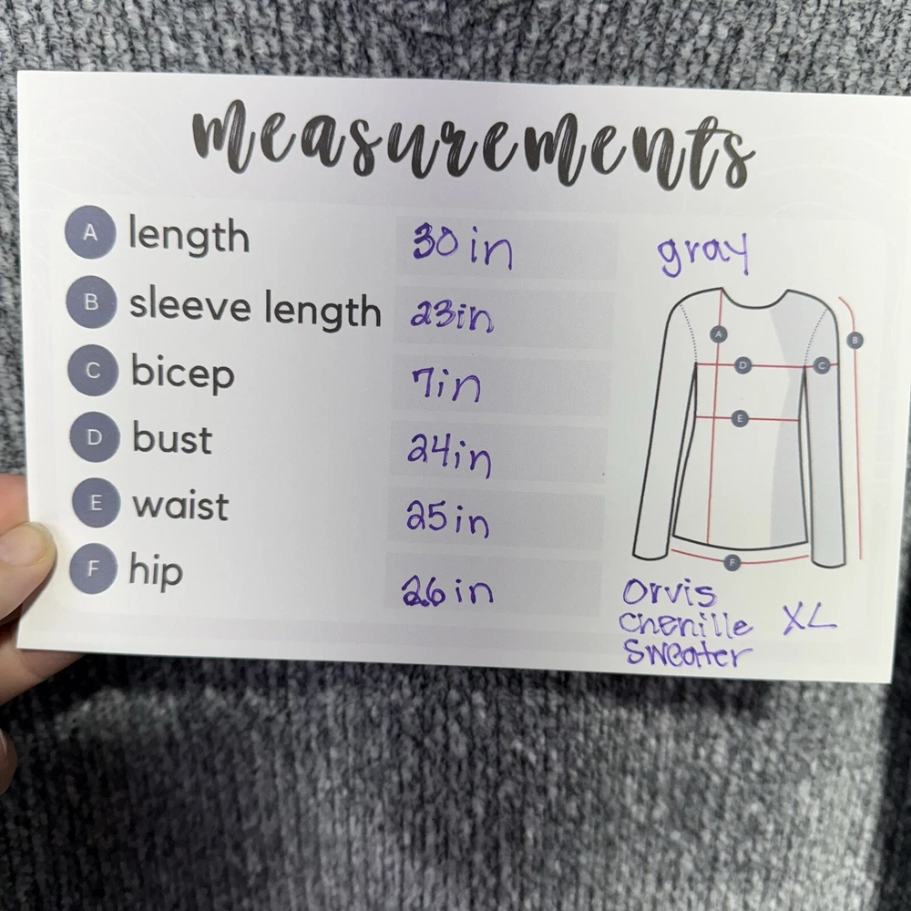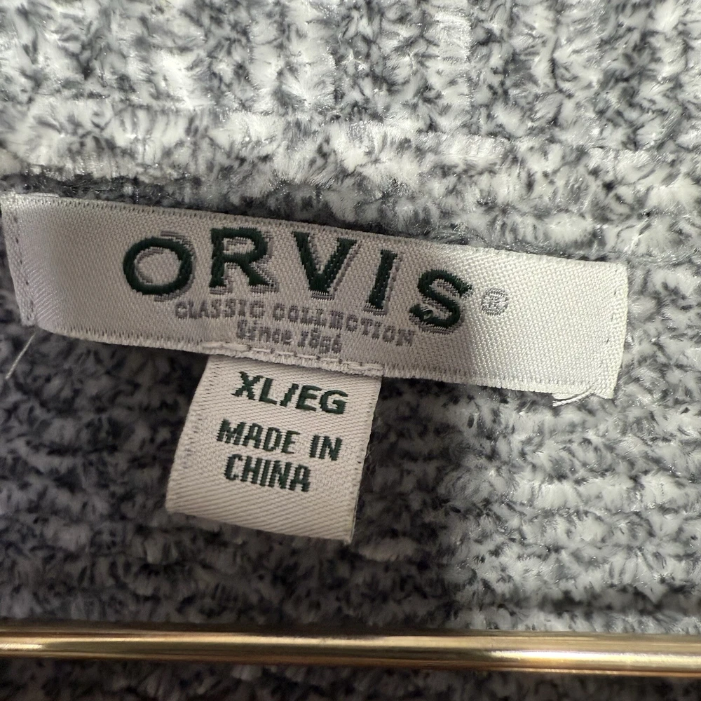 This Orvis chenille sweater is the perfect cozy addition to any wardrobe. Made from soft, high-quality chenille, this sweater is both stylish and comfortable. Its relaxed fit and classic design make it ideal for layering over shirts or under jackets. Great for casual wear, this sweater will keep you warm on chilly days while adding a touch of elegance to your outfit. Item Details: • Brand: Orvis • Size: Extra Large (XL) • Color: Gray • Material: 100% Polyester • Style: Chenille Knit Sweater with V-Neck • Condition: Excellent pre-owned condition Measurements (approximate): • Length: 30 inches • Sleeve Length: 23 inches • Bicep: 7 inches • Bust: 24 inches • Waist: 25 inches • Hip: 26 inches Features: • Soft and plush chenille knit for added warmth and comfort • Classic V-neckline, perfect for layering • Ribbed cuffs and hem for a cozy fit • Versatile gray color pairs well with various outfits Care Instructions: • Machine wash cold on a gentle cycle • Turn garment inside out before washing and drying • Wash with similar colors • Use non-chlorine bleach when needed • Lay flat to dry and reshape • Low iron when needed; dry clean optional