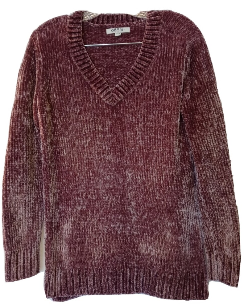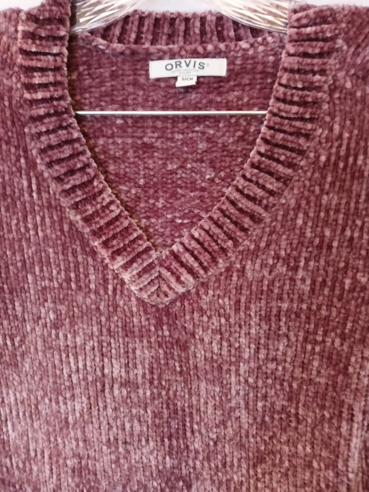 Up for sale is a soft and cozy Orvis Sweater in women's size Small. Misty Mauve Soft chenille Knit Pullover. The bust measures 38-40" inches / Length is 29" inches Shipped speedy fast from my clean smoke free home! Gently pre-owned in very nice condition.