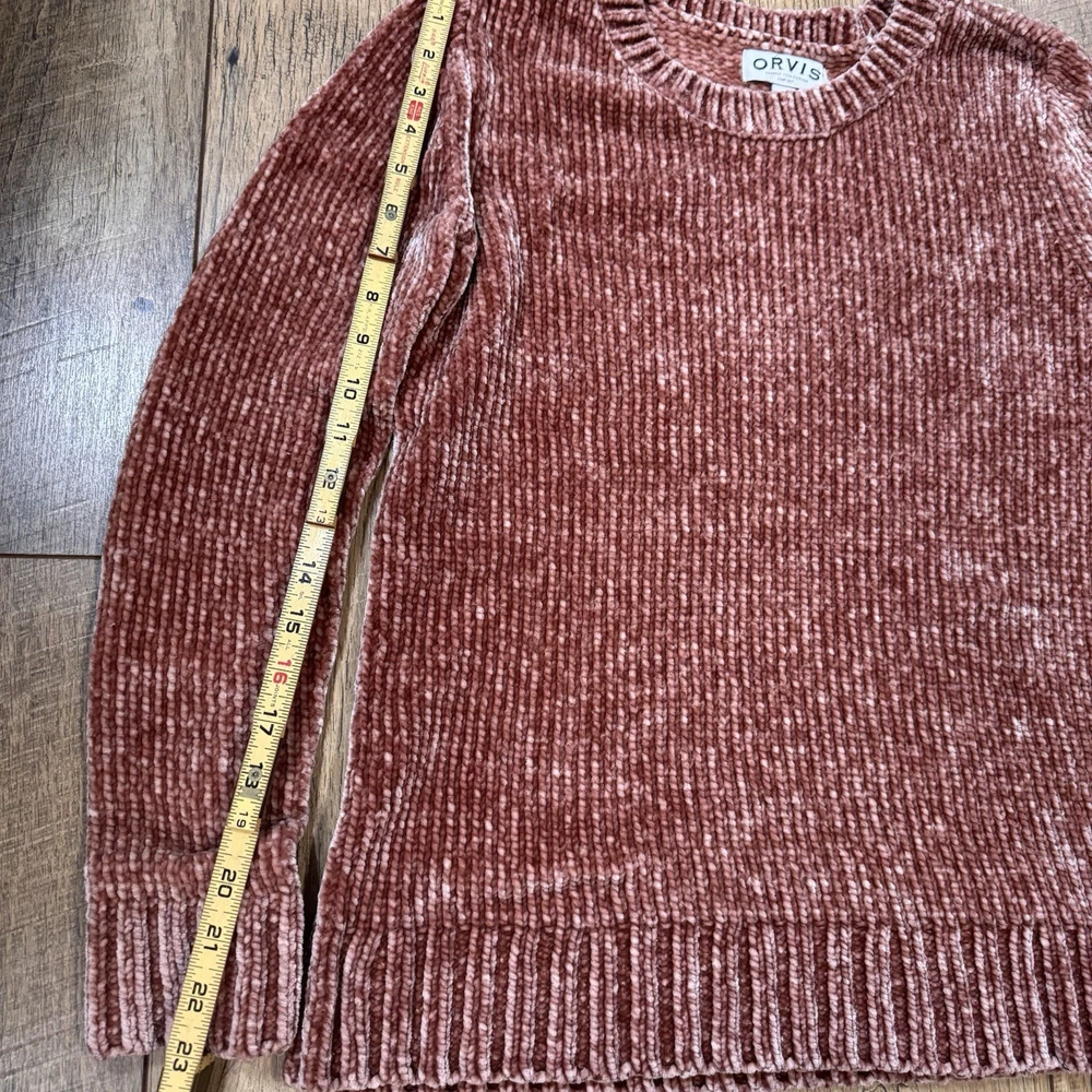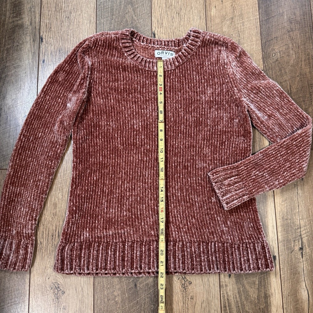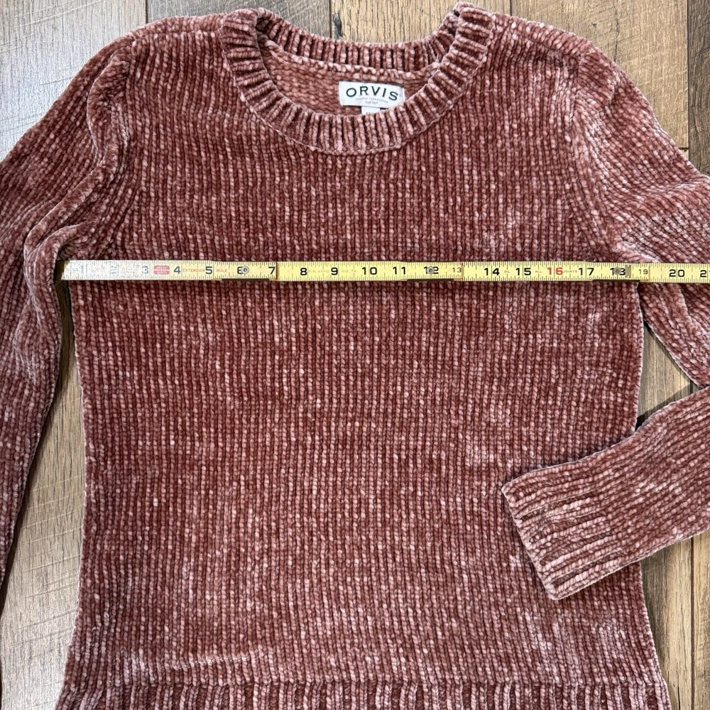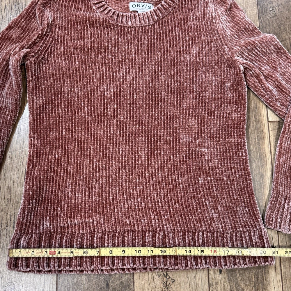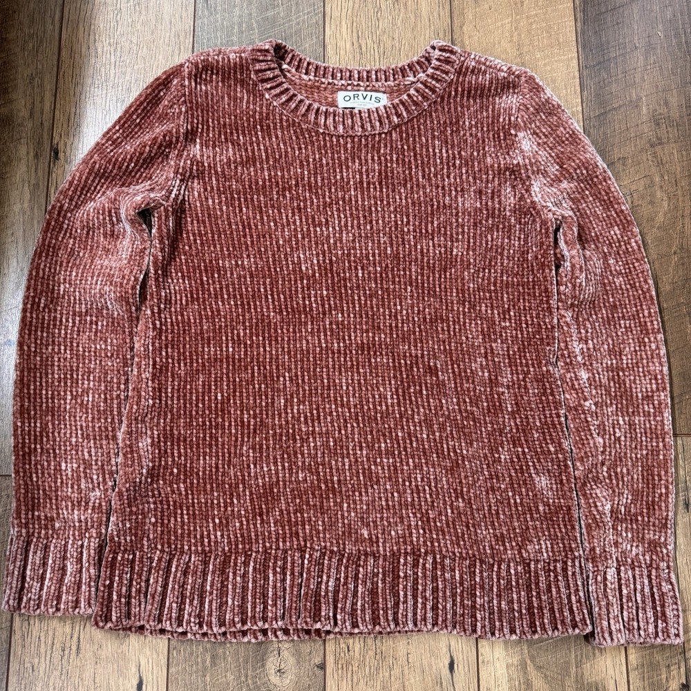 Wrap yourself in the epitome of comfort with this Orvis Chenille Pullover Sweater. Its dusty pink hue offers a subtle pop of color, while the chunky-knit design ensures a cozy feel perfect for cooler weather. A round neck and long sleeves make it an ideal choice for casual outings or relaxed evenings at home. Crafted from high-quality polyester, this heavyweight sweater promises durability alongside its soft, plush texture. Machine washable for easy care, it's a practical addition to any wardrobe. The sweater fits true to size, ensuring a regular fit for those who prefer their clothing to be both comfortable and stylish. Please see the detailed measurements in the photos. Thank you for looking!