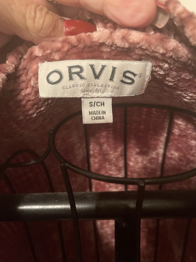 Soft soft soft and cozy comfort! Orvis size small with long sleeves pull over sweater. The length is 25 inches and the width arm pit to arm pit is 21 inches. It’s machine washable and from a nonsmoking home. Cozy on in! The sweater in the pictures is the one I will mail.