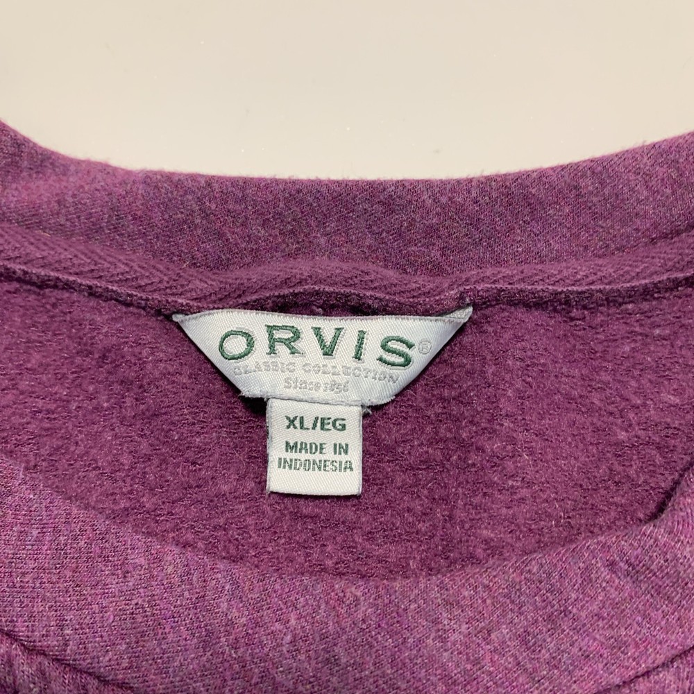 This Orvis women's sweatshirt is the perfect addition to your activewear collection. The long sleeve crewneck pullover design provides both comfort and style. The purple color adds a pop of color to your wardrobe. The XL size is perfect for a regular fit. Made by Orvis, a trusted brand in the clothing industry, this sweatshirt is sure to be a favorite. The boxy oversize fit is perfect for a relaxed yet stylish look. Ideal for any occasion, this sweatshirt is a must-have for any woman's wardrobe.