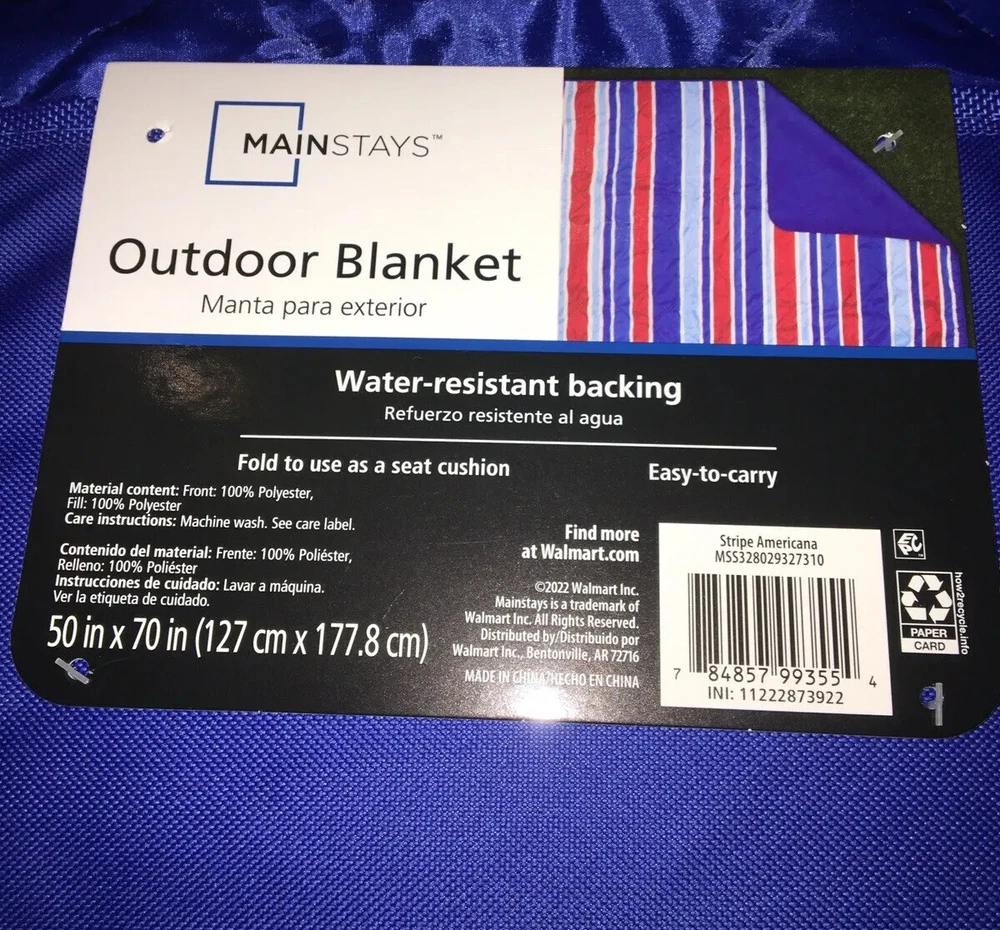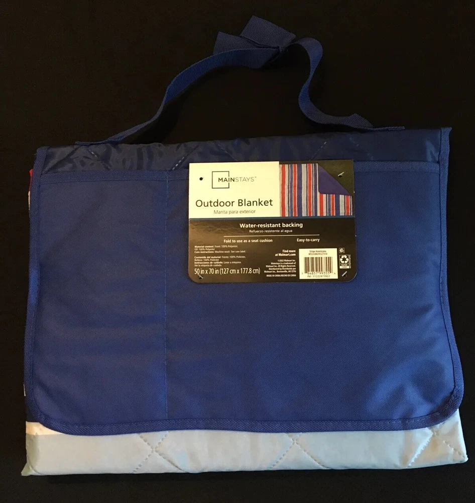 Mainstays Outdoor Blanket 50” x 70” Picnic Beach Lawn Sports Red White Blue NEW. ***Check Out Our Other Auctions And Store Merchandise at The Chain Breaker’s Storehouse - Right Here On Ebay! (Bickler33) *PLEASE NOTE: IF YOU ARE BUYING MULTIPLE ITEMS WE WILL GLADLY COMBINE SHIPPING. Buy more than 5 items and get free shipping. Add all items to cart and ask for an invoice, or we can just refund the overage at your request, or you can request a special listing with all items, and we can have it up quickly. If you know of a better way, just let us know. Just shoot us a message if you have any questions and we are happy to help. Thank you. * Brand New * Ships Fast * Great Value! Get it here today! **Item details, description, and reviews (If any are available) can be found below. Check out our reviews and buy with confidence. Stop by and see our wide variety of other cool and useful products, at unbelievable prices, here 👇: www.ebay.com/str/thechainbreakersstorehouse or Just click the “seller’s other items” tab, under our profile name, at the bottom of this listing or Tap on “Visit Store” on the side of the listing page. Thanks for stopping by and God Bless ——————————————————————————————————————————- DESCRIPTION 👇: Product details: Mainstays Outdoor Blanket Americana Stripe Easily portable with convnient travel strap Water resistant for easy outdoor use Machine washable Folds easily for convenient storage Specifications: Brand: Mainstays Color: Americana Stripe Manufacturer Part Number: MSS328029327310 Size: 50" x 70" Directions: Fabric Care Instructions: Machine wash as indicated on label. Warranty: Warranty information None ————————————————————————————————————- REVIEWS 👇: Customer reviews: 5 out of 5 stars review 2/26/2023 Functional, fashionable, a staple for any picnic! An essential for any picnic! I'm the kind of person that loves the small extra things that make a product more functional. This blanket is waterproof on one side, protecting you from mud or dew. It's good quality, protecting you better than an average blanket. Vicki 5 out of 5 stars review 2/26/2023 Functional, fashionable, a staple for any picnic! An essential for any picnic! I'm the kind of person that loves the small extra things that make a product more functional. This blanket is waterproof on one side, protecting you from mud or dew. It's good quality, protecting you better than an average blanket from sticks and leaves. The pattern on this one screams “Independence Day”, which as a military family, is especially loved. My favorite thing is that it folds up well, leaving you pockets for picnic items and a carrying strap! Use it as a picnic blanket or a tablecloth at the playground! Functional, fashionable, a staple for someone who loves picnicing! Miriamelizabeth 5 out of 5 stars review 2/27/2023 Pretty and useful! I am in love with my new Outdoor Blanket: it is made of excellent quality materials, lightweight, 100% water resistant (have try it during a picnic at the park and a family trip to the beach, over the sand), and also as a seat cushion while folded. I love the size and colors! I absolutely recommend it to everyone. Tamcorso 5 out of 5 stars review 3/5/2023 I love these blankets These blankets are so awesome. It's super colorful which screams summer and outdoors to me. The water resistant backing is perfect for taking beach which is mostly what I use it for. Also great for a picnic at the park. Big enough for myself and my 2 kids with snacks or my self, hubby and kids if we are closer together. It has a strap to fold it back into and when folded can also be used as a seat cushion. The flap part has 2 pockets for holding small items while in use. Great value! Southerngal 5 out of 5 stars review 2/27/2023 Perfect blanket Not all towels are made equal and for this, I am obsessed with my Mainstays Beach Blanket TIEDYE. I found it to be soft, cozy, comfortable, and well-made with 100% polyester. This is perfect to hold two persons at the poolside, the beach, or even the park enjoying the warm sun while having family time. I love the color tone and the easy maintenance of it but what I love the most about this towel is its water-resistant backing, fold to use as a seat, easy to carry, and comes with pockets to store rags or more. I will be recommending it. Juste 5 out of 5 stars review Verified Purchaser 7/6/2023 Worth it I love how cute it looks very easy to find when u get back from the water . Good quality , thick material . Didn't fly off w the wind , easy to carry. Patricia 5 out of 5 stars review 3/24/2023 Lightweight, water resistant beach blanket This is honestly great for the beach or even for a tent. The sand easily shakes off, and it is very conveniently stored. I love that you can wear the material and it was just a slight off so it it's essentially really easy to clean. I am obsessed with this mainstay beach blanket. Super lightweight and 100% water resistant, definitely recommend! Lena 5 out of 5 stars review 3/24/2023 I love the bold, colorful tie dye pattern. This beautiful, water proof balnket is great for picnics at park and hanging out at the beach. I love how it folds down into a small rectangle with a carry strap. Just toss it into the washer, then gentle cycle in the dryer and fold down for easy storage. MotherOfTwo 4 out of 5 stars review 3/3/2023 Comfortable Since I live on the coast, I think of this as a beach blanket first and then as a general outdoor blanket. I will start by going over the positives of this outdoor blanket. I like the size and color of it. You can lay all the way out easily on the cute patchwork, either with another adult or a couple of small kids. I like how it folds and tucks away easily and you can hold it by the handle, instead of having to tuck it under your arm or something. You can