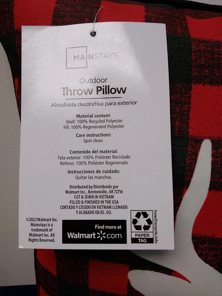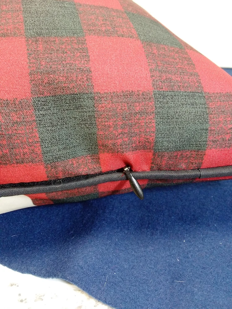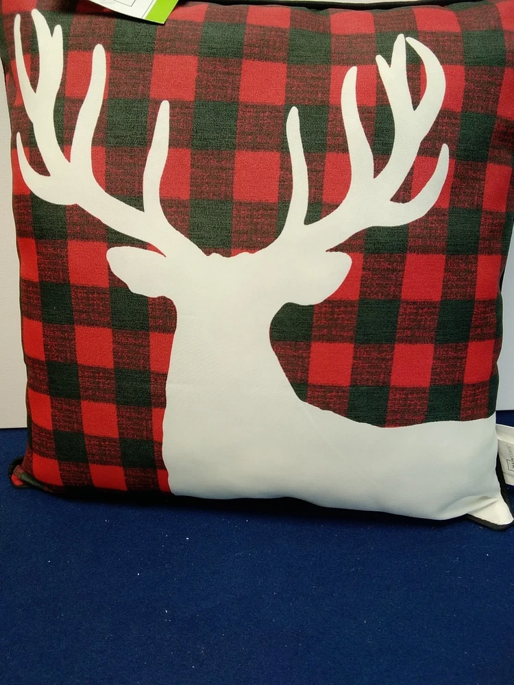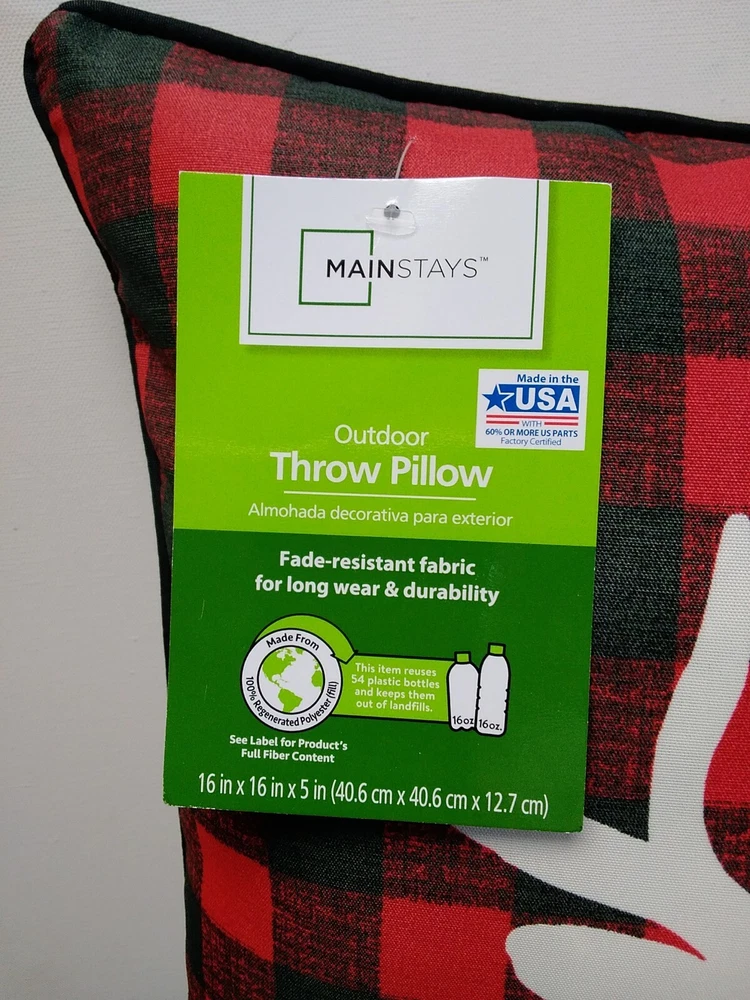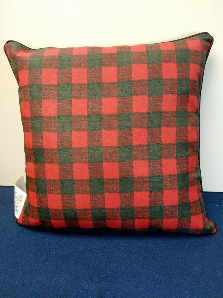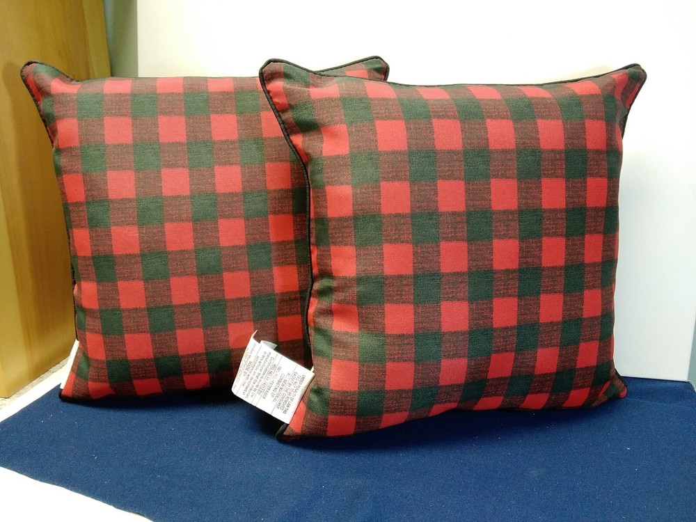 New Outdoor Throw Pillows Red/Black Checker with Deer 16X16 Set Of 2 * 100% Polyester * Fade Resistant Fabric * Surface Wash Only * Back Side Red/Black Checker * Black Trim