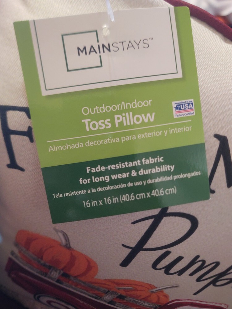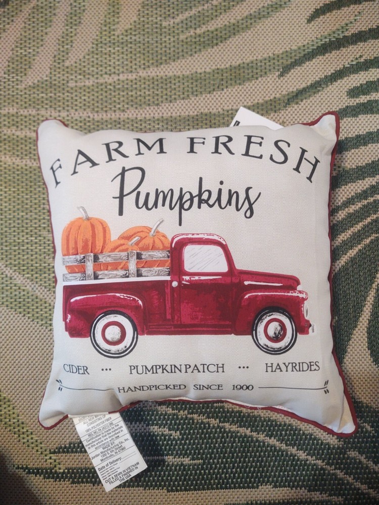Outdoor Toss Pillows Ivory Farm Fresh Pumpkins/Checkered 16X16X5 Inches Set Of 2....
