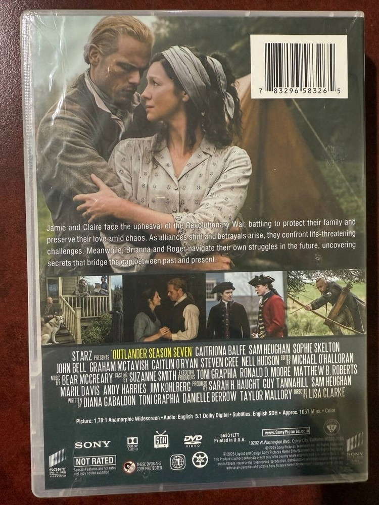Absolutely love this box set! The drama, romance, and adventure are as gripping as ever, and having both parts of Season 7 in one collection is perfect for binge-watching. The discs play flawlessly, and the packaging is sturdy and well-designed. Fast shipping from a reliable seller who clearly cares about customer satisfactionβhighly recommend for any Outlander fan!
