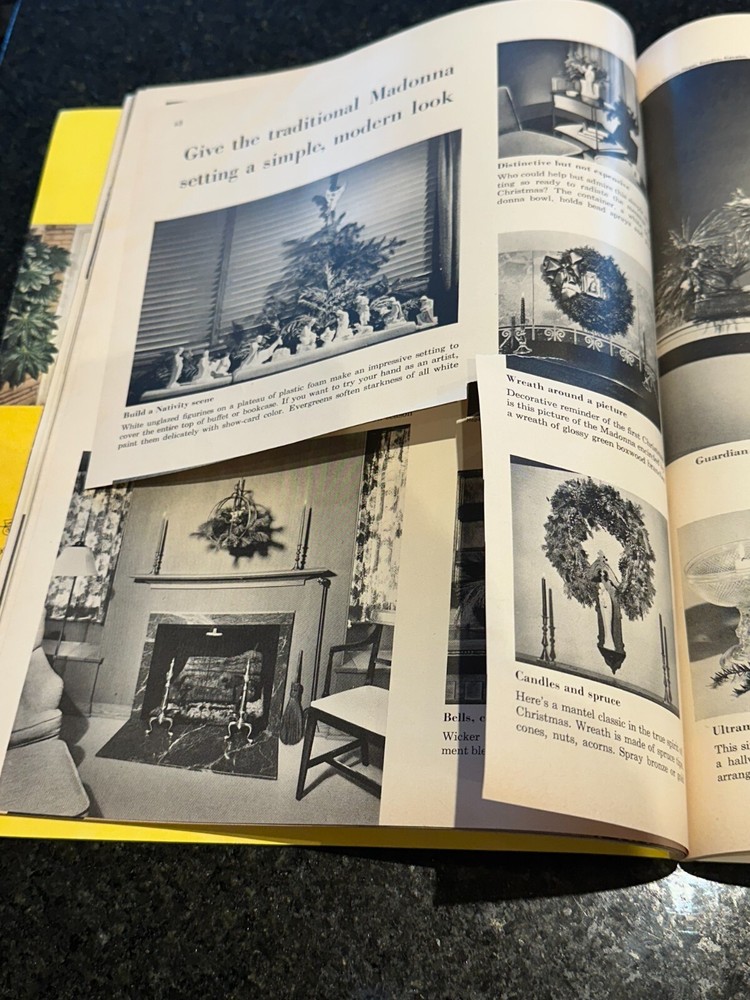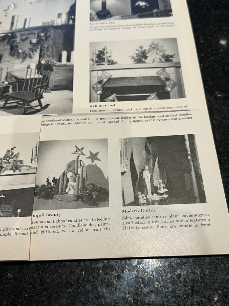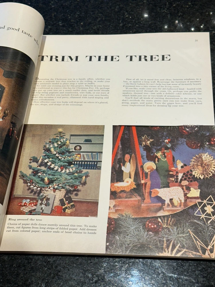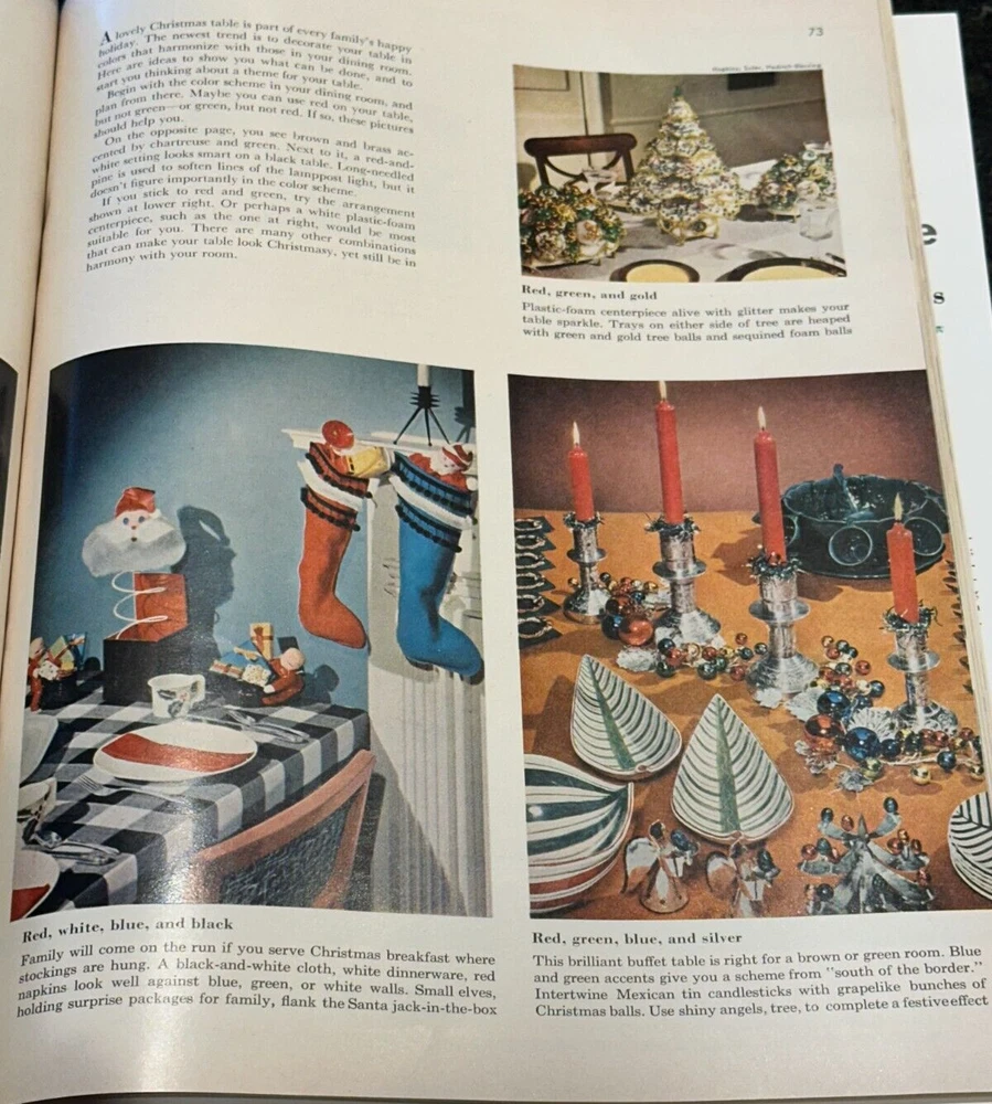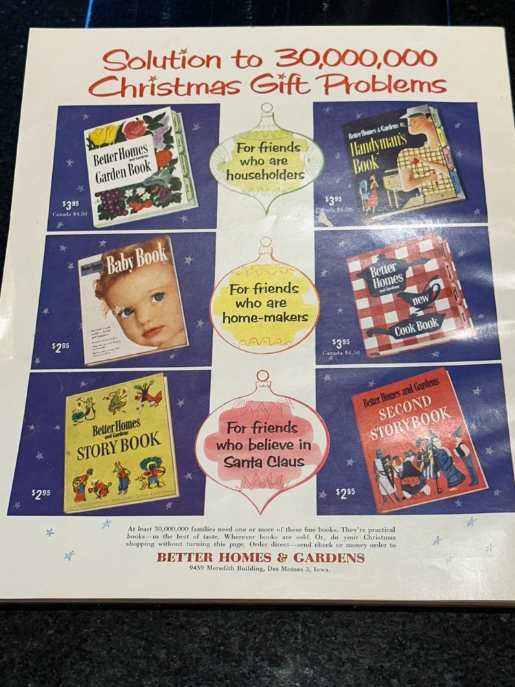 1954 Christmas Ideas magazine from Better Homes and Gardens. LARGE (10" x 13") 154-page guide to all things Christmas ... table settings, recipes (some quite disgusting), decor ideas. Fun Harold Gale Santa on the cover. There are no ads, except for the back cover which encourages you to buy BH&G books for Christmas. Very good condition, great walk into the MCM era! There are a number of pages where the top corner has been folded over, a few ink marks, and one page where the previous owner cut out a photo. Please see all pix. I am also listing the 1953 version - happy to combine shipping. Thank you!