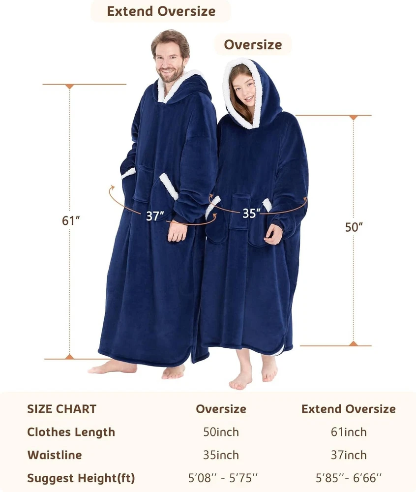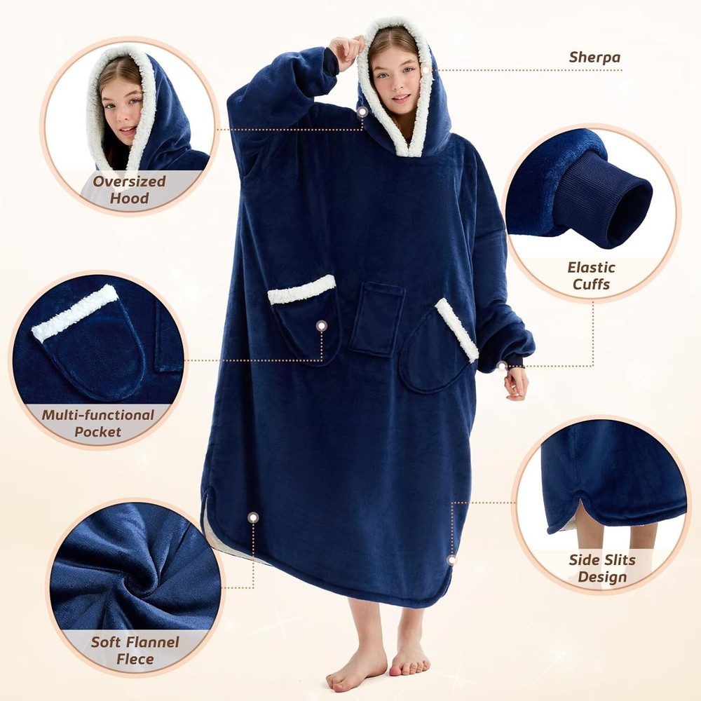 Oversized Sherpa Fleece Wearable Blanket Hoodie for Ultimate Comfort - Navy Blue < class="slides"> ‹ › ‹ › ‹ › ‹ › ‹ › ‹ › ‹ › ‹ › ‹ › Oversized Sherpa Fleece Wearable Blanket Hoodie Color: Navy Blue Material: 100% Polyester Imported Experience Ultimate Comfort Our Oversized Sherpa Fleece Wearable Blanket Hoodie offers unrivaled warmth and plush comfort for those chilly winter days. Crafted from a combination of soft, warm 220 GSM flannel and 200 GSM sherpa fabric, this hoodie is designed to cocoon you in softness and warmth. Ideal for cozy mornings, lazy afternoons, or chilly nights. Exceptional Design Extra Long Length: At 48 inches long, this blanket hoodie covers you from head to toe without dragging on the ground, providing warmth without the risk of tripping. Freedom of Movement: With a generous 36-inch width and comfortable sleeves with cinched cuffs, enjoy unrestricted movement for any activity. Upgraded Durability: Enhanced stitching technology ensures your hoodie maintains its shape and integrity, even after multiple washes. Designed to fit all body types, from tall to short, slim to plus-sized. Versatile Usability This wearable blanket hoodie is perfect for various scenarios: Cozy up at night to wake up feeling refreshed. Wrap up post-shower to fend off the chill. Stay warm while working, cooking, or relaxing at home. Ideal for outdoor activities like shopping, walking the dog, or camping, it shields you from cold winds. The Perfect Gift Searching for a thoughtful gift? Look no further! This warm and cozy sweatshirt blanket hoodie is the ideal present for friends, family, or anyone who appreciates comfort during winter . Delight your loved ones on occasions like: Christmas Thanksgiving Mother's Day Valentine's Day It’s a wonderful gift idea that everyone will cherish! Shipping Free & Fast Shipping - We offer free shipping to most of the USA with a normal delivery time of 3-7 days. However, due to the current situation, additional delivery time (up to 3 weeks) may be required for some items. Alternative Carriers - We may use alternative carriers (e.g. USPS, FedEx, UPS, etc.) to ensure your package arrives safely and on time. Due to the use of multiple carriers, we are unable to provide a tracking number automatically. Handling Time - Orders are processed and shipped within 1-2 business days of receiving cleared payment. Shipping Restrictions - Shipping to Alaska, Hawaii, Puerto Rico, Guam, and other US territories may incur shipping charges or delivery restrictions. Please contact us before ordering, or your order can be refunded/cancelled. State Restrictions - There may be restrictions based on your state of purchase. For example, certain items may not be shipped to California due to state regulations. Contact for Tracking Updates - If you require tracking updates or have any concerns about the delivery of your order, please feel free to contact us, and we will be happy to assist you. Return 30-Day Hassle-Free Returns - We want you to be completely satisfied with your purchase. If you are not, you can return the item within 30 days of receiving it for a full refund or exchange. Easy Return Process - To start a return, simply contact us and we will provide you with a prepaid return shipping label and detailed instructions. Restocking Fee - There are no restocking fees for returns. However, the buyer is responsible for return shipping costs if the return is not due to a seller's error. Refund Processing Time - Refunds will be processed within 5 business days of receiving the returned item in its condition. Payment We accept all major credit cards, PayPal, and Apple Pay for your convenience. Your payment information is secure and encrypted to ensure a safe and seamless transaction. Please complete your payment within 3 days of purchase to avoid any delays in shipping. Feedback Your feedback is extremely important to us. We strive to provide the best products and customer service possible. If you are satisfied with your purchase, please take a moment to leave us a positive review. If you have any concerns or issues with your order, please contact us before leaving negative feedback. We are committed to resolving any problems and ensuring your satisfaction. Contact Us If you have any questions or concerns, please feel free to out to our customer support team. You can contact us through the eBay messaging system. We are available Monday to Friday, 9:00 am to 5:00 pm EST, and we will do our best to respond to your inquiry within 24 hours. Buy it now and enjoy a pleasant shopping experience! Unit Quantity: 3.5 Material: Flannel,Sherpa Fleece,100% Polyester Features: Machine Washable,Oversized,Hooded,Giant Pocket,Long Length,Cinched Cuffs,Comfortable,Warm,Soft Touch,Easy-Care Care Instructions: Machine Wash Department: Adults,Unisex Adult Room: Bedroom,Living Room Size: Standard Type: Wearable Blanket Color: Navy Blue Style: Modern Shape: Rectangular Insulation: Warm Closure Type: No Closure GSM (Grams per Square Meter): 201-400 Thread Count: 200 or Less Unit Type: lb