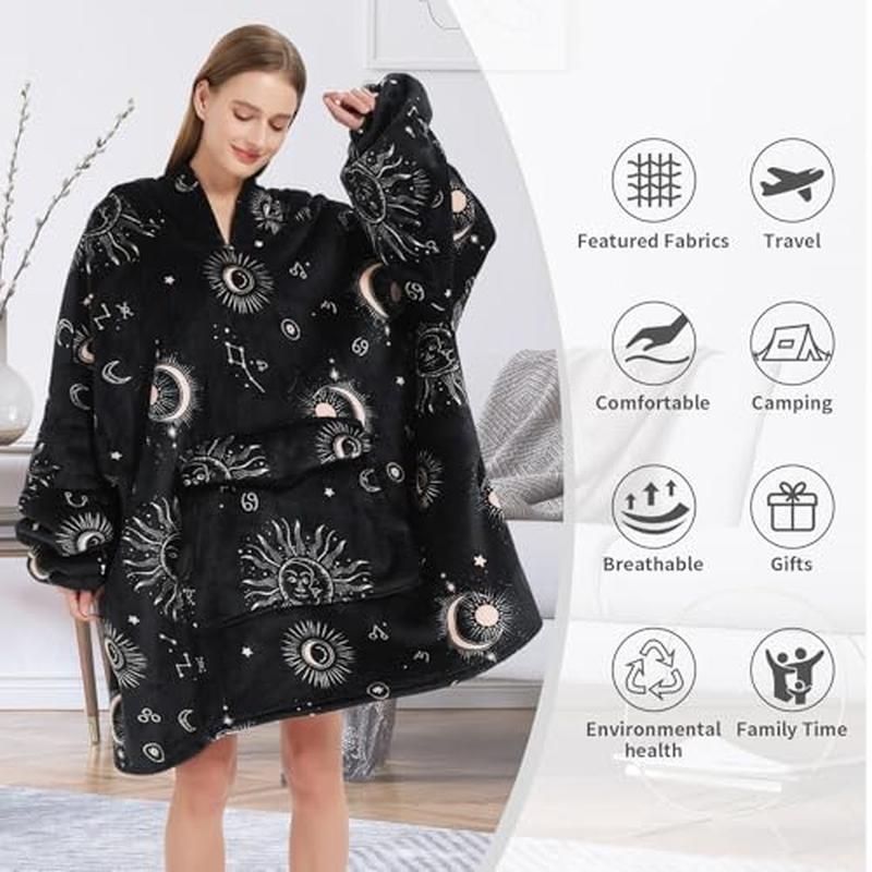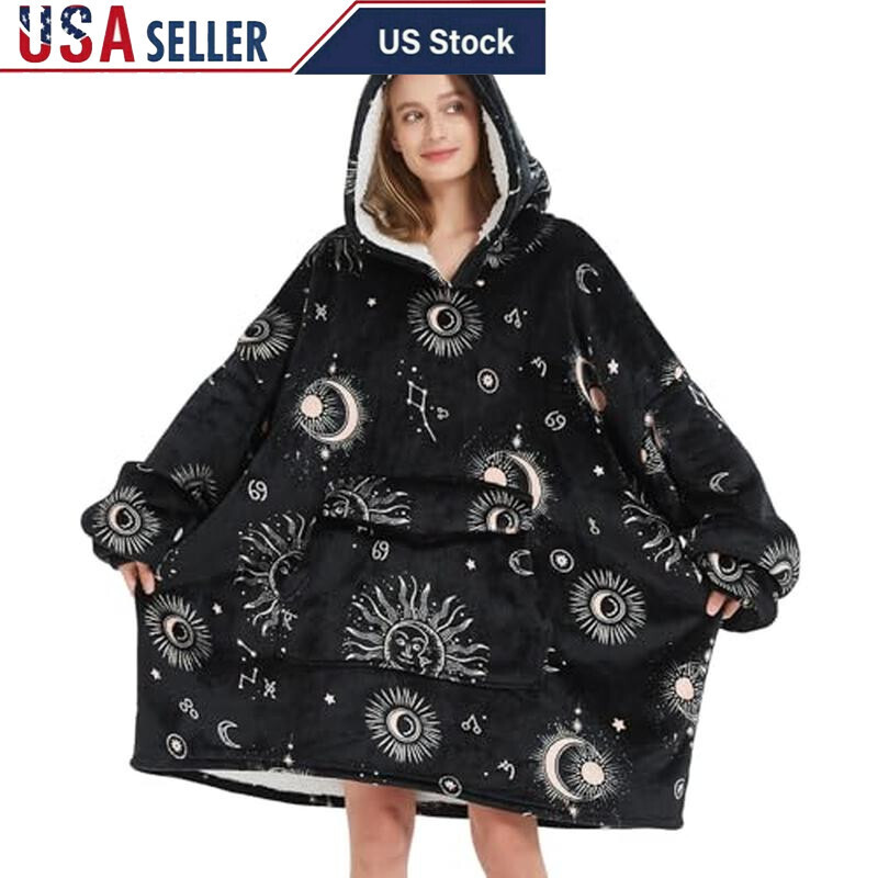 You may also like Clear Shoe Storage Boxes XXL Stackable Organizer 12 Pack For Size 14 Sneakers 70.39 USD 74.09 USD Free shipping 5% off Extra Wide Walk Through Pet Gate W/ Small Pet Door Pet Dog Kids Fence Indoor 46.92 USD 49.39 USD Free shipping 5% off Wet Dry Vacuum Hose 1-1/4 inch x 6 ft Replacement Twist Lock Accessories New 29.27 USD 30.81 USD Free shipping 5% off Food Dehydrator 600W Adjustable Temp Expandable 12 Trays Accessories Included US 108.68 USD 114.4 USD Free shipping 5% off 25FT Outdoor String Lights Patio 10+1 LED Dimmable Waterproof ST38 Black Bulbs 23.54 USD 24.78 USD Free shipping 5% off Bamboo Toilet Paper 24 Rolls Organic 3-Ply Septic Safe Eco-Friendly Plastic Free 67.92 USD 71.49 USD Free shipping 5% off 2 Gallon Glass Aquarium Self Cleaning LED Lights Betta Guppy Ideal Gift New 49.39 USD 51.99 USD Free shipping 5% off Adjustable Height Aluminum Camping Table Portable Folding Dining Table 3Ft New 72.84 USD 76.67 USD Free shipping 5% off Rust-Resistant Adjustable Shower Caddy W/ 4 Shelves & Hooks Bath Essentials New 45.92 USD 48.34 USD Free shipping 5% off 4-Tier Rolling Cart W/ Hanging Buckets Metal Frame Utility Storage Solution New 49.39 USD 51.99 USD Free shipping 5% off Oxy Pet Carpet Cleaner Solution Deep Clean Shampoo Odor Eliminator Safe Home New 45.7 USD 48.1 USD Free shipping 5% off Tile Tub Scrubber Brush W/ Extendable Handle 3 Cleaning Heads Bathroom Kitchen 25.01 USD 26.33 USD Free shipping 5% off COMFORTABLE BLANKET:Our Oversize wearable blanket hoodie made of 100% polyester. Flannel and Sherpa composite material insulation performance is very good. Cozy and soft oversized keeps you warm well. ONE SIZE: One size,suit for all adult,women,men,teens. You can walk around like you're wearing a sweatshirt. This oversized hoodie is suitable for all body types. There are many styles to provide you to choose,always one option fit for you. DESIGN:The plus size design can envelope you in a snuggly warm blanket. Giant pocket design can hold your phone, Key,TV remote controllers, snacks and so on. Elastic cuffs make it easy and convenient for you to handle other things. OCCASIONS: The oversized wearable blanket was designed for lounging around the house. But it is not restricted to just indoor, lay on the couch, reading, watching TV, playing video games, working on a laptop. It's perfect for outdoor stadium, sporting events, camping, beaches, outdoor concerts, parties, garden walks, and walking dogs. Just about anywhere, or anything else that needs to be comfortable and warm. TIPS: Vacuum packed, maybe a bit of wrinkled when open, so shake or pat it with your hand to make it fluffy. Soak alone for a while and wash separately is recommended before first using. Machine or hand washable with cold water, tumble dry at low temperature. You may also like Battery Operated Heated Blanket USB Cordless Outdoor Shawl Portable Heating Pad 86.44 USD 90.99 USD Free shipping 5% off