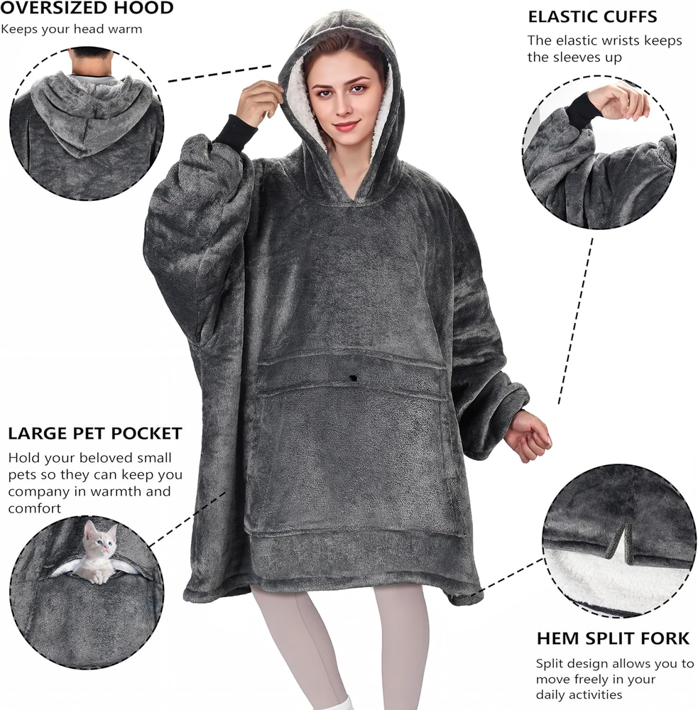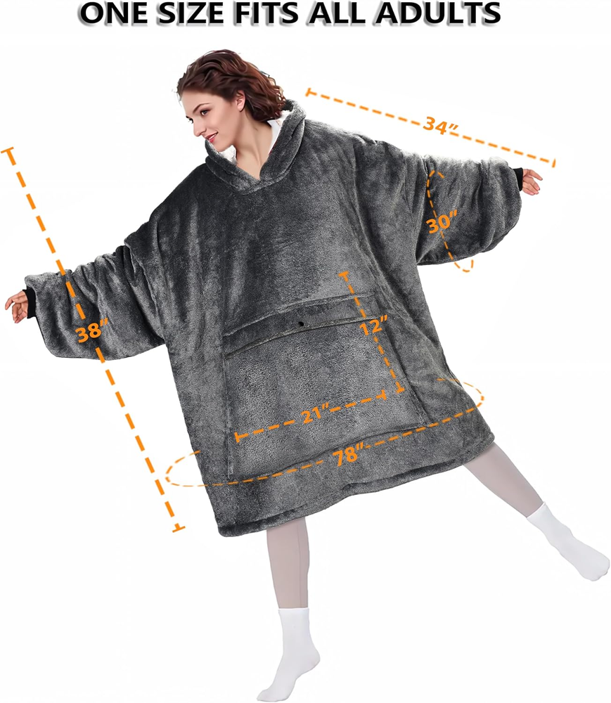 Menu Other Items Feedbacks About Us Contact Us Add To Favorites Oversized Wearable Blanket Hoodie with Large Pocket, Warm Super Soft Cozy Sherpa Sweatshirt Hoodie for Women Men, Best Gift for Your Loves, Black Ash Sherpa Import Designation Warm & comfortable hoodie- This Blanket Sweatshirt is very roomy, you can pull arms and legs into the soft, fluffy Sherpa hoodie while watching TV or reading on bed, sofa. A must have for winter - This Oversized Sweatshirt Blanket with long sleeves covers you completely well and allows you to move and use your hands freely. It's perfect for lounging at home, morning coffee outside and at a sporting event. This cozy sherpa hoodie keeps you warm from head to toe wherever you go. Perfect gift for all - The Comfortable Hoodie is a sweet gift for your family, children, friends and colleagues. Perfect for Valentine's Day gift, Birthday gift, Mother Day's Gift, Thanksgiving gift, Christmas gift, New Year and all Holiday gifts. One size fits everyone - This sherpa blanket sweatshirt of extremely large design is a perfect fit for men, women and children of all shapes and sizes.The specific size is 36”(L) X 34”(W); Sleeve 25”; Pocket 23”(W) x 13”(L); Hoodie 15”(L) x 13”(W). Features & care-free wash - The blanket sweatshirt with a large front pocket, which keep your hands warm & stores phones, snacks, and controllers, It keep everything you need at your fingertips. Machine wash cold, tumble dry separately at low temperature. Product Description Item Specification Item model number oversized hoodie for women Style Hoodie Pattern Solid Blanket Form Comforter Theme Birthday,Christmas,Holiday Department Kids Import Import Designation Unit Count 1.0 Count Batteries required No Product Dimensions 36"L x 34"W Material Microfiber Age Range (Description) Adult Seasons Winter Model Name gift for women Fabric Type Sherpa Item Weight 2.99 pounds Special Feature Reversible Fabric Warmth Description Lightweight Color Black Ash Recommended Uses For Product Travel, Reading, Napping, Camping Sport Walking, Camping Product Care Instructions Machine Wash Size Classic Dimensions Shipping Returns Additional Info Product Dimensions: 34.0 "w x 36.0 "w. Weight: 2.99 lb Fast shipping is very important for us. Our standard shipping service is FREE. Your order will be shipped within 1-3 business days upon full payment received. Most items are delivered within 3-5 business days, however, please allow 3-10 business days. We are shipping only to USA. We only ship to the confirmed Paypal address. We reserve the right to cancel any order for any reason at any time. We are not responsible for undeliverable addresses. We offer a 30 day return policy from checkout winning date. Your satisfaction is guaranteed! If for any reason you are unhappy with your item, just return it within 30 days for a full refund, minus shipping cost. Please contact us prior to initiating a return so that we can issue you a refund authorization. Items defective upon receipt must be packaged in their retail packaging as if new and returned with a detailed description of the problem. Return shipping fees are not refundable. We reserve the right to decline any returns if the above guidelines are not followed. All of our items, unless otherwise stated, will only run on 120 volts. Please check to make sure your country complies with these specifications. If you have a problem or question regarding your transaction please contact us before leaving any type of feedback. We will work with you to resolve any problem you may have.