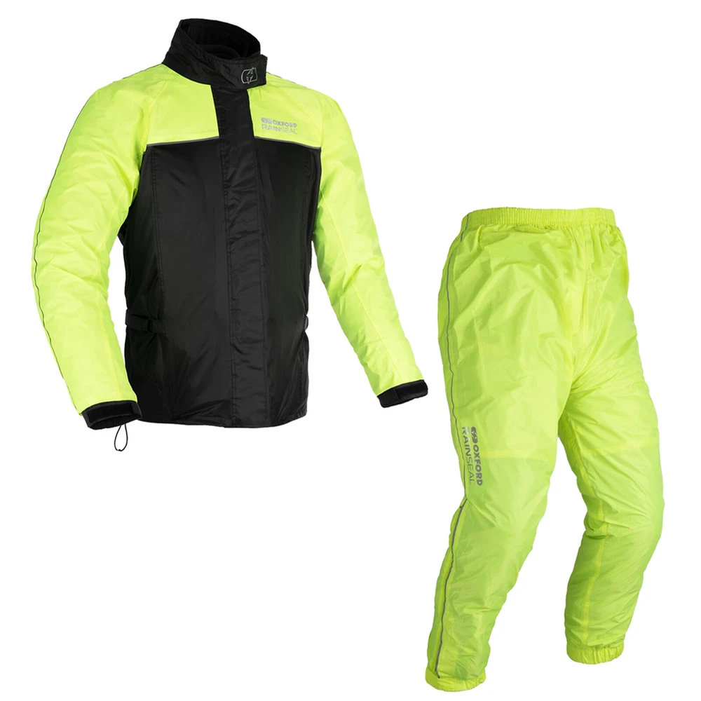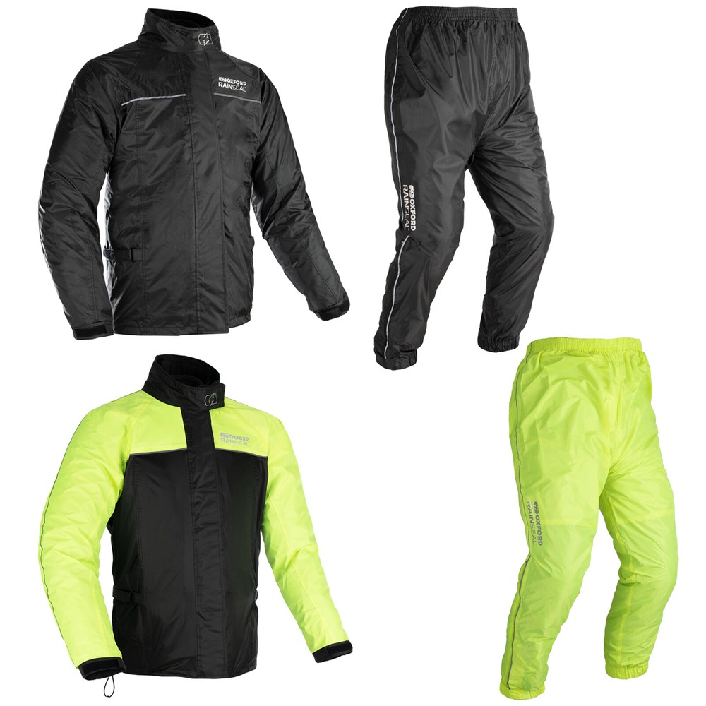 Buying from ukmotorbikes ensures a quick delivery and the cheapest prices, we use leading couriers like DPD, royal mail and UPS. We pride ourselves in providing great customer satisfaction and we'll ensure all orders are sent on time. We may not be able to use our premium next day service in some areas. These include Channel Islands, isle of wight, isle of man, northern island and Scottish highlands. If your postcode falls into one of these areas we may call you to pay extra for postage. Please email to confirm prior to ordering. ***WE WILL NOT BE BEATEN ON PRICE*** Oxford Rainseal All Weather Motorcycle Bike Over Jacket & Trouser Waterproof New Product Details For riders who want to stay warm and dry in inclement weather, the Oxford Rainseal motorcycle over jacket is the ideal choice. Simple weather protection that is beautifully made and meticulously designed. The Fully Waterproof Over Jacket has a full lining, numerous adjusters, and 360° reflective detailing, among other features. Because they are lightweight by nature, you can keep yourself and your clothes dry while wearing the provided protection. With the Rainseal line's intelligent sizing, you can order items in your typical size. If you want to wear them over leathers with a race hump, only size up. Climate Control • Durable waterproof shell • Front storm placket with zipper fastening Fabric & Construction • Fully taped seams • Fully mesh lined • Soft collar lining • Folds into waistpack • 360° reflective detailing • Available in Black and Black/Fluo Adjustability & Fit • Intelligently sized to fit over riding gear • Hook and loop collar, waist and upper arm adjustment • Drawcord hem adjustment Oxford Rainseal Motorcycle Bike All Weather Over Trousers Description:- For riders who want to stay warm and dry in inclement weather, the Oxford Rainseal motorcycle overtrousers are the ideal choice. Simple weather protection that is beautifully made and meticulously designed. A half lining, numerous adjusters, and 360-degree reflective detailing are just a few of the features that the fully waterproof overpants offer. Because they are lightweight by nature, you can keep yourself and your clothes dry while wearing the provided protection. With the Rainseal line's intelligent sizing, you can order items in your typical size. If you want to wear them over leathers with a race hump, only size up. Climate Control • Durable waterproof shell Fabric & Construction • Fully taped seams • Half mesh lined • Folds into waistpack • 360° reflective detailing • Available in Black and Fluo Adjustability & Fit • Intelligently sized to fit over riding gear • Elasticated waist and hems • Long zippered ankle opening.