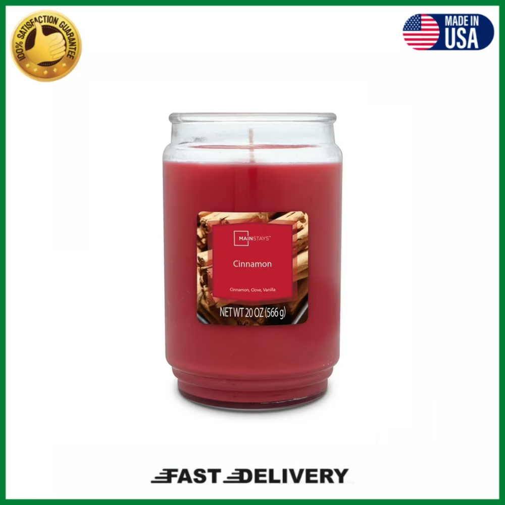 ( PACK OF 1 ) Cinnamon Scented Single-Wick Large Glass Jar Candle, 20 oz, Red Introduce a soothing aroma into your living space with the Mainstays Cinnamon Scented Single-Wick Jar Candle. Mainstays scented candles are highly fragranced and provide a clean and even burn that will fill your home with beautiful and enticing seasonal aromas. Place this candle in the kitchen, living room or dining room where you can enjoy it when entertaining guests or anytime you want to relax. Trim the wick periodically to promote even burning. Mainstays offers a wide selection of candle scents to explore and enjoy. Shop all of our Mainstays scents online and in-store. Treat yourself to the enticing scent of the Mainstays Cinnamon Scented Single-Wick Jar Candle. Mainstays Cinnamon Scented Single-Wick Large Glass Jar Candle, 20 oz Warm and spicy cinnamon infused with subtle nuances of clove and pure vanilla. Complements virtually any room decor 20 oz. single-wick candle burns for approximately 100-120 hours Features a decorative beveled edge glass vessel Mainstays single-wick scented candles are highly fragranced, and provide a clean and even burn that will fill your home with beautiful and enticing aromas Our candles are made from high quality, non-toxic, clean-burning wax that is specifically developed to hold optimal fragrance loads Our Mainsays 20oz candle is available in a variety of scents Shipping We offer FREE shipping on all orders! We ship within Three business days of payment, usually sooner. We use a selection of shipping services such as UPS, FedEx, USPS etc. We only ship to the lower 48 states, no APO/FPO addresses or PO Boxes allowed. Local pickups and combined shipping options are not provided at this time. Return You can return a product for up to 30 days from the date you purchased it. Any product you return must be in the same condition you received it and in the original packaging. Please keep the receipt. Payment We accept payment by any of the following methods: PayPal Please pay as soon as possible after winning an auction, as that will allow us to post your item to you sooner! Feedback Customer satisfaction is very important to us. If you have any problem with your order, please contact us and we will do our best to make you satisfied. Contact Us If you have any queries, please contact us via ebay. We usually respond within 24 hours on weekdays. Please visit our eBay store to check out other items for sale! Thank you for shopping at our store.